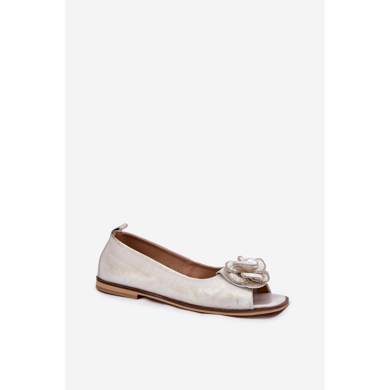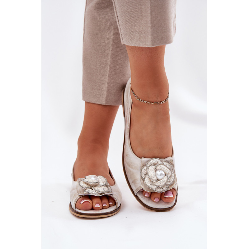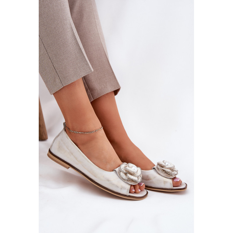 Moteriški balerinos iš natūralios odos yra elegantiška pasirinkimo galimybė įvairioms progoms. Modelis išsiskiria dekoratyviniu žiedu su perla, kuris suteikia joms išskirtinio žavesio. Atviri pirštai suteikia lengvumo, o minkšta padas užtikrina komfortą visą dieną. Šios balerinos puikiai derinamos tiek su elegantiškais, tiek su kasdieniais stilius, todėl tai puikus pasirinkimas vasaros dienoms. Renkantis dydį, vadovaukitės dydžių lentele.
