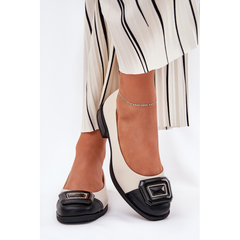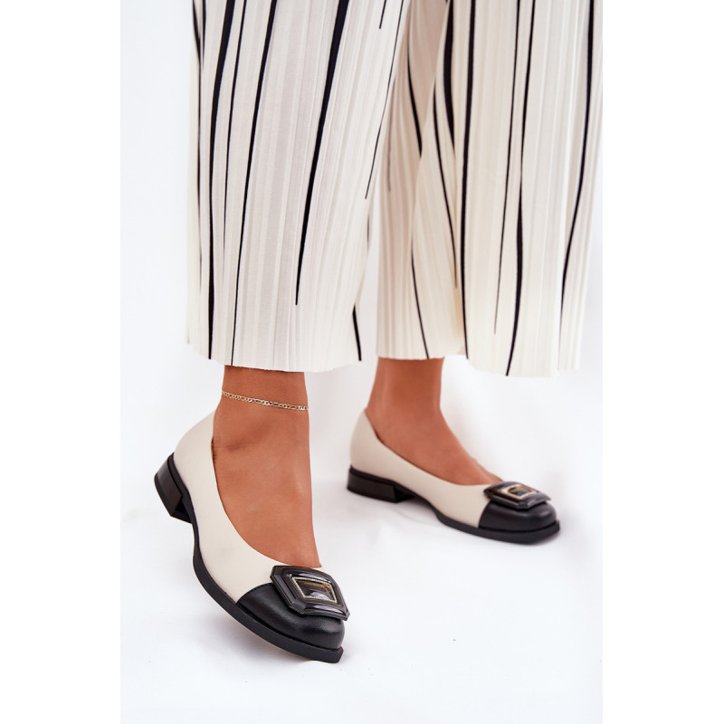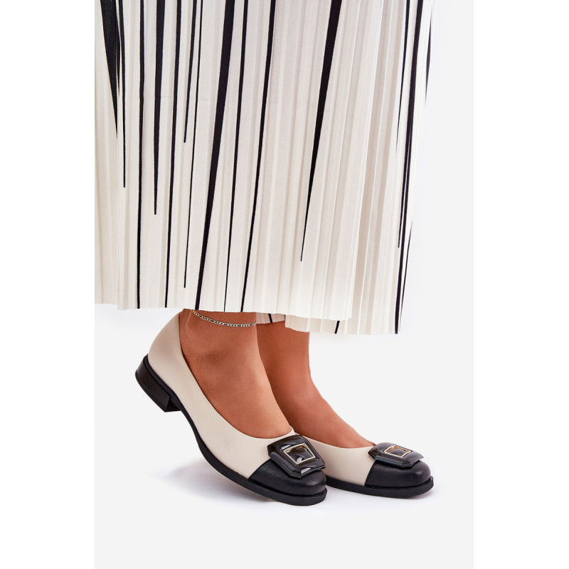 Elegantiškos moteriškos balerinos, pagamintos iš natūralios odos. Priekyje yra puošmena, kuri suteikia batams unikalų charakterį. Įrengtos ant plokščio kulno, jos užtikrina komfortą visą dieną, o apvalūs pirštai garantuoja komfortą. Oda įdėklas rūpinasi tinkamu amortizavimu ir komfortu nešiojant. Šios balerinos bus puikus pasirinkimas tiek elegantiškoms, tiek kasdienėms stiliams, derinant paprastumą su elegancija. Renkantis dydį, vadovaukitės dydžių lentele.