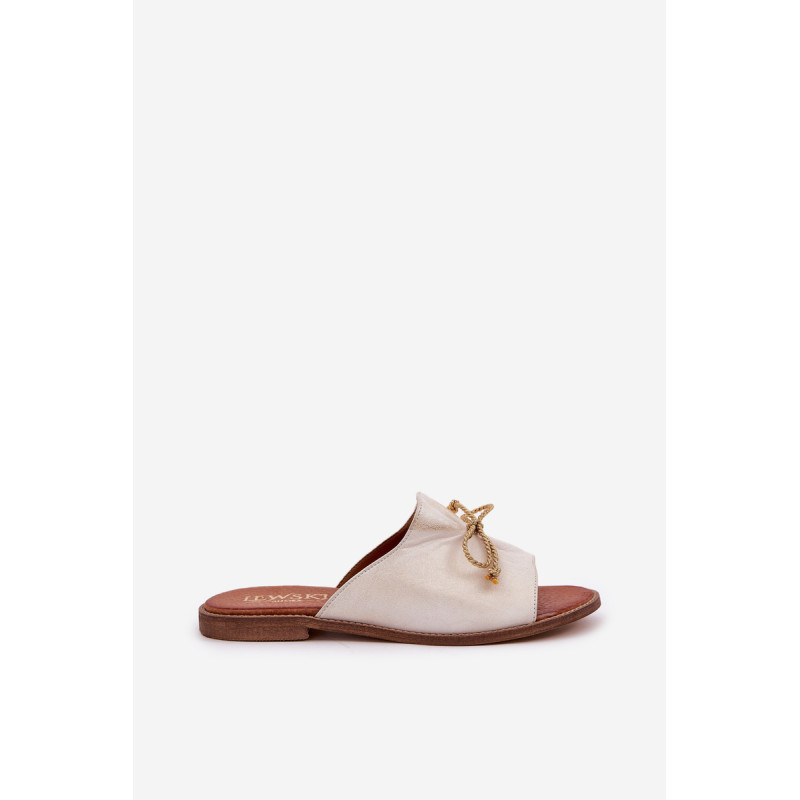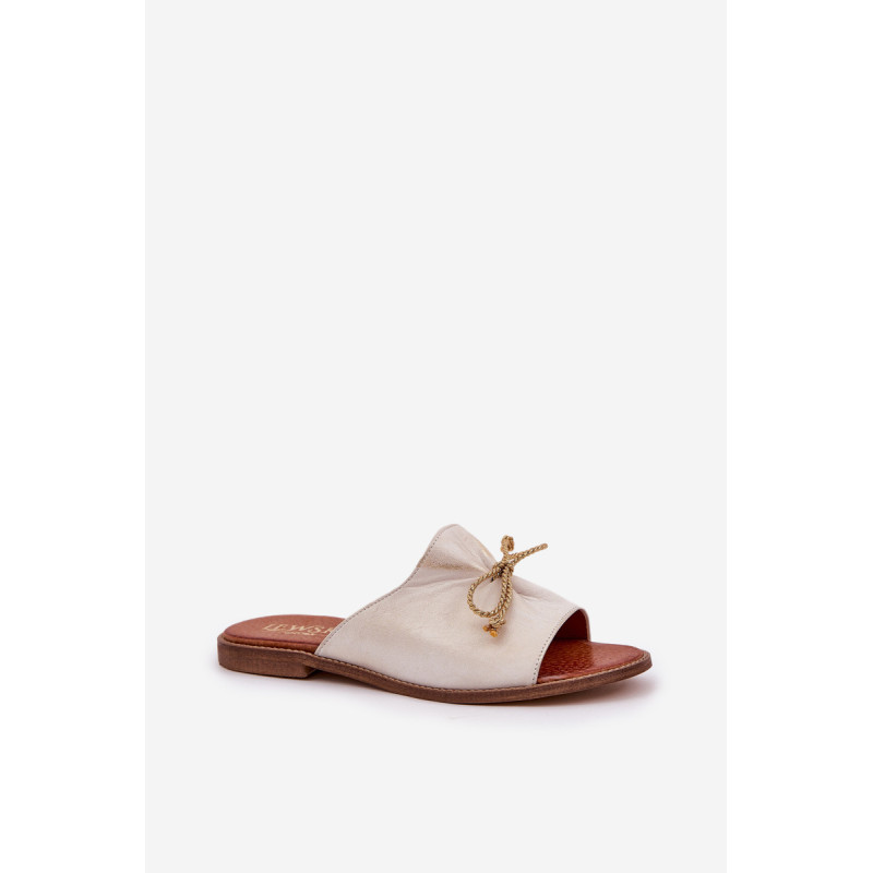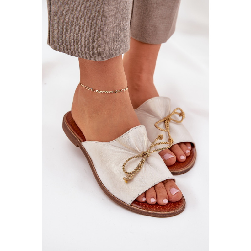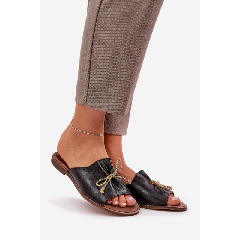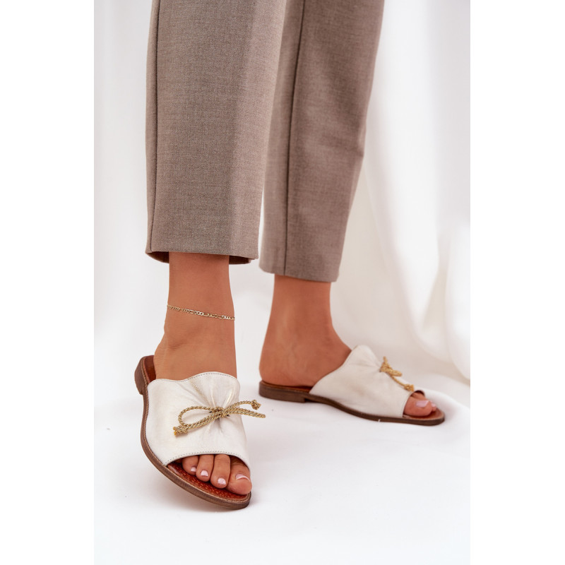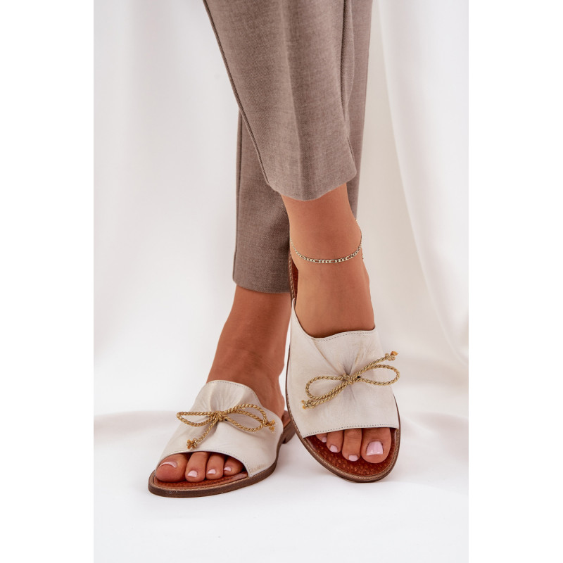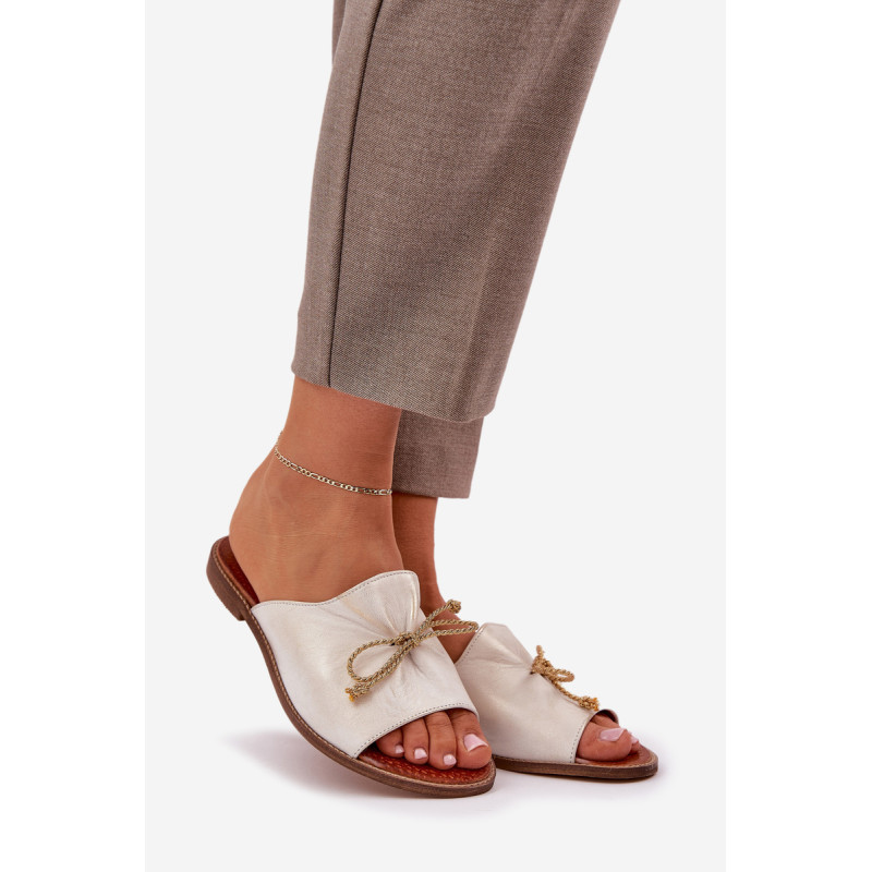 Elegantiški šlepetės iš natūralios odos yra subtilus pasiūlymas, kuris sujungia komfortą su elegancija. Įrengtos ant plokščio kulno, jos užtikrina komfortą visą dieną. Švelnus raukšlėjimas ant viršaus ir miela kaspinas suteikia joms moteriško žavesio. Šios šlepetės bus puikus pasirinkimas vasaros dienoms, puikiai derantys su lengvomis suknelėmis ar kasdieniais stiliais. Renkantis dydį, vadovaukitės dydžių lentele.
