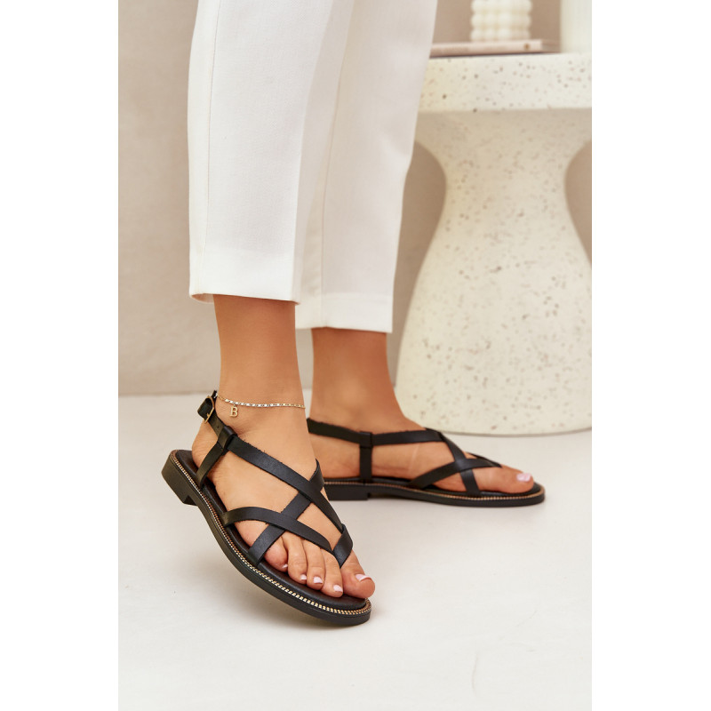 Plokščios sandalai, pagaminti iš natūralios odos, yra elegantiškas pasirinkimas šiltoms dienoms. Jie užsidaro reguliuojama juostele su sagtimi, leidžiančia idealiai pritaikyti prie pėdos. Susipynusios juostos suteikia jiems subtilų, bet kartu ir modernų išvaizdą. Šie sandalai sujungia komfortą su madingu dizainu, puikiai tinkantys tiek kasdieniam dėvėjimui, tiek elegantiškesnėms stilizacijoms. Renkantis dydį, vadovaukitės dydžių lentele.