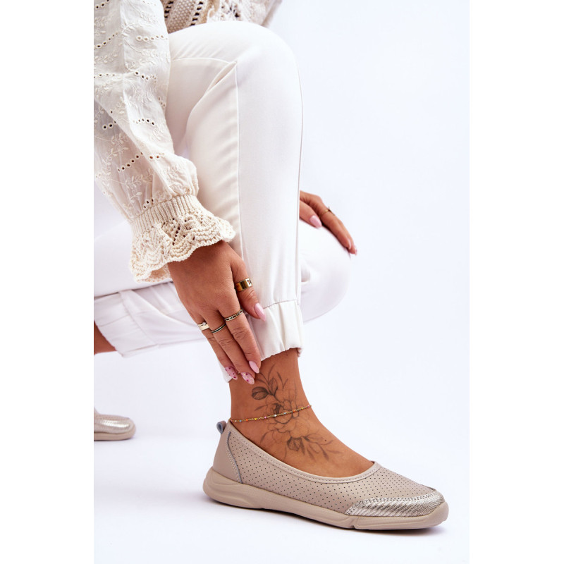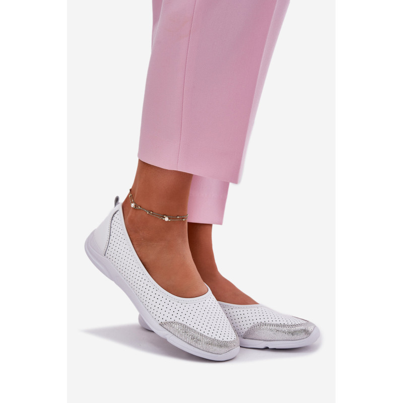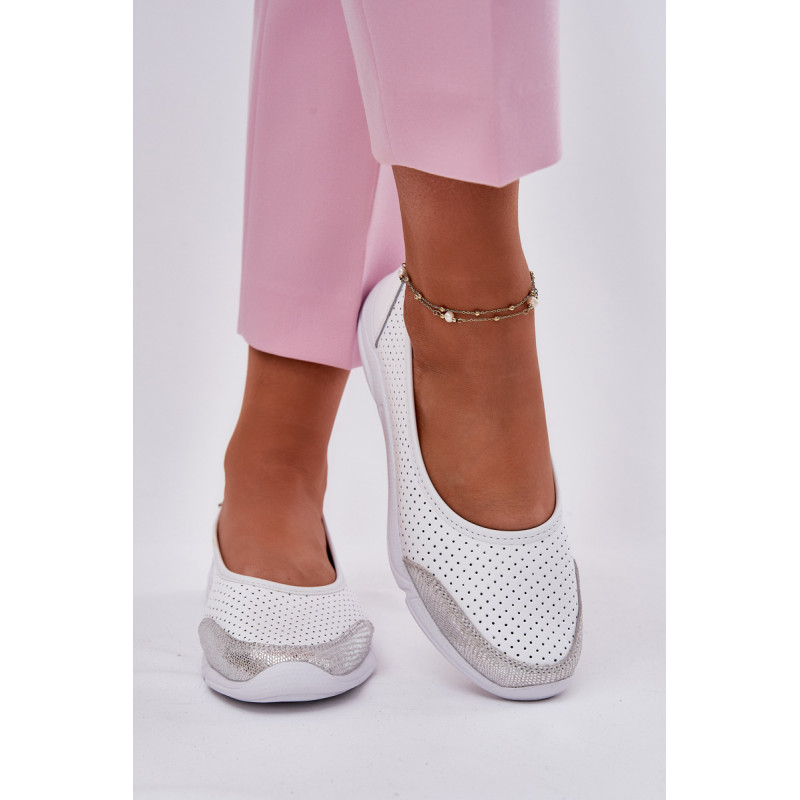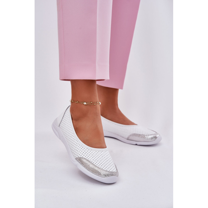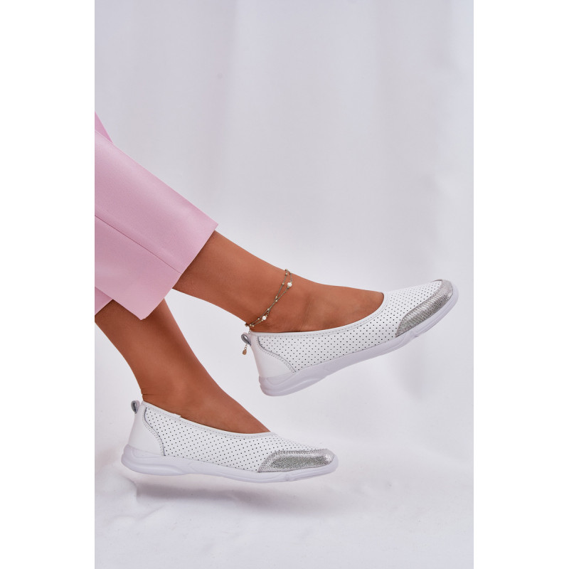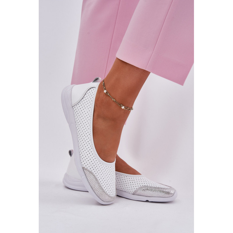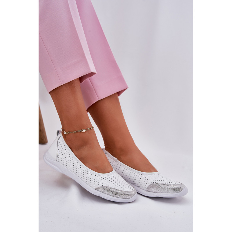 Madingos moteriškos balerinos puikiai tiks įvairioms progoms. Pagaminta iš natūralios odos su ažūriniu raštu. Jie turi minkštą, odinį vidpadį, kuris užtikrins komfortą naudojimo metu. Itin lengvas modelis. Tokio stiliaus batai turėtų būti kiekvienoje spintoje! Žemas kulnas užtikrins stabilumą bet kokioje situacijoje. Rinkdamiesi dydį žiūrėkite dydžių lentelę.
