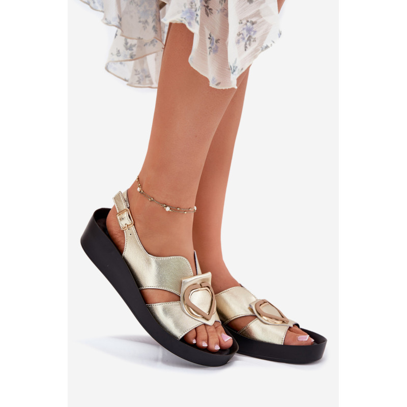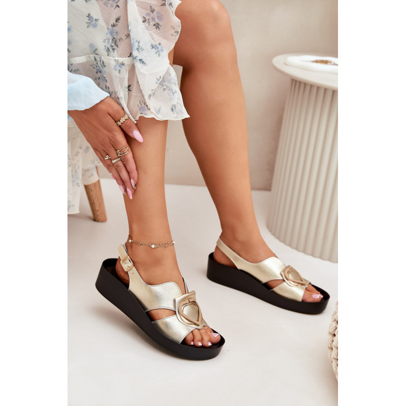 Moteriški sandalai iš S.Barski prekės ženklo. Pagaminti iš natūralios odos. Įrengti ant subtilaus platformos, jie užtikrina komfortą ir stabilumą visą dieną. Priekyje yra dekoracija, kuri suteikia jiems unikalų charakterį. Minkšta pado medžiaga padidina dėvėjimo komfortą, o sagtis su reguliuojama juosta leidžia tobulai pritaikyti prie pėdos. Puikiai tinka tiek kasdieniniams, tiek formalesniems išėjimams, jie yra elegantiškas aksesuaras daugeliui stilių. Renkantis dydį, vadovaukitės dydžių lentele.