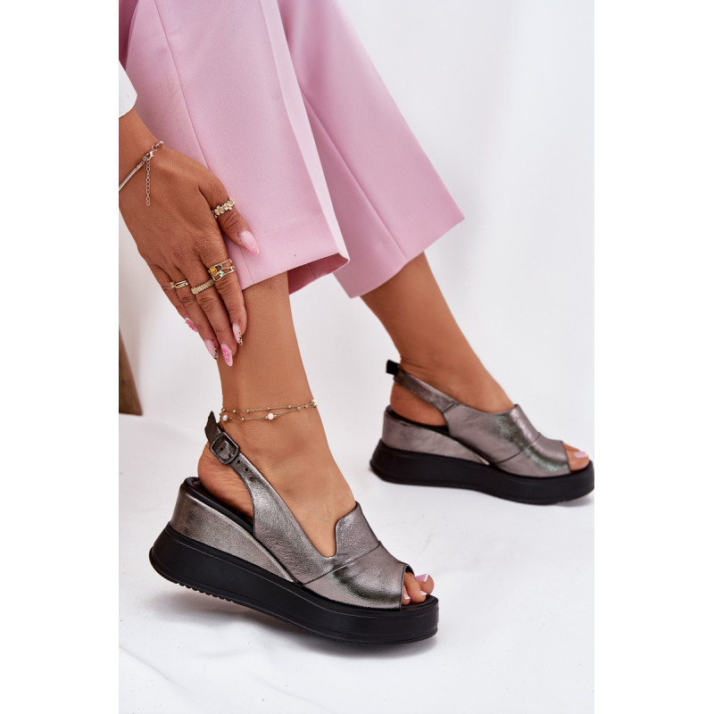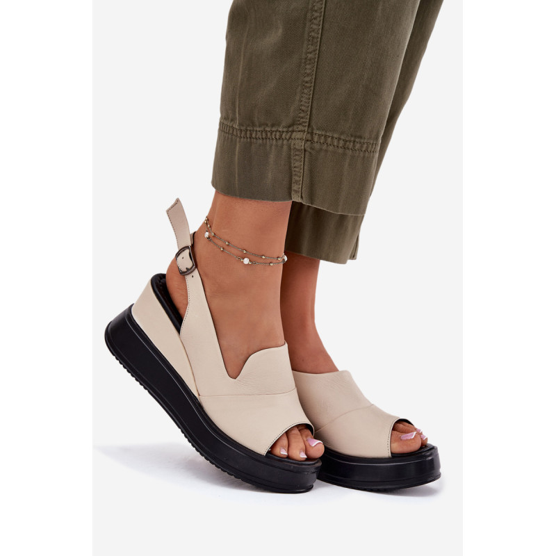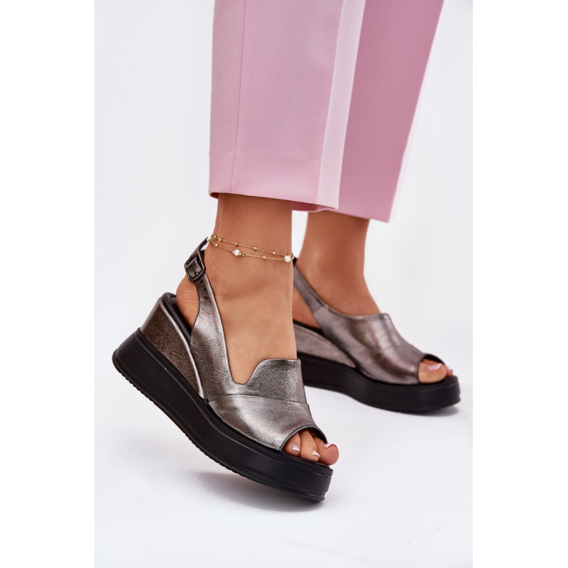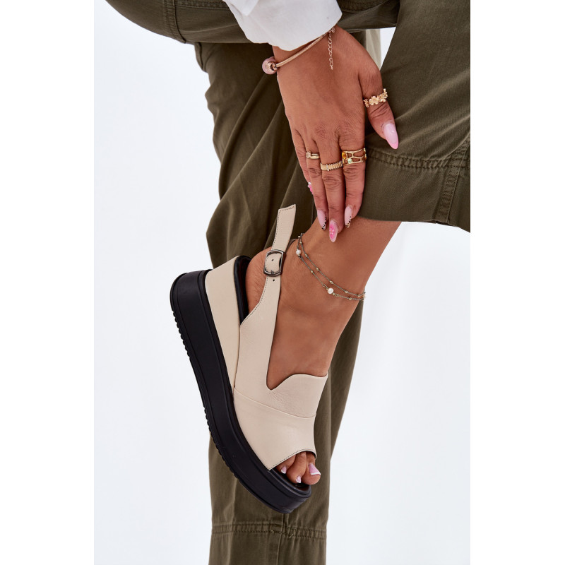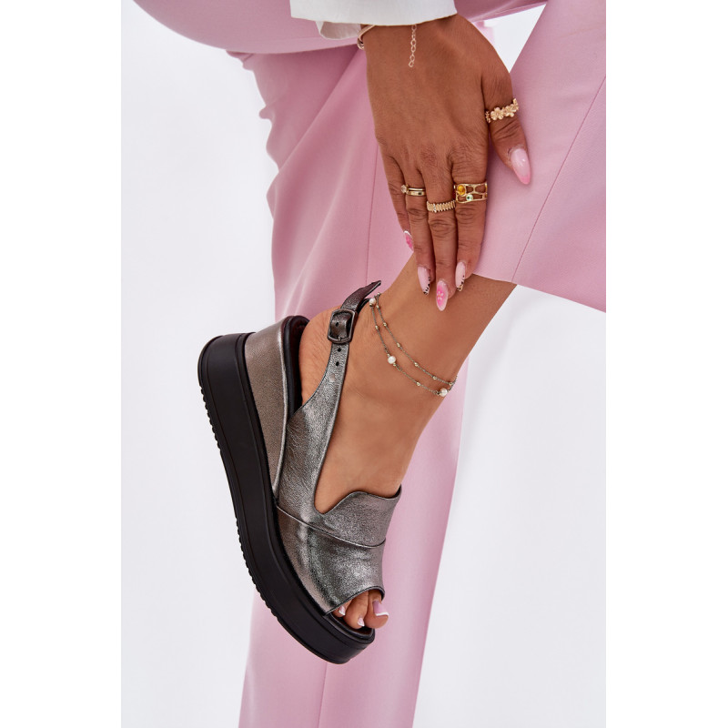 Moteriški natūralios odos sandalai yra elegantiškas pasirinkimas šiltesniems dienoms. Šis modelis yra ant platformos su pakulne, kuri užtikrina stabilumą ir komfortą vaikštant, tuo pačiu pridėdama stiliaus. Bateliai užsegami sagtimi su reguliuojama juostele, leidžiančia idealiai pritaikyti prie pėdos. Tai puikus pasirinkimas tiems, kurie ieško madingo įvaizdžio ir patogumo kasdien. Renkantis dydį, vadovaukitės dydžių lentele.