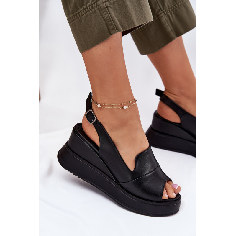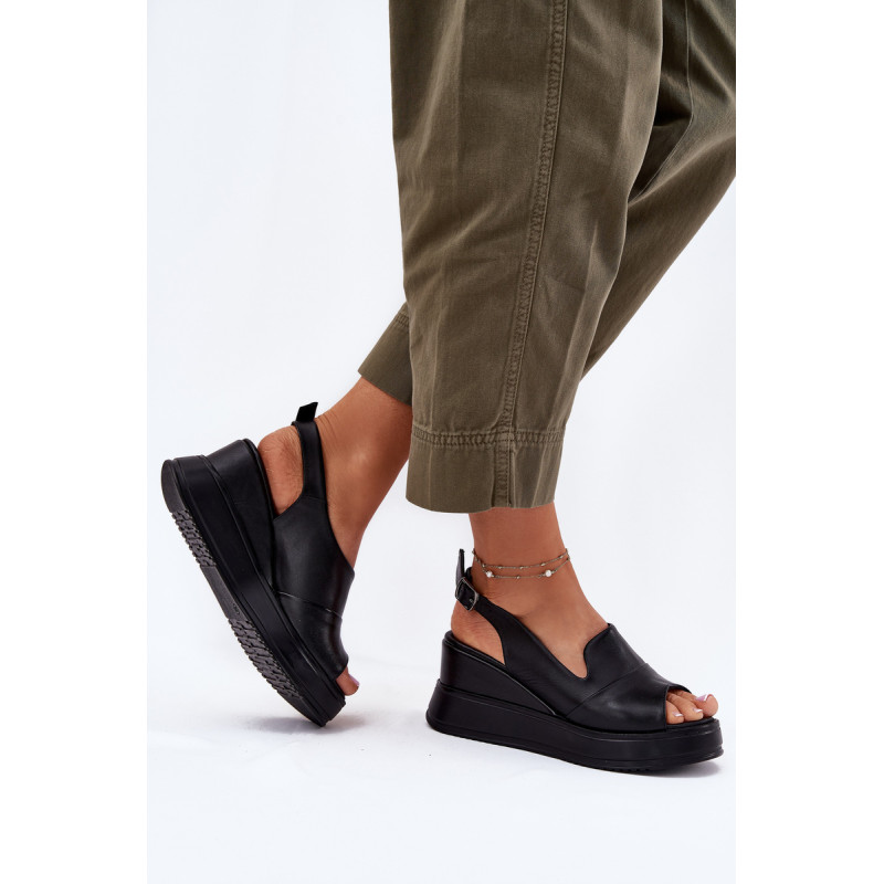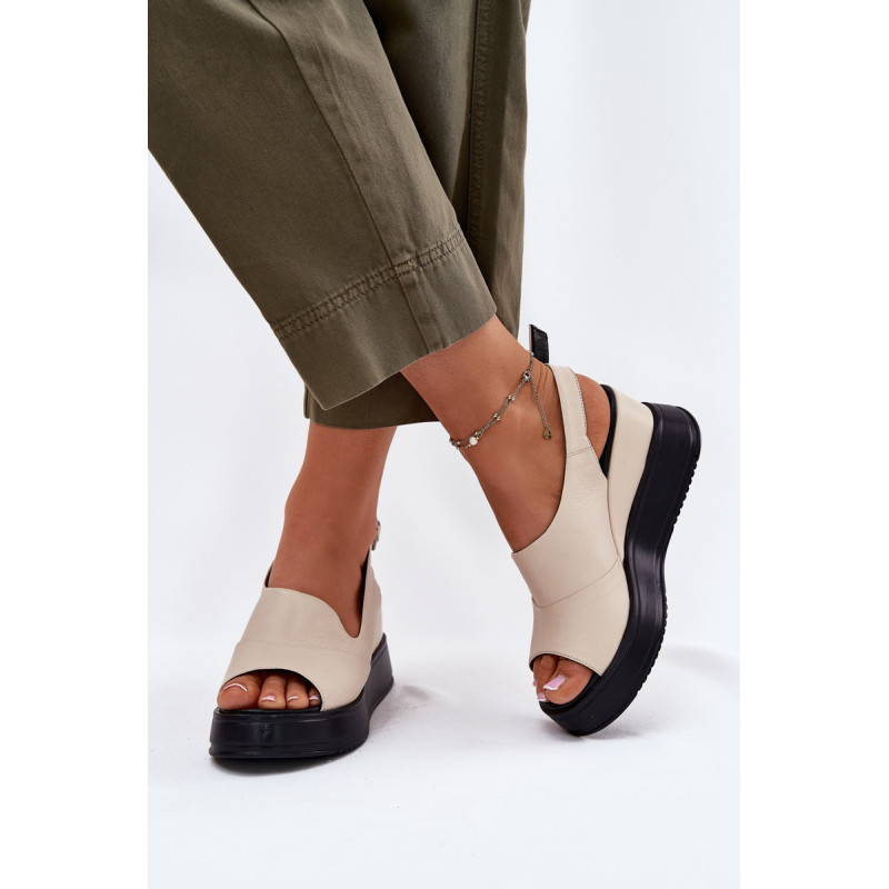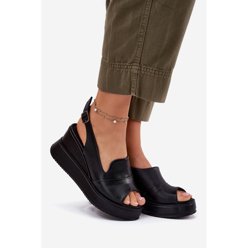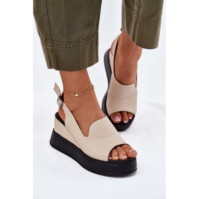 Moteriški natūralios odos sandalai yra elegantiškas pasirinkimas šiltesniems dienoms. Šis modelis yra ant platformos su pakulne, kuri užtikrina stabilumą ir komfortą vaikštant, tuo pačiu pridėdama stiliaus. Bateliai užsegami sagtimi su reguliuojama juostele, leidžiančia idealiai pritaikyti prie pėdos. Tai puikus pasirinkimas tiems, kurie ieško madingo įvaizdžio ir patogumo kasdien. Renkantis dydį, vadovaukitės dydžių lentele.
