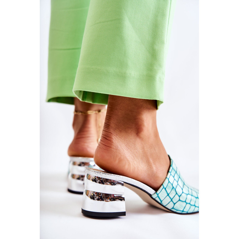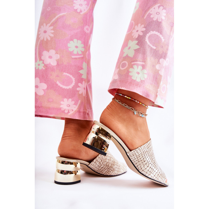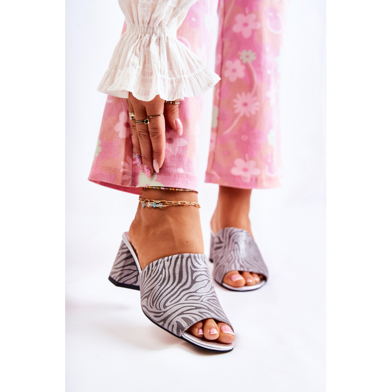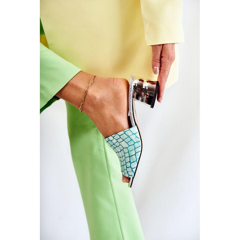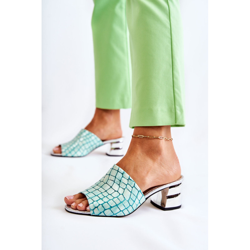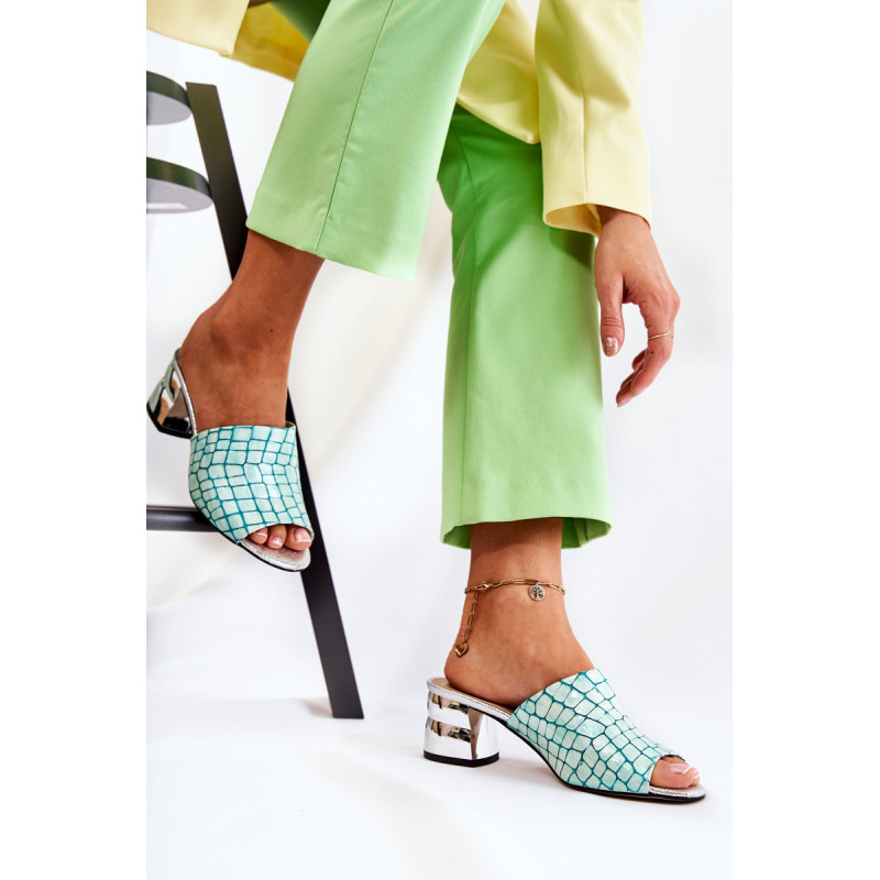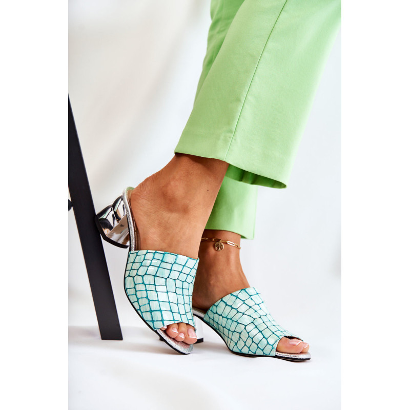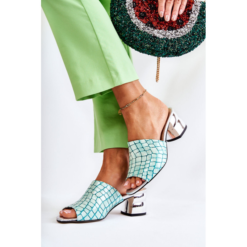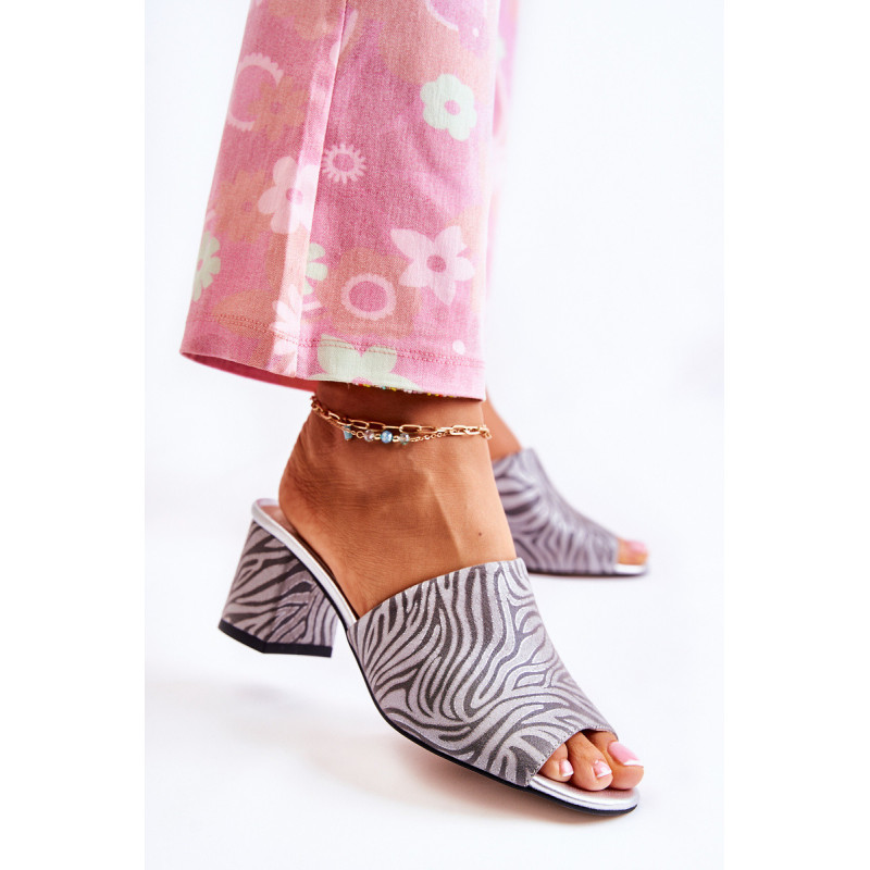 Madingos ir patogios moteriškos šlepetės tvirtinamos ant kulnų blokelio pavidalu. Viršutinė dalis pagaminta iš natūralios, zomšos odos. Nosis atvira, suapvalinta. Minkštas vidpadis pagamintas iš natūralios odos. Klasikinis, užsegamas modelis. Jie puikiai tinka daugeliui stilių. Dėl odinio pamušalo puikiai priglunda prie kojų pločio. Nudžiuginkite save įsigiję naują batų porą! Renkantis dydį, naudokite dydžių lentelę.