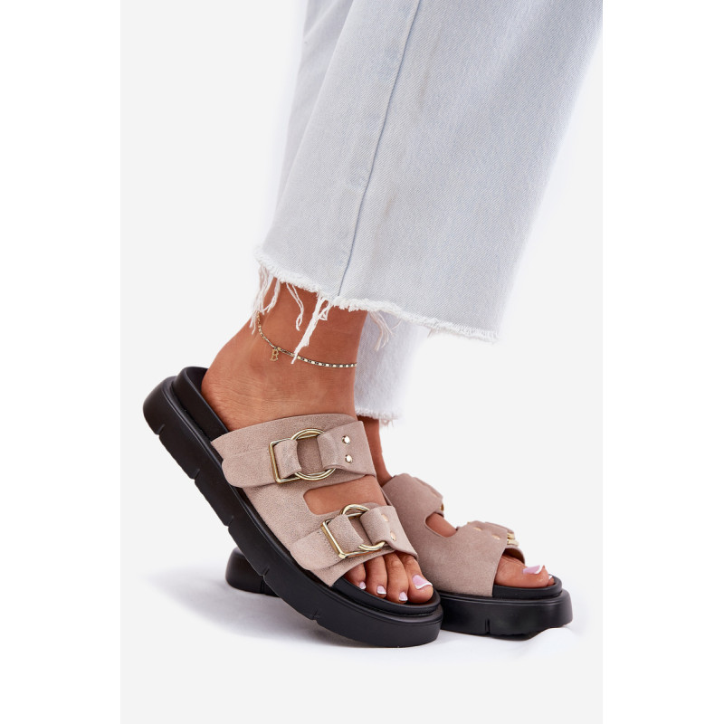 Moteriški Big Star sandalai, pagaminti iš aukštos kokybės natūralios odos, yra puikus pasirinkimas šiltoms dienoms. Ant platformos, jie užtikrina komfortą ir stabilumą visą dieną. Šis modelis išsiskiria dviem diržais, papuoštais sagtimis, suteikiančiais jiems modernų charakterį. Stilingi ir elegantiški, šie sandalai bus puikus vasaros stilių papildymas, sujungiantys komfortą su madingu įvaizdžiu. Renkantis dydį, vadovaukitės dydžių lentele.