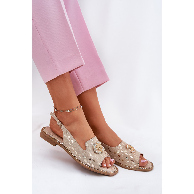 Moteriški sandalai, pagaminti iš natūralios zomšos odos, yra elegantiška pasirinkimo galimybė vasaros dienoms. Įrengti ant plokščio kulno, jie siūlo komfortą ir lengvumą visą dieną. Užsegimas su sagtimi leidžia puikiai pritaikyti prie pėdos. Priekinė dalis papuošta subtiliu akcentu, kuris suteikia jiems unikalų charakterį. Oda įdėklas užtikrina papildomą komfortą, todėl šie sandalai yra ideali elegantiškų vasaros stilių pasirinkimas. Renkantis dydį, vadovaukitės dydžių lentele.