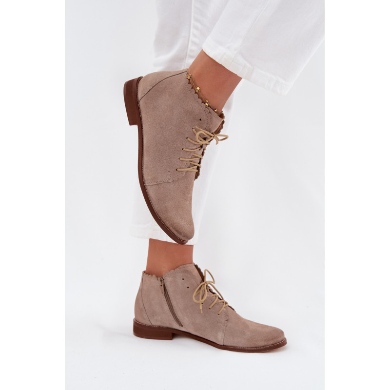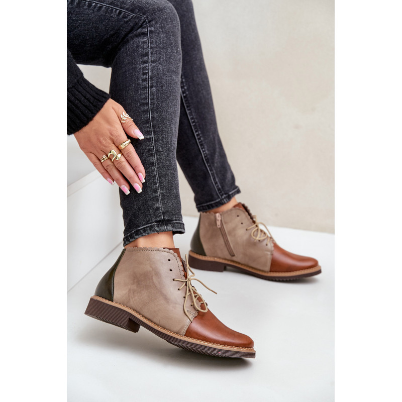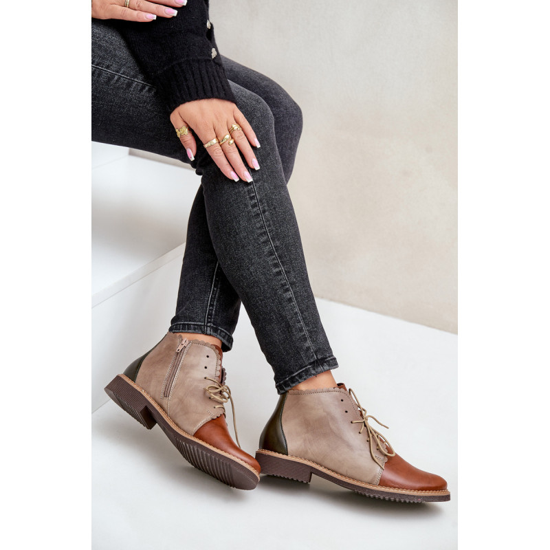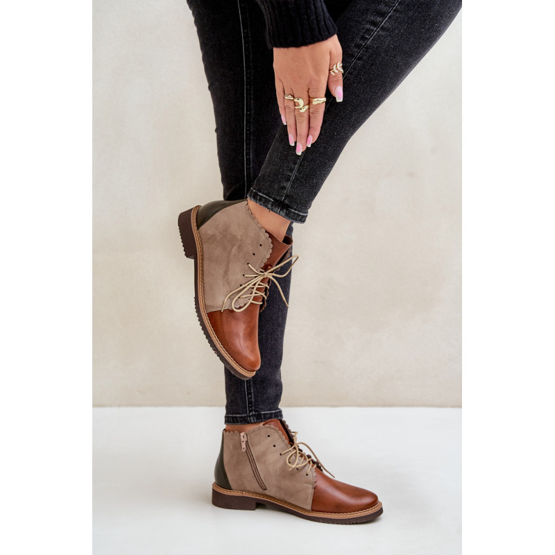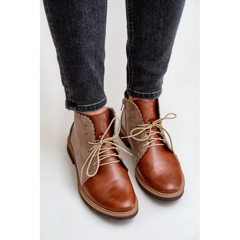 Odiniai auliniai batai su plokščiu kulnu yra stiliaus ir patogumo derinys vėsesnėms dienoms. Modelis yra tiek raišteliais, tiek užtrauktuku, todėl lengviau pritaikyti ir užsidėti. Apvalūs pirštai suteikia jiems klasikinį vaizdą. Puikiai tinka kasdieniam dėvėjimui, jie puikiai atrodys rudens ir žiemos deriniuose, užtikrindami šilumą ir stilingą išvaizdą. Renkantis dydį, vadovaukitės dydžių lentele.