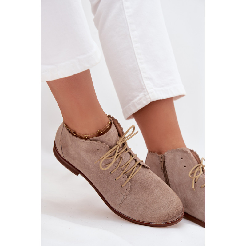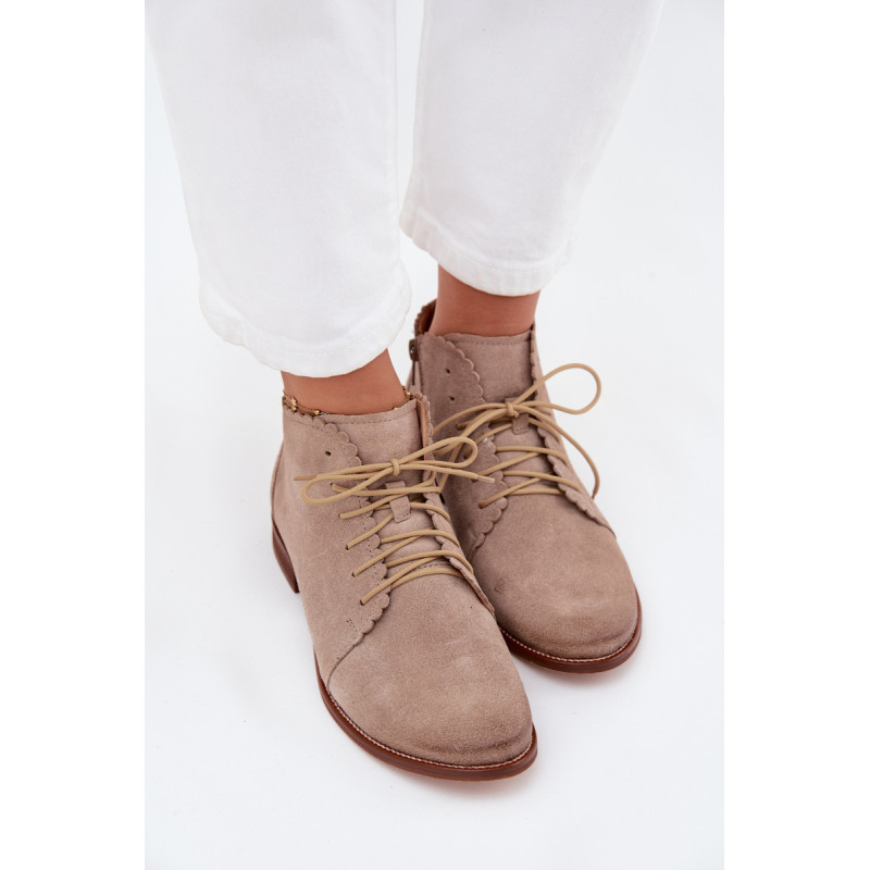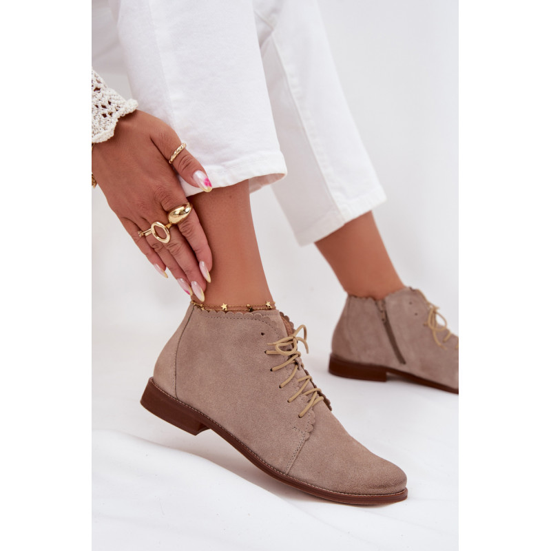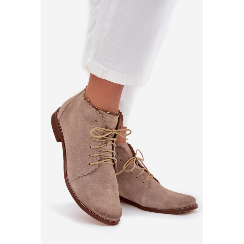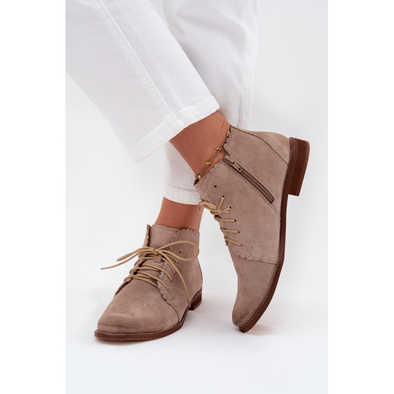 Odiniai auliniai batai su plokščiu kulnu yra stiliaus ir patogumo derinys vėsesnėms dienoms. Modelis yra tiek raišteliais, tiek užtrauktuku, todėl lengviau pritaikyti ir užsidėti. Apvalūs pirštai suteikia jiems klasikinį vaizdą. Puikiai tinka kasdieniam dėvėjimui, jie puikiai atrodys rudens ir žiemos deriniuose, užtikrindami šilumą ir stilingą išvaizdą. Renkantis dydį, vadovaukitės dydžių lentele.