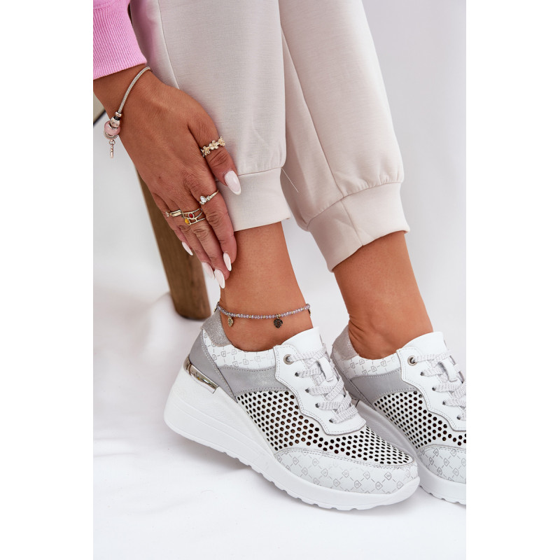Suvarstomi moteriški sportbačiai iš natūralios odos. Nustatykite ant pleišto kulno. Suapvalinti kojų pirštai. Patogus vidpadis užtikrins komfortą kiekviename žingsnyje. Lengvas modelis, kurį galite derinti su daugeliu kasdienių stilių! Rinkdamiesi dydį, žiūrėkite dydžių lentelę.