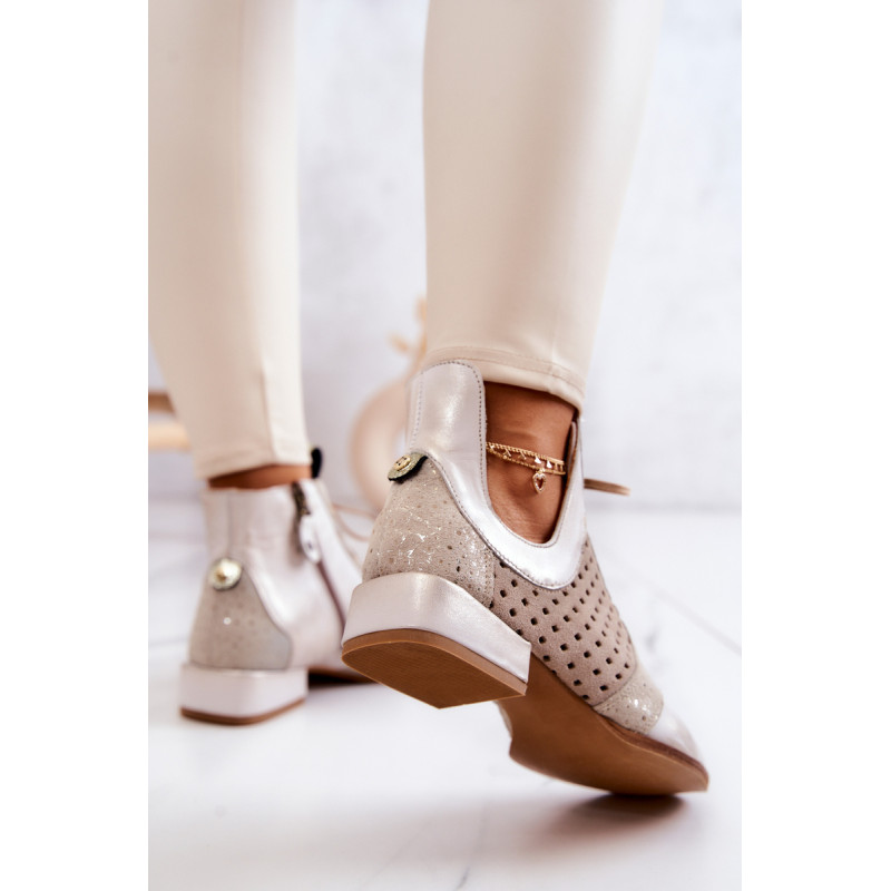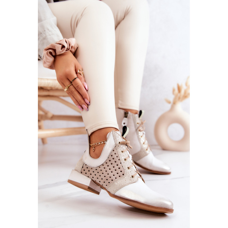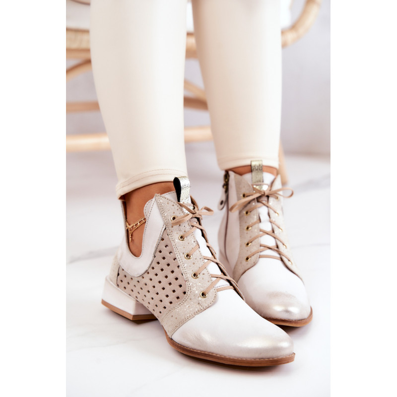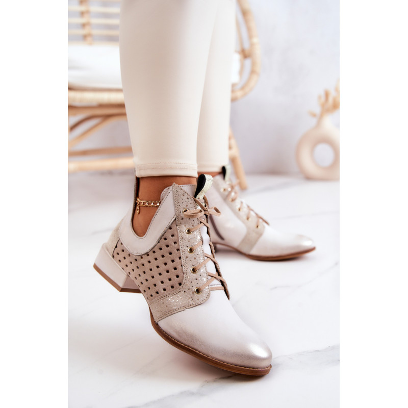 Pateiktos Maciejka aulinukai pagaminti iš natūralios odos. Žemas, stabilios kulniukai daro batus labai patogius. Auliniai batai turi raištelius, leidžiančius juos tinkamai pritaikyti prie kojos pločio. Ant šoninės dalies yra užtrauktukas. Minkšta, lengvai perforuota vidpadis užtikrina komfortą dėvėjimo metu. Iškirptė ant kulkšnies atrodo nepaprastai efektingai. Renkantis dydį, vadovaukitės dydžių lentele.