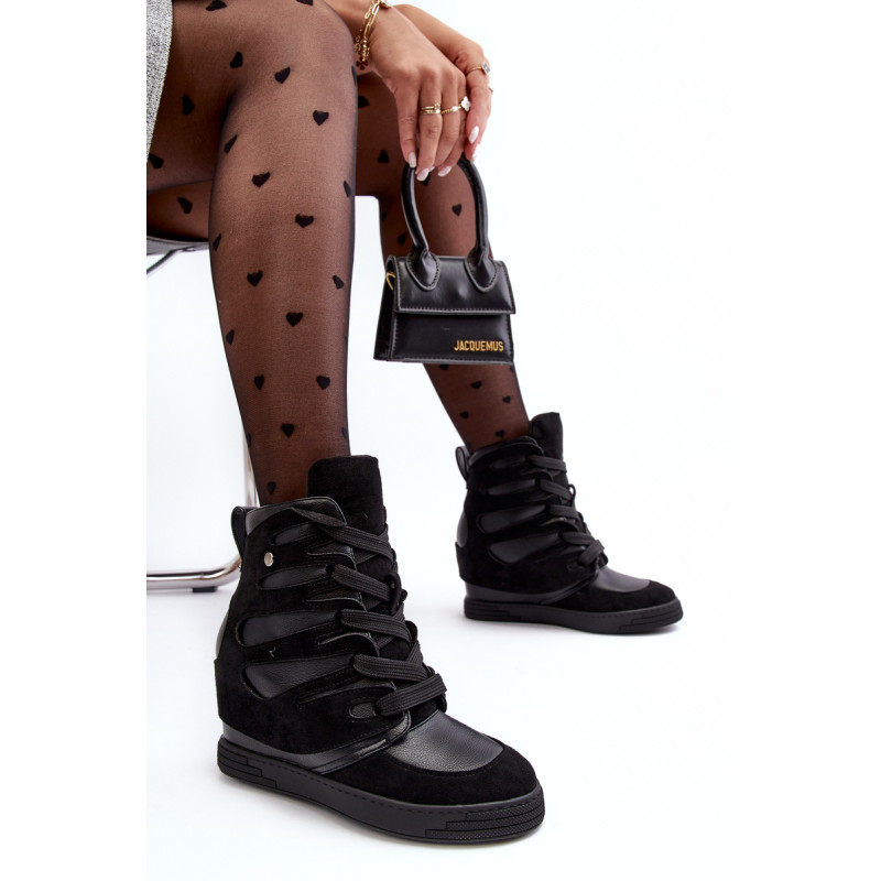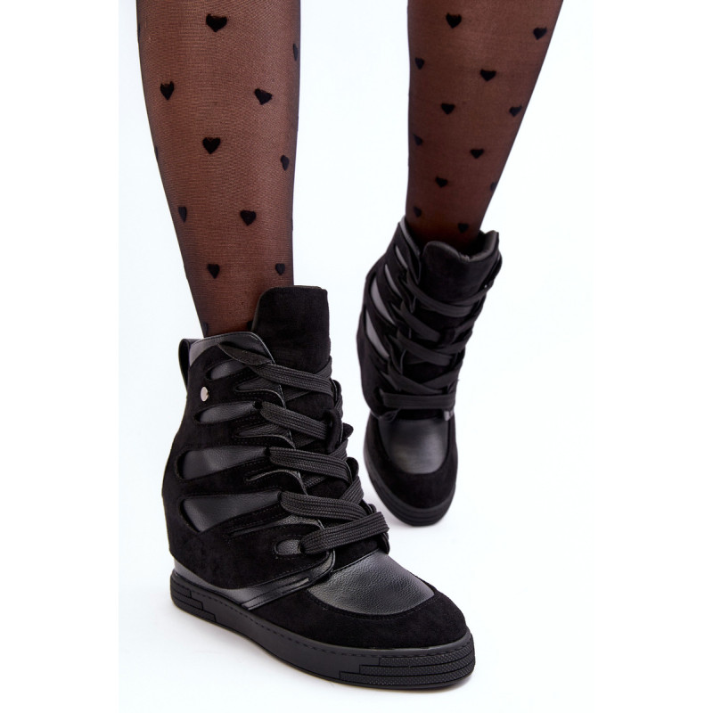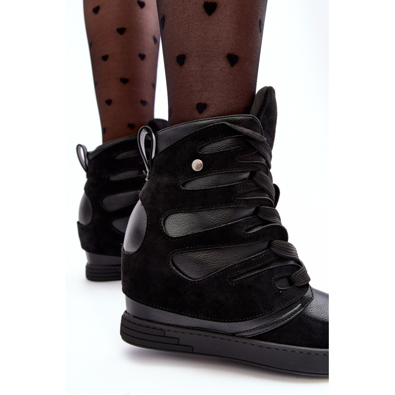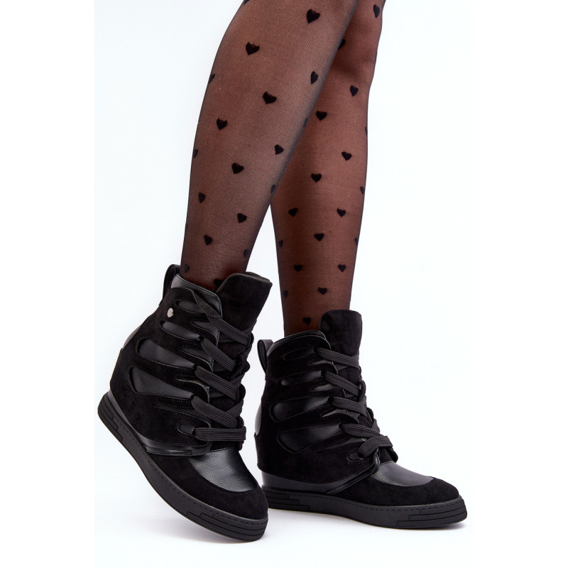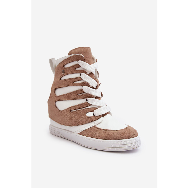 Sportinio stiliaus kulkšnies batai, pagaminti iš ekologiškos odos ir ekologiškos zomšos derinio. Nustatykite ant pleišto. Klasikinis nėrinių modelis. Apvalūs kojų pirštai. Be pamušalo. Renkantis dydį, vadovaukitės dydžių lentele.