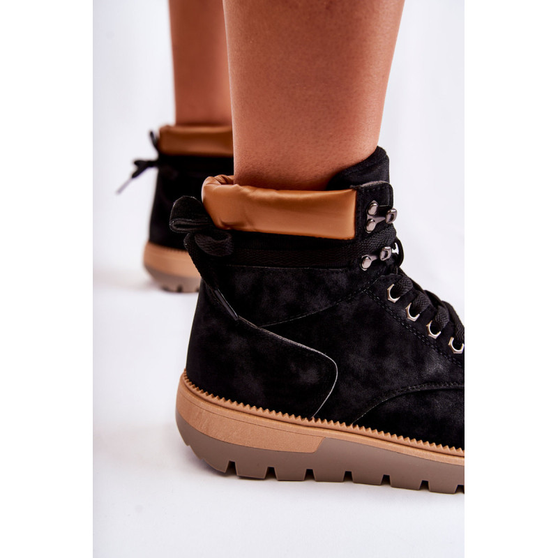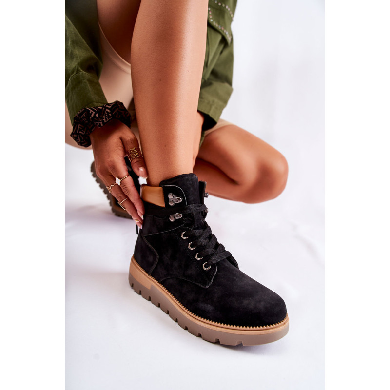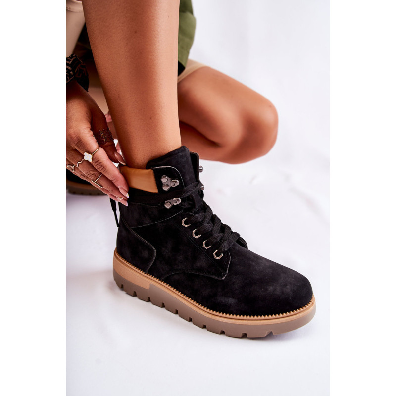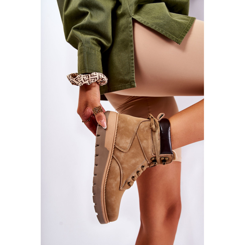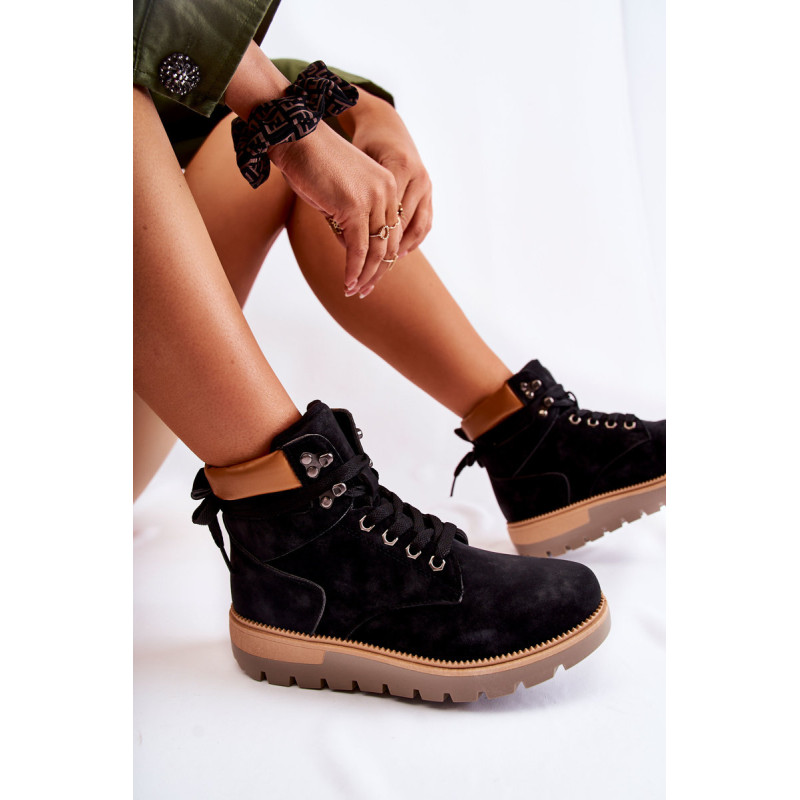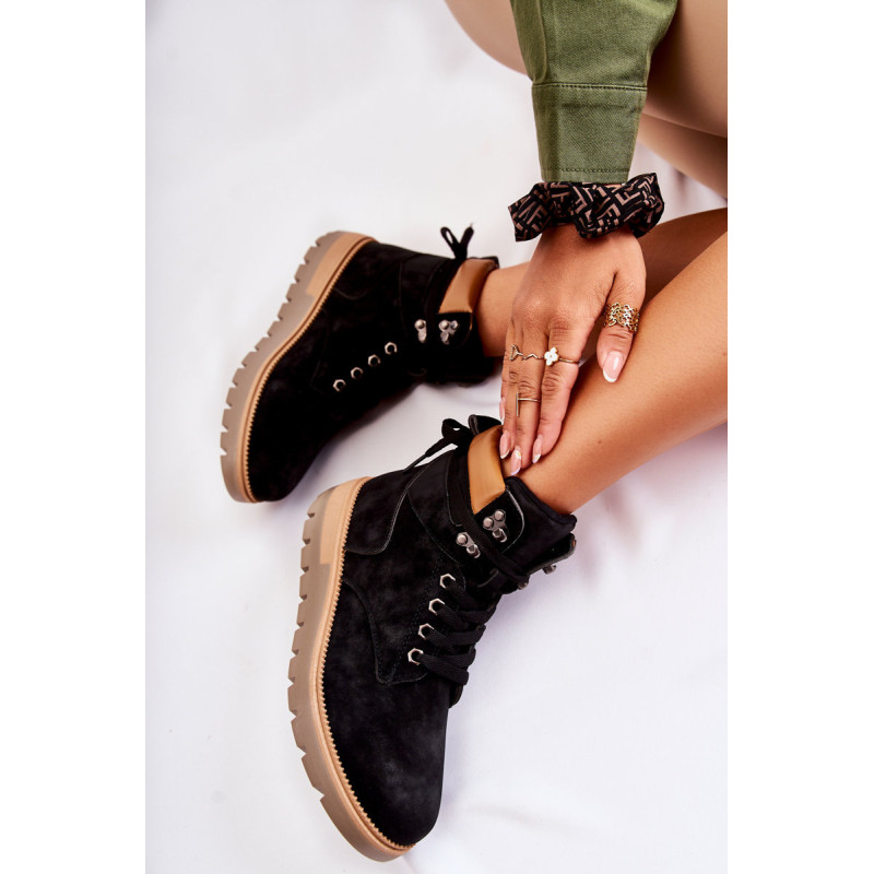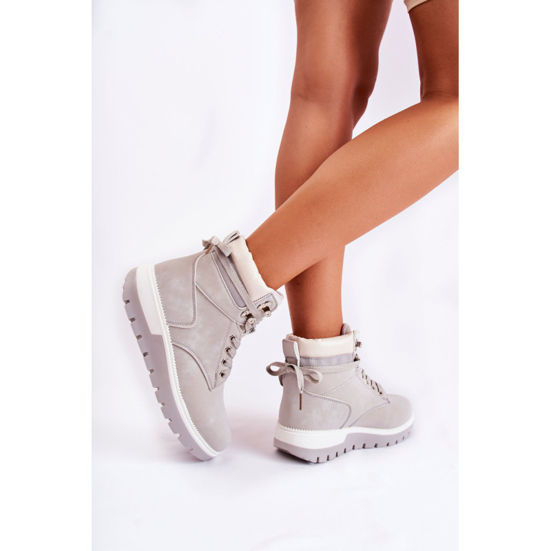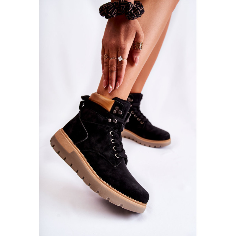 Moteriški batai pagaminti iš ekologiškos odos. Modelis sumontuotas ant platformos su būdingais grioveliais. Jie turi suapvalintą pirštą. Kulkšnį dengianti viršutinė dalis su maža kilpele gale, kad būtų lengviau apsivilkti. Vidpadis ir pamušalas izoliuoti antklode. Klasikinis suvarstymas plokščiais raišteliais leis tinkamai priderinti avalynę prie kojų pločio. Renkantis dydį, naudokite dydžių lentelę.