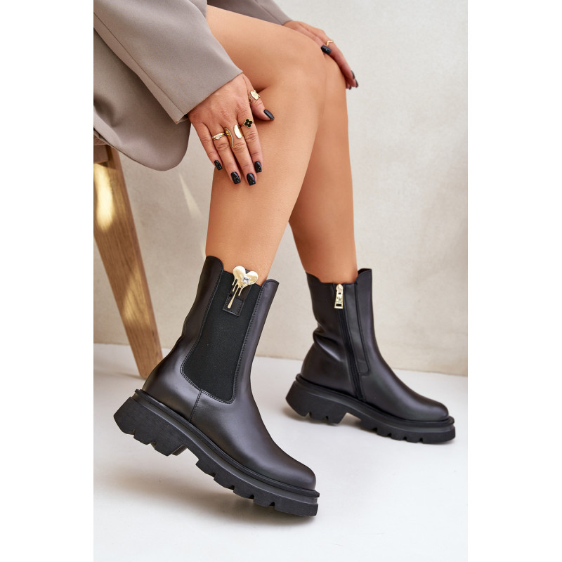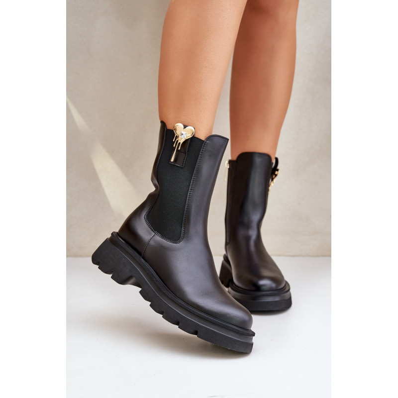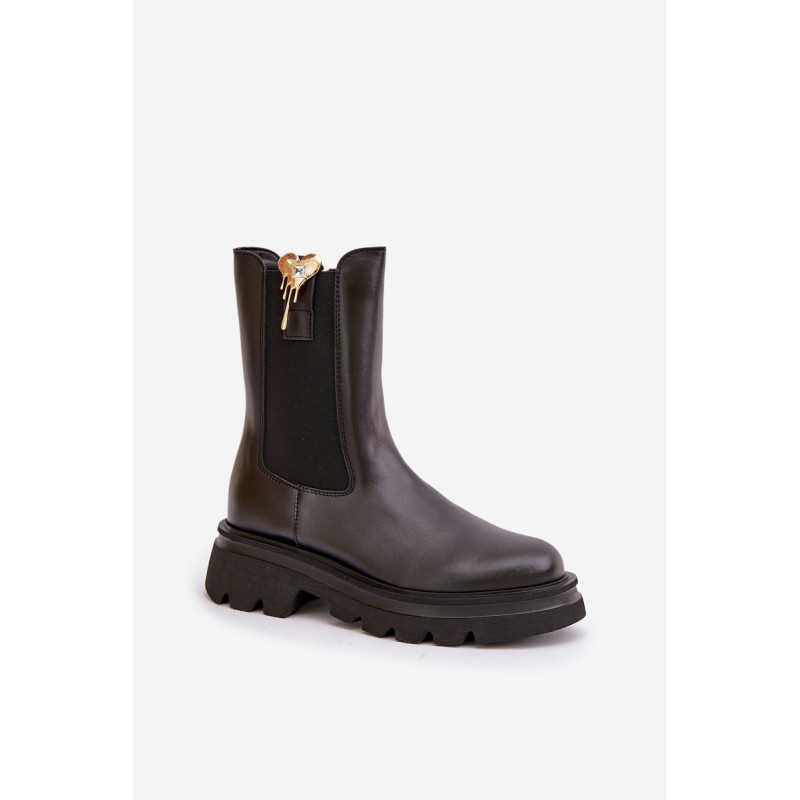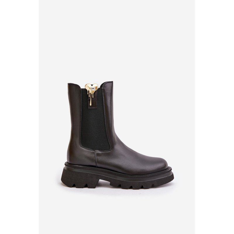 Chelsea čevlji iz naravne usnje so elegantna in udobna izbira za hladnejše dni. Postavljeni na ravnem peti, zagotavljajo udobje pri vsakodnevni nošnji. Zapirajo se z zadrgo in imajo okras v obliki srca, ki jim dodaja čar. Rahlo toplotno izolirani z obutveno flisom, bodo odlična izbira za jesenske in zimske sloge! Pri izbiri velikosti si oglejte tabelo velikosti.