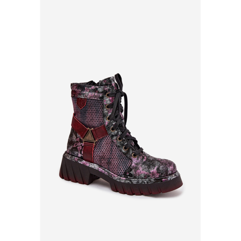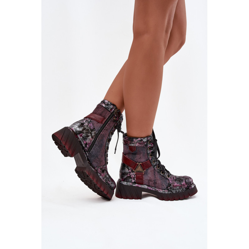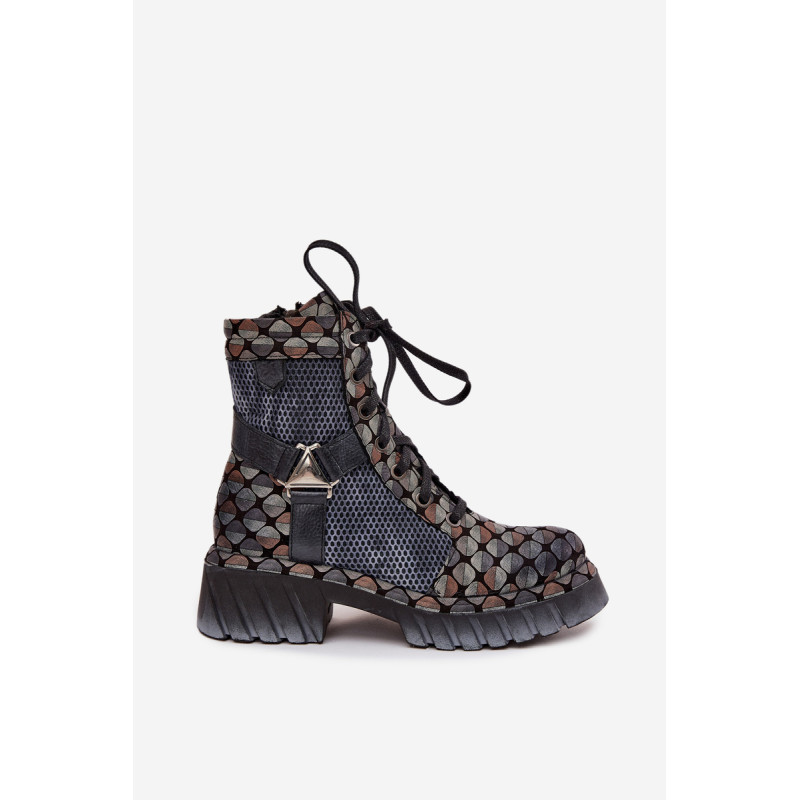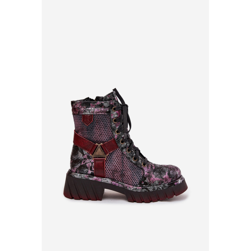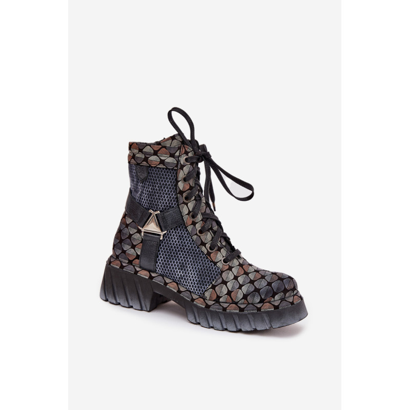 Moteriški darbo batai Maciejka yra pasiūlymas moterims, kurios mėgsta originalų stilių ir patogumą. Pagaminti iš natūralios odos, jie išsiskiria ilgaamžiškumu ir išskirtiniu išvaizda, kuri traukia dėmesį. Modelis įrengtas ant platformos su plokščiu kulnu, užtikrinančio stabilumą ir komfortą dėvint. Batai turi tiek praktišką raištelį, tiek užtrauktuką, todėl juos lengva pritaikyti prie pėdos ir greitai užsidėti. Viršuje yra įmontuotos juostos, sujungtos dekoratyviniu elementu, kuris suteikia visumai charakterio ir šiuolaikišką išvaizdą. Tai batai, kurie puikiai tinka kasdieniam stiliui, ypač moterims, vertinančioms drąsius ir stilingus akcentus. Renkantis dydį, vadovaukitės dydžių lentele.