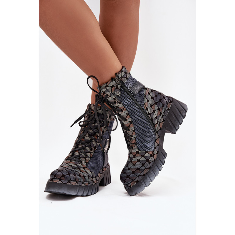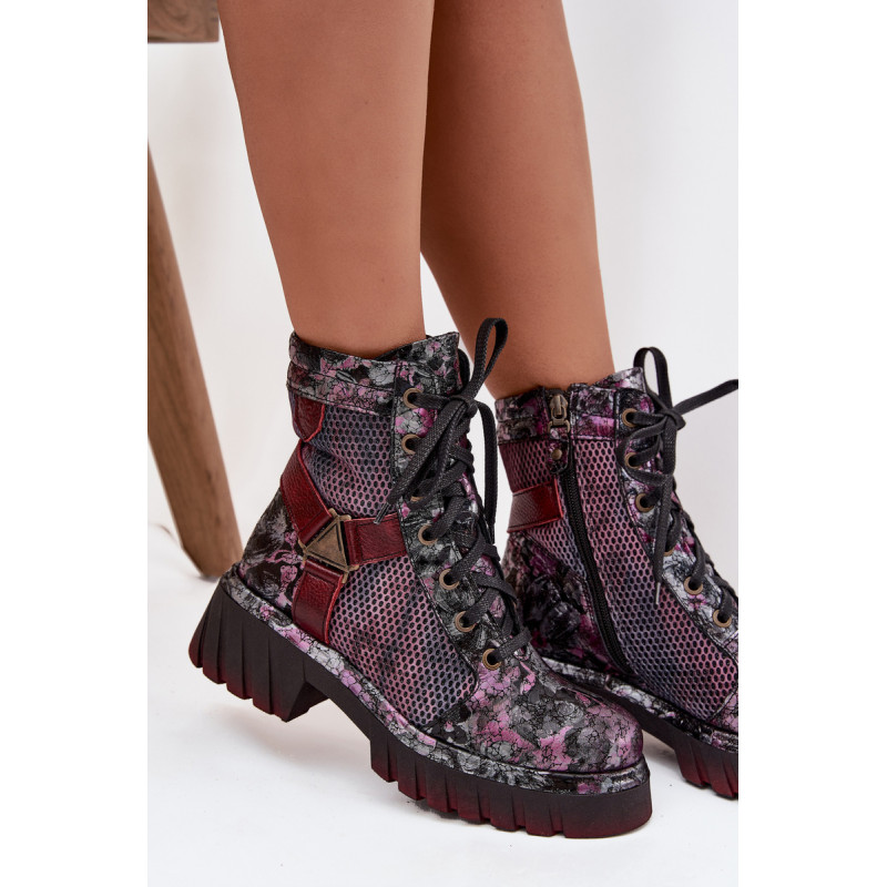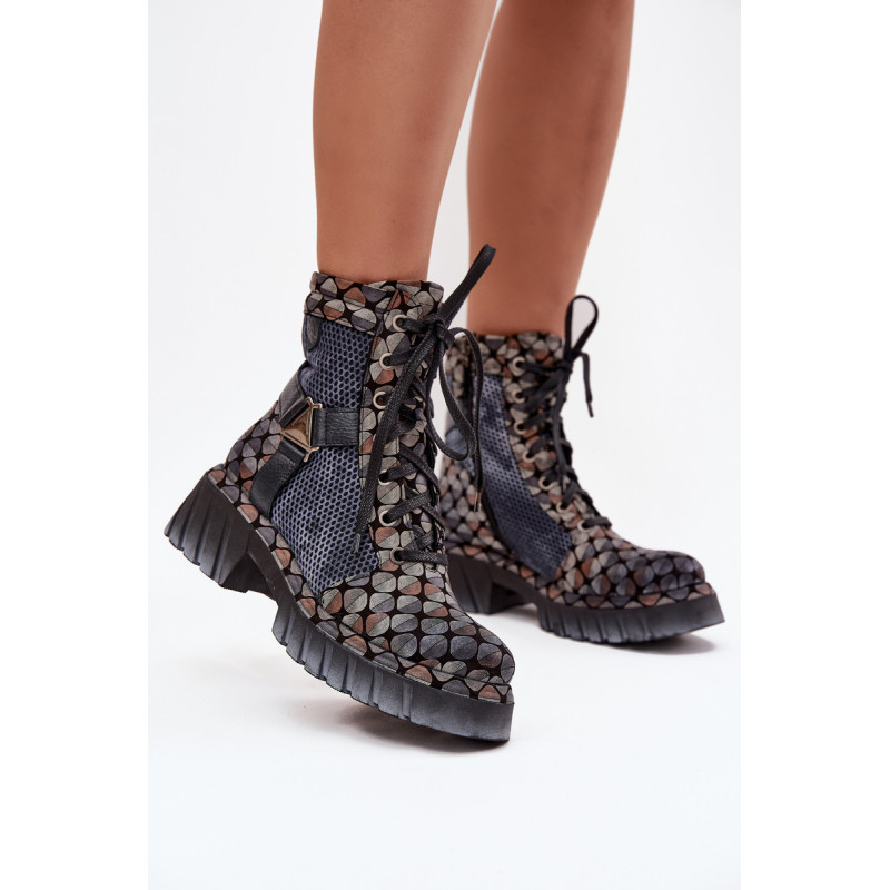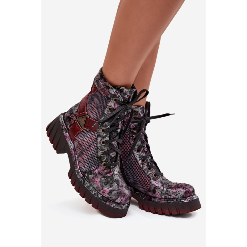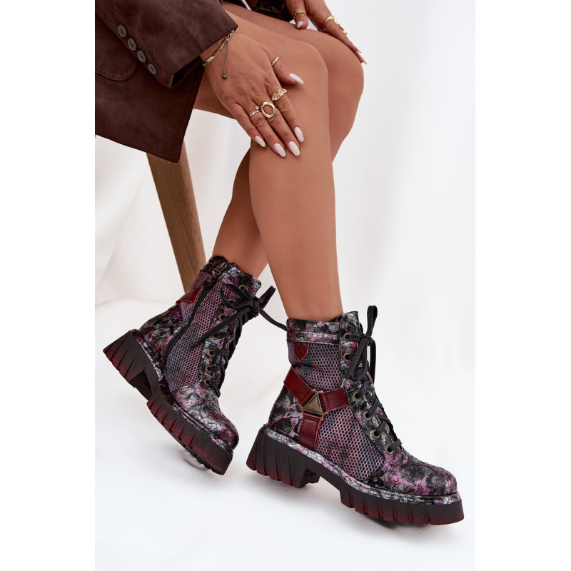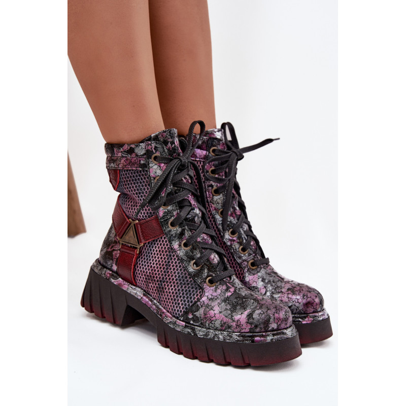 Moteriški darbo batai Maciejka yra pasiūlymas moterims, kurios mėgsta originalų stilių ir patogumą. Pagaminti iš natūralios odos, jie išsiskiria ilgaamžiškumu ir išskirtiniu išvaizda, kuri traukia dėmesį. Modelis įrengtas ant platformos su plokščiu kulnu, užtikrinančio stabilumą ir komfortą dėvint. Batai turi tiek praktišką raištelį, tiek užtrauktuką, todėl juos lengva pritaikyti prie pėdos ir greitai užsidėti. Viršuje yra įmontuotos juostos, sujungtos dekoratyviniu elementu, kuris suteikia visumai charakterio ir šiuolaikišką išvaizdą. Tai batai, kurie puikiai tinka kasdieniam stiliui, ypač moterims, vertinančioms drąsius ir stilingus akcentus. Renkantis dydį, vadovaukitės dydžių lentele.