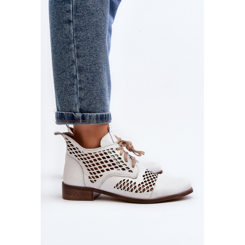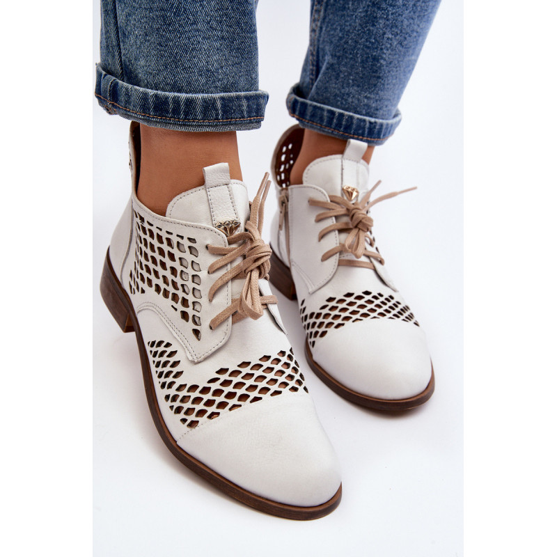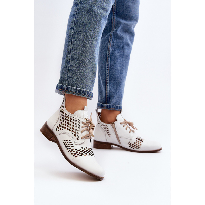 Suvarstomi kulkšnies batai moterims. Pagaminta iš aukštos kokybės natūralios odos. Jie turi klasikinį suvarstymą ir dekoratyvinį logotipą ant liežuvio. Batai ant plokščio kulno su pastiprinimu ant kulno. Viršutinės dalies vidinėje pusėje yra užtrauktukas, kuris palengvina batų apsiauti. Minkštas, odinis vidpadis suteiks didesnį komfortą visą dieną! Jūs tikrai turėtumėte juos turėti! Rinkdamiesi dydį, žiūrėkite dydžių lentelę.