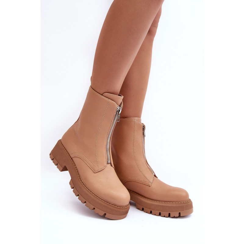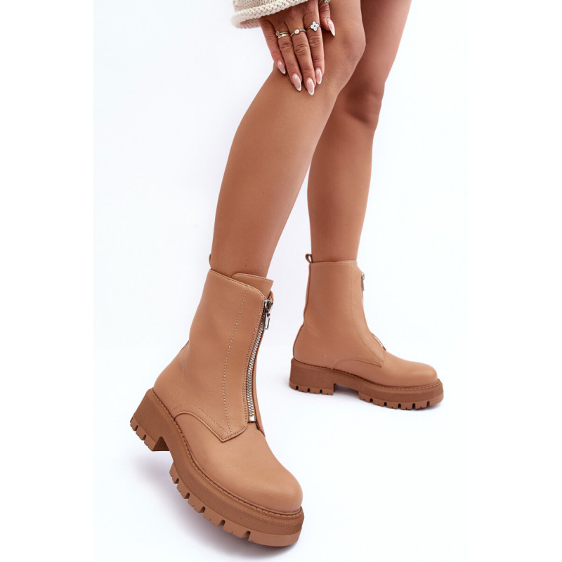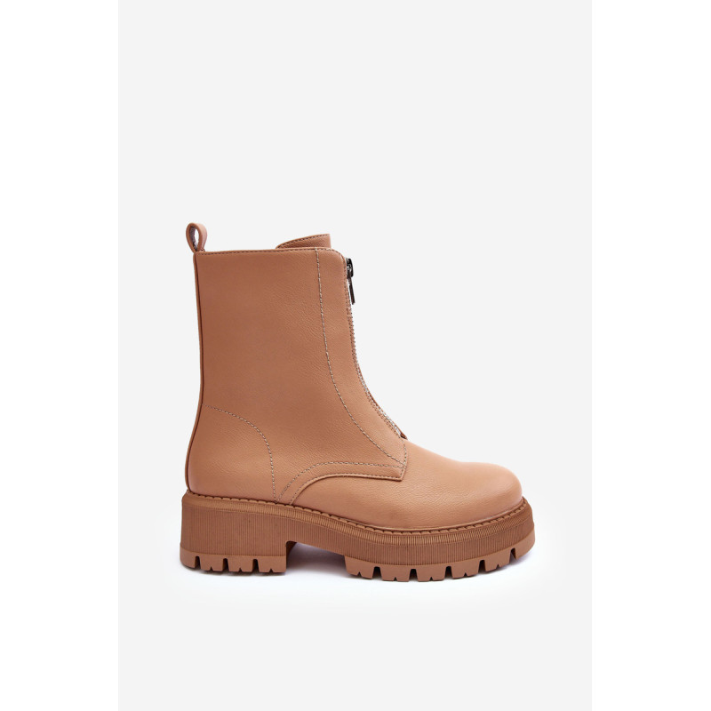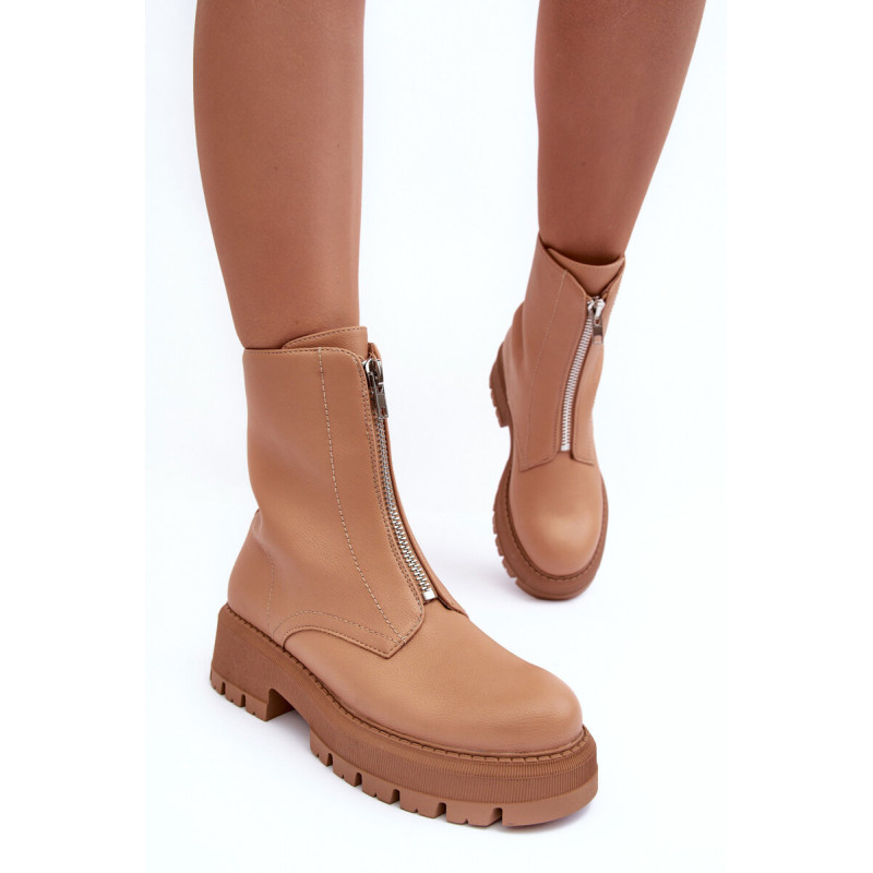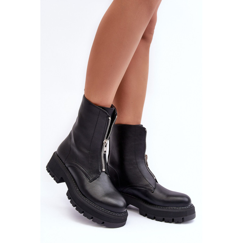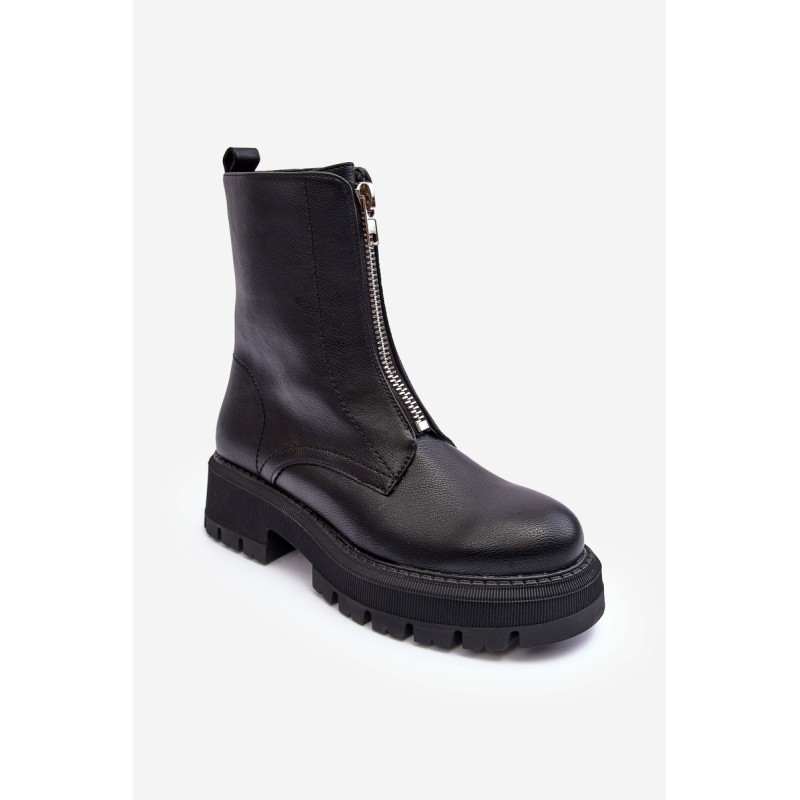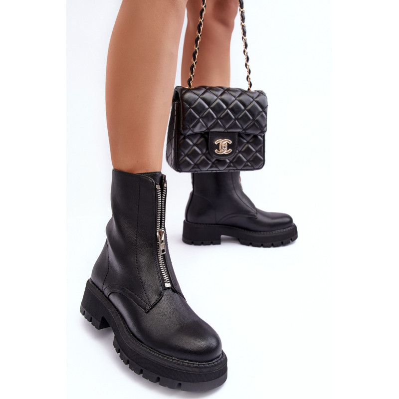 Madingi moteriški batai, pagaminti iš ekologiškos odos. Modelis su apvaliu pirštu. Pastatykite ant plokščio, stabilaus kulno ir platformos. Priekyje užsegamas užtrauktuku. Vidus išklotas batsiuvio antklode. Šio bato pirštas yra sustiprintas. Renkantis dydį, vadovaukitės dydžių lentele.