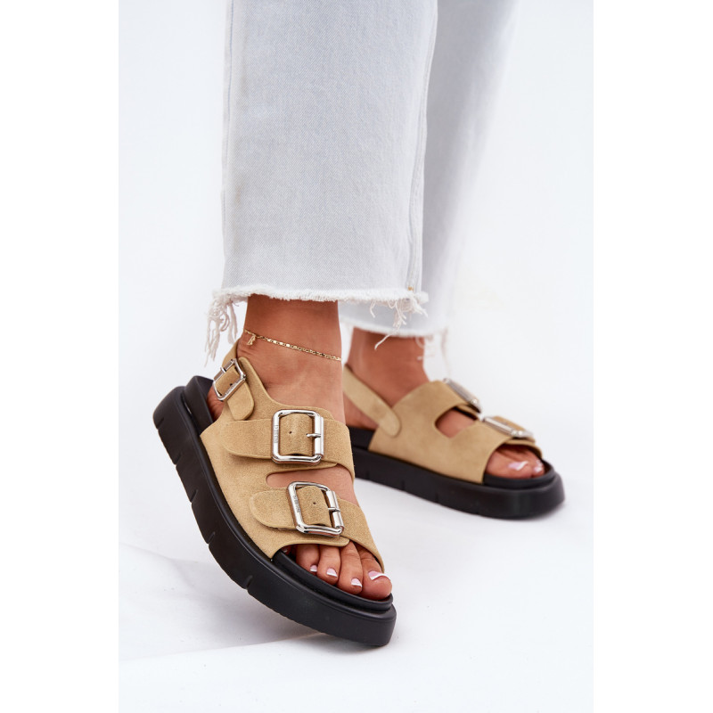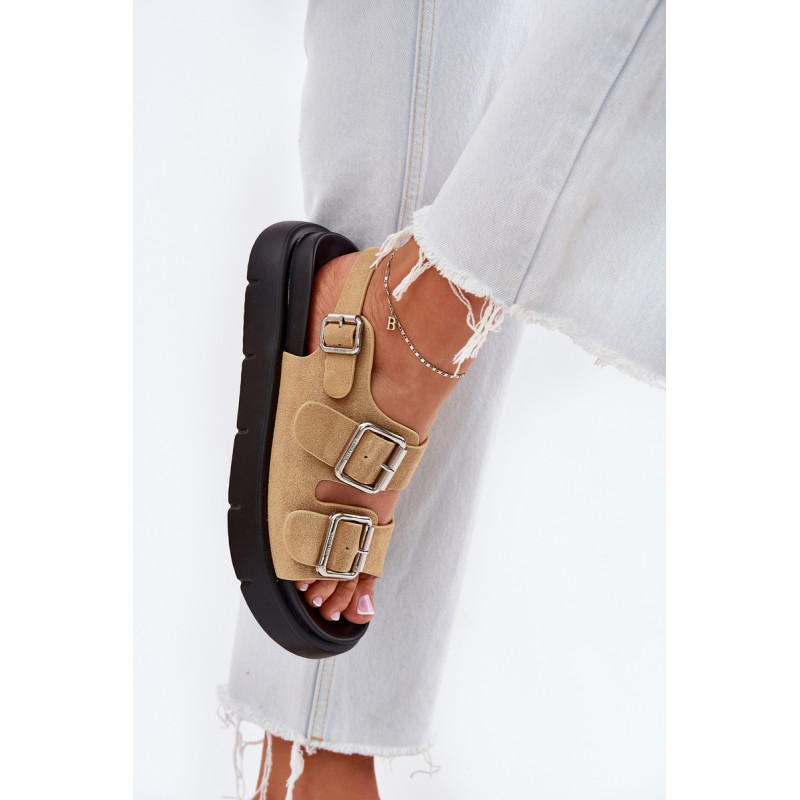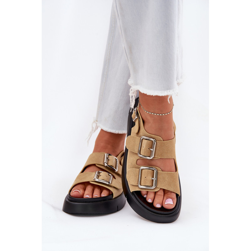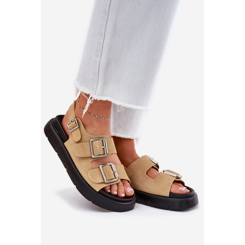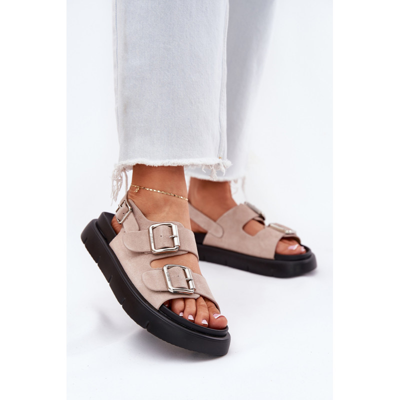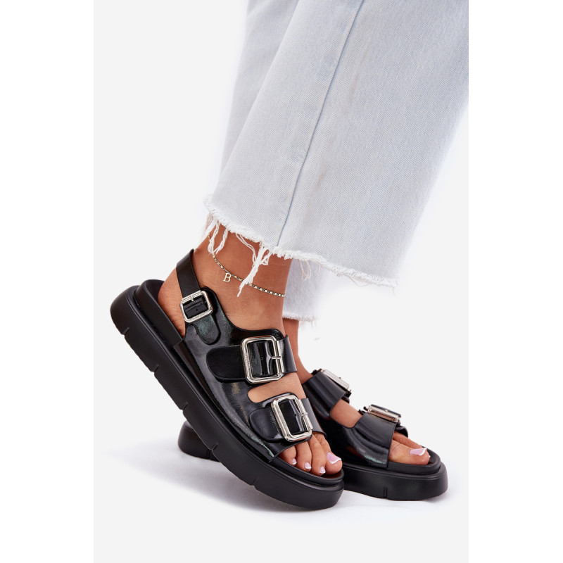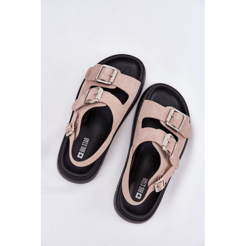 Moteriški Big Star prekės sandalai, pagaminti iš natūralios odos, yra elegantiškas pasirinkimas šiltoms dienoms. Padėtos ant platformos, jie užtikrina komfortą ir stabilumą visą dieną. Šis modelis išsiskiria dviem reguliuojamais dirželiais su sagtimis priekyje, kurie leidžia idealiai pritaikyti, ir užsegamu dirželiu gale, kuris užtikrina papildomą stabilumą. Šie stilingi sandalai bus puikus vasaros stilių papildymas, derinant funkcionalumą su madingu įvaizdžiu. Renkantis dydį, vadovaukitės dydžių lentele.