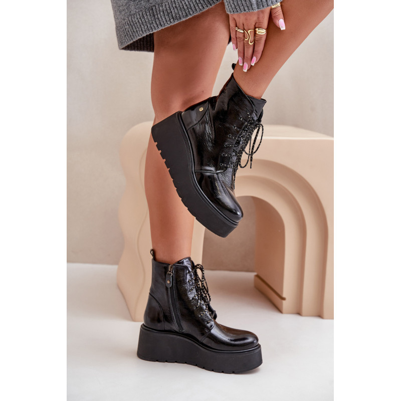 Maciejka prekės ženklo botai, pagaminti iš natūralios odos, sujungia stilių ir patogumą. Įrengti ant platformos ir pakulnės, jie užtikrina stabilumą ir komfortą dėvint. Modelis užsegamas užtrauktuku ir raišteliais, kas palengvina pritaikymą pėdai. Idealiai tinka kasdieniams ir elegantiškesniems įvaizdžiams. Renkantis dydį, vadovaukitės dydžių lentele.