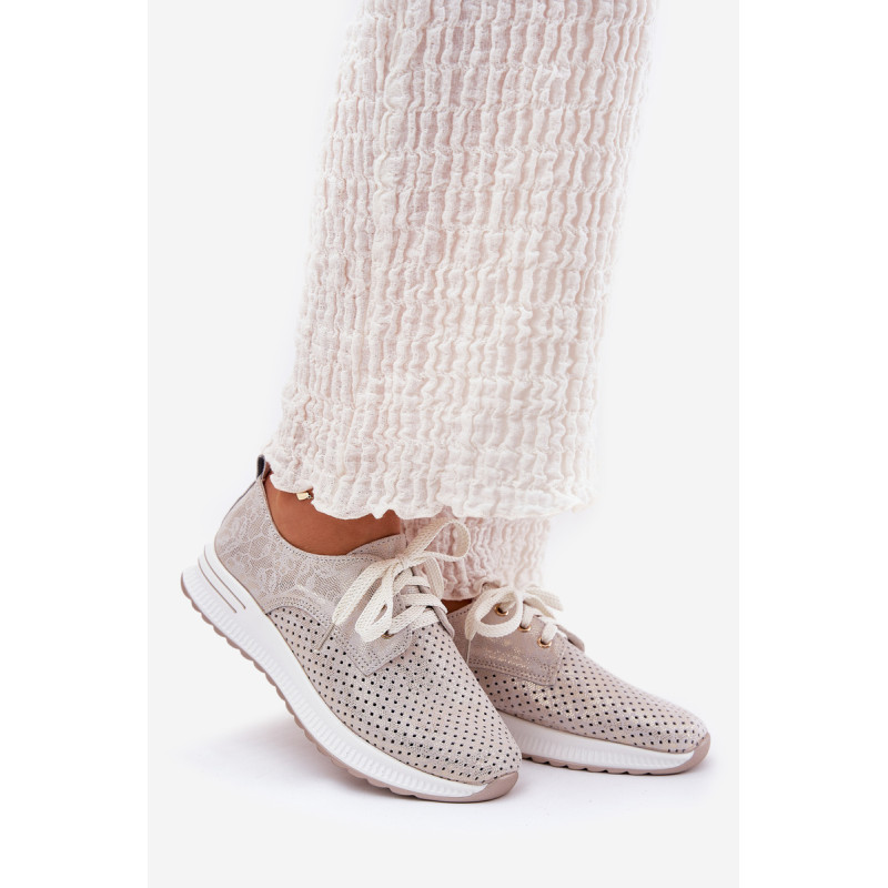 Moteriški pusbačiai, pagaminti iš natūralios odos. Įrengti ant platformos ir pakulnės su gėlių raštu. Suapvalinti pirštai. Ažūrinis viršus suteikia lengvumo ir išskirtinio žavesio. Šnoruojamas modelis. Lengvi ir patogūs, puikiai tinka pavasario-vasaros stiliams! Renkantis dydį, vadovaukitės dydžių lentele.