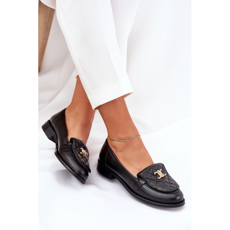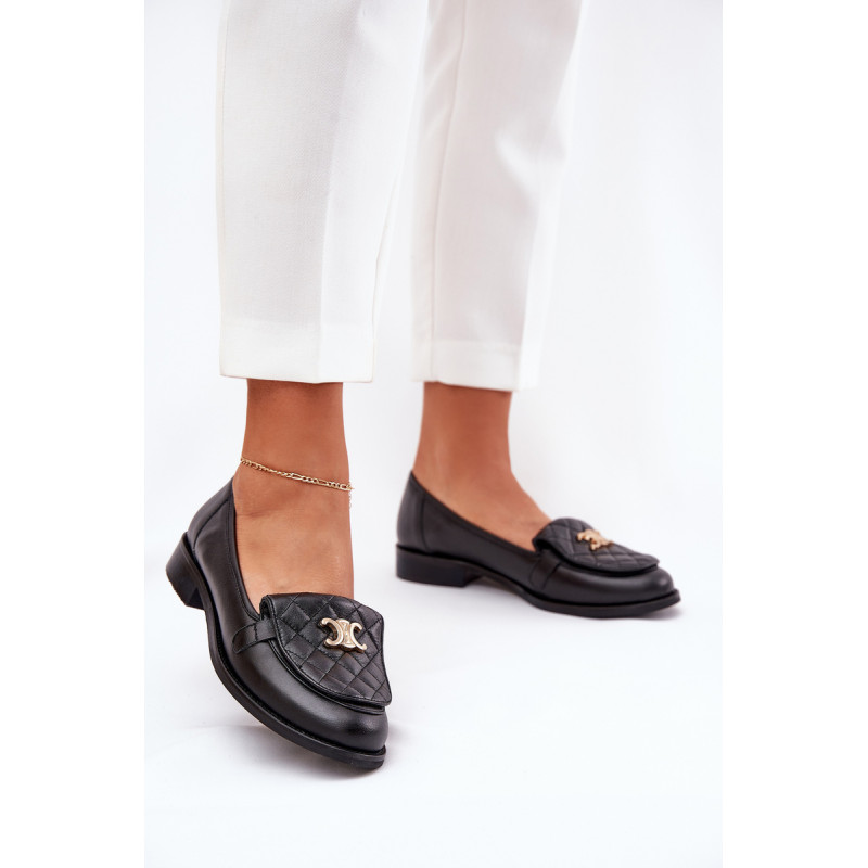 Eleganti moteriški mokasinai, pagaminti iš aukštos kokybės natūralios odos. Batų priekį puošia subtilūs siuvinėjimai ir auksinis elementas, suteikiantis jiems stiliaus ir unikalumo. Apvalūs pirštai suteikia modeliui klasikinį įvaizdį, o odinis padas užtikrina komfortą visą dieną. Puikiai tinka tiek kasdieniam, tiek oficialiam stiliui - būtinas kiekvienos moters garderobui! Renkantis dydį, vadovaukitės dydžių lentele.