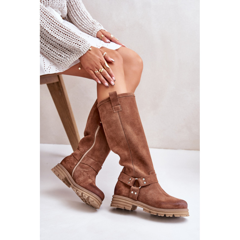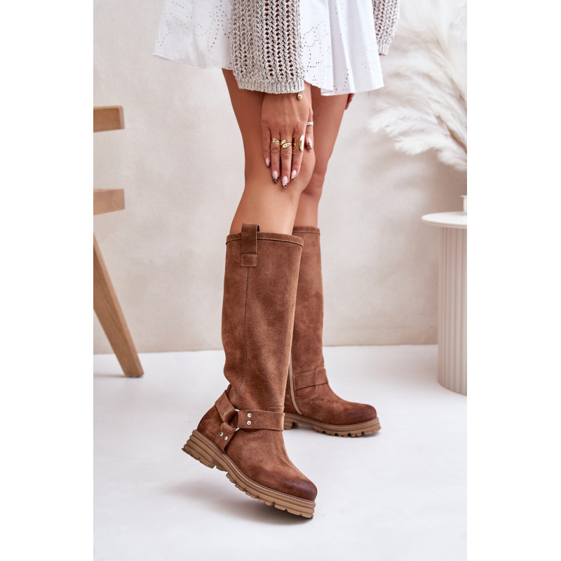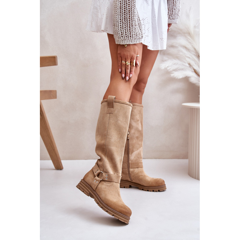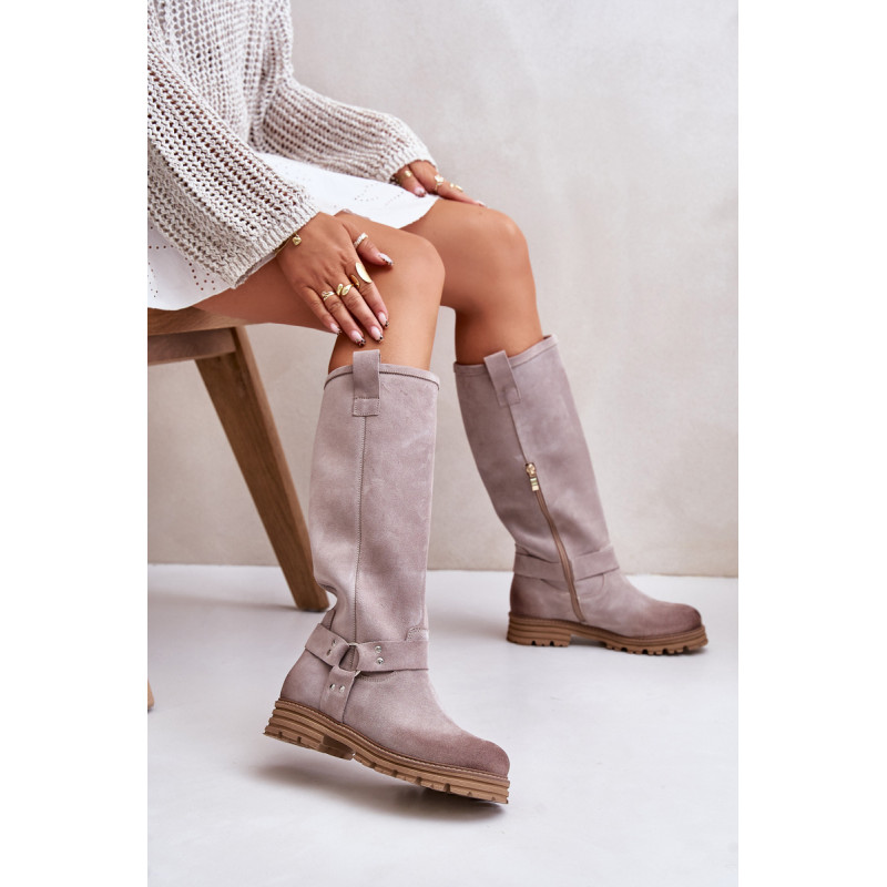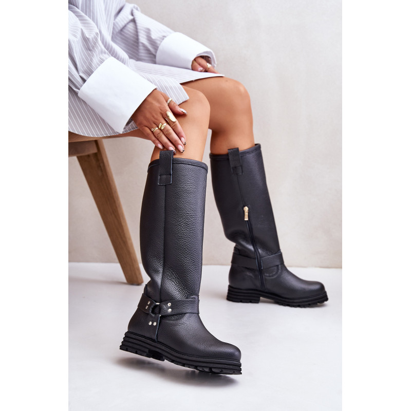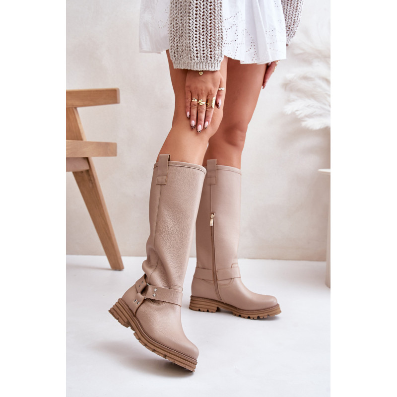 Moteriški batai iki kelių, pagaminti iš natūralios odos, derina eleganciją ir patogumą. Ant plokščio kulno jie suteikia patogumo dėvėti visą dieną. Kotas siekia virš kelių, suteikia stiliaus ir puikiai papildo įvairius drabužius. Suapvalinti kojų pirštai suteikia jiems subtilų vaizdą. Užsegamas dizainas su praktišku užtrauktuku palengvina juos užsidėti, o dekoratyviniai dirželiai ant koto suteikia charakterio. Puikiai tinkantys kasdieniam dėvėjimui ir ypatingoms progoms – šie batai puikiai papildys jūsų garderobą! Rinkdamiesi dydį žiūrėkite dydžių lentelę.