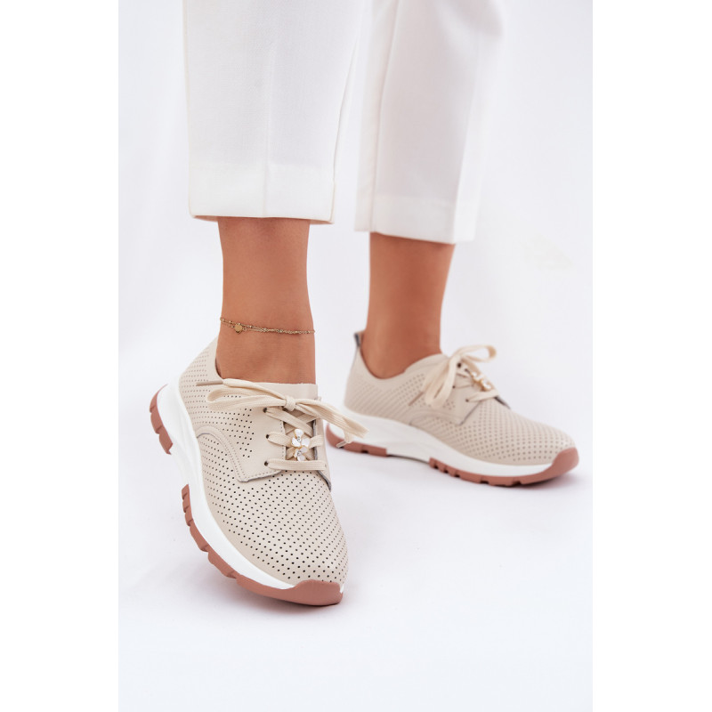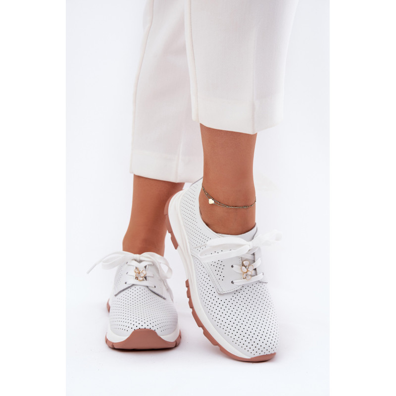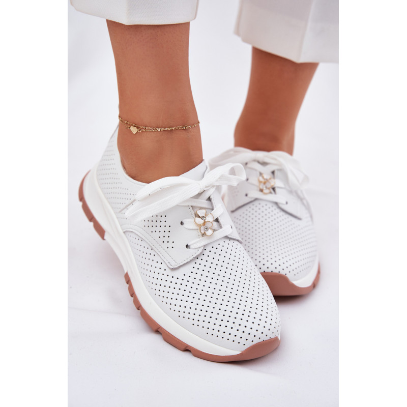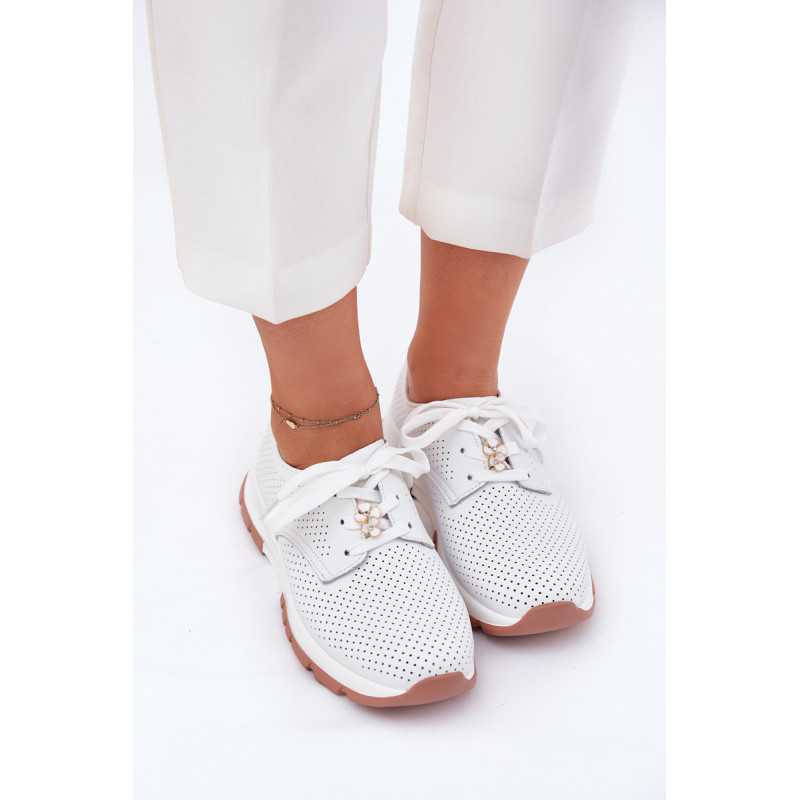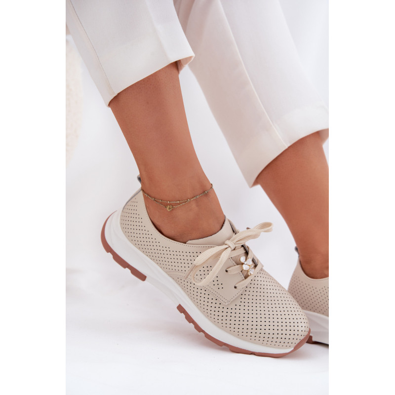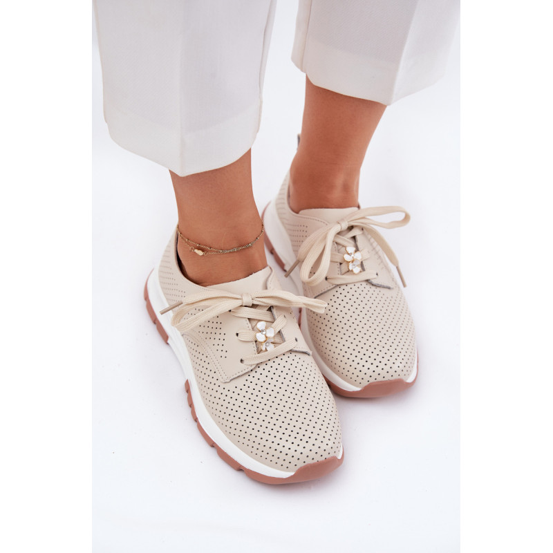 Moteriški sportiniai bateliai, pagaminti iš natūralios odos, yra komforto ir madingo išvaizdos derinys. Įrengti ant platformos, jie užtikrina lengvumą ir patogumą visą dieną. Šnervės, puošdamos gėlių formos segtuku, prideda žavingą akcentą, o apvalūs pirštai garantuoja visišką judėjimo laisvę. Odinė vidpadis rūpinasi pėdų komfortu, todėl šie bateliai yra puikus pasirinkimas kasdieniam dėvėjimui. Renkantis dydį, vadovaukitės dydžių lentele.