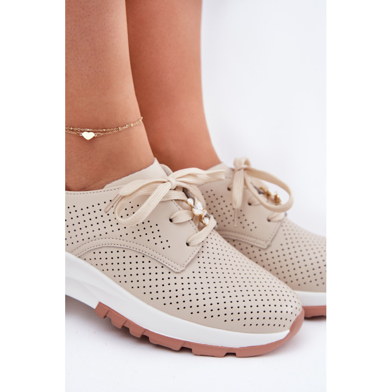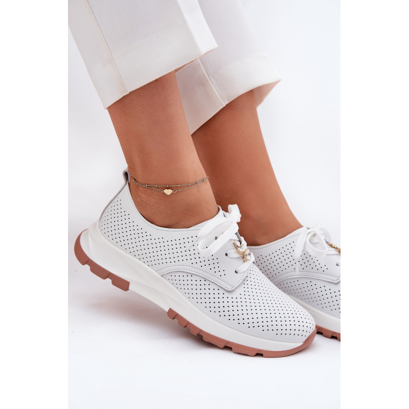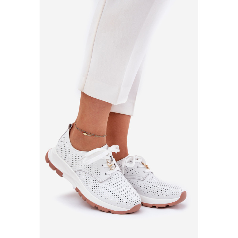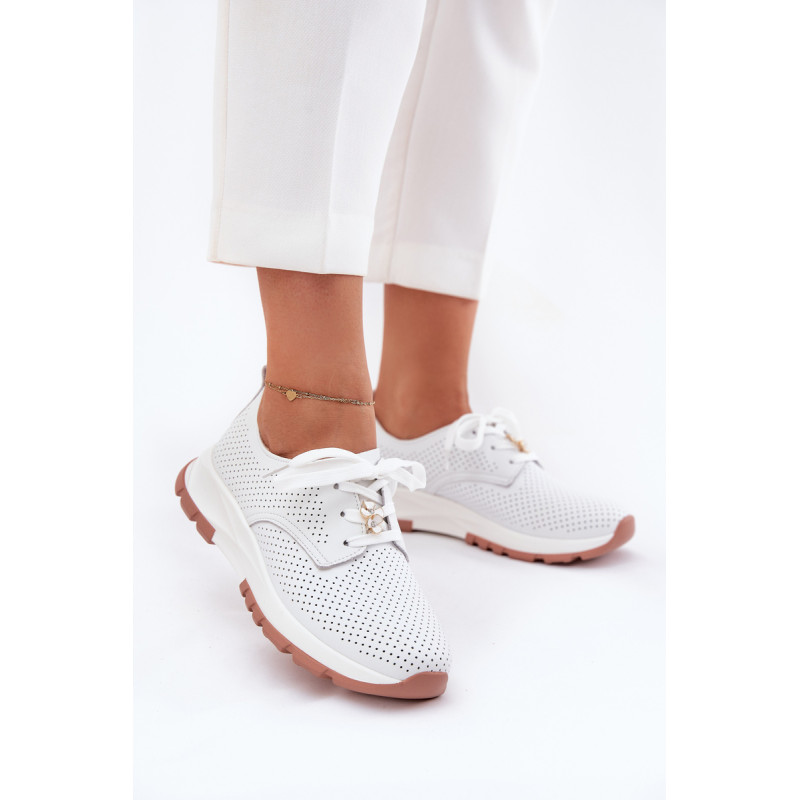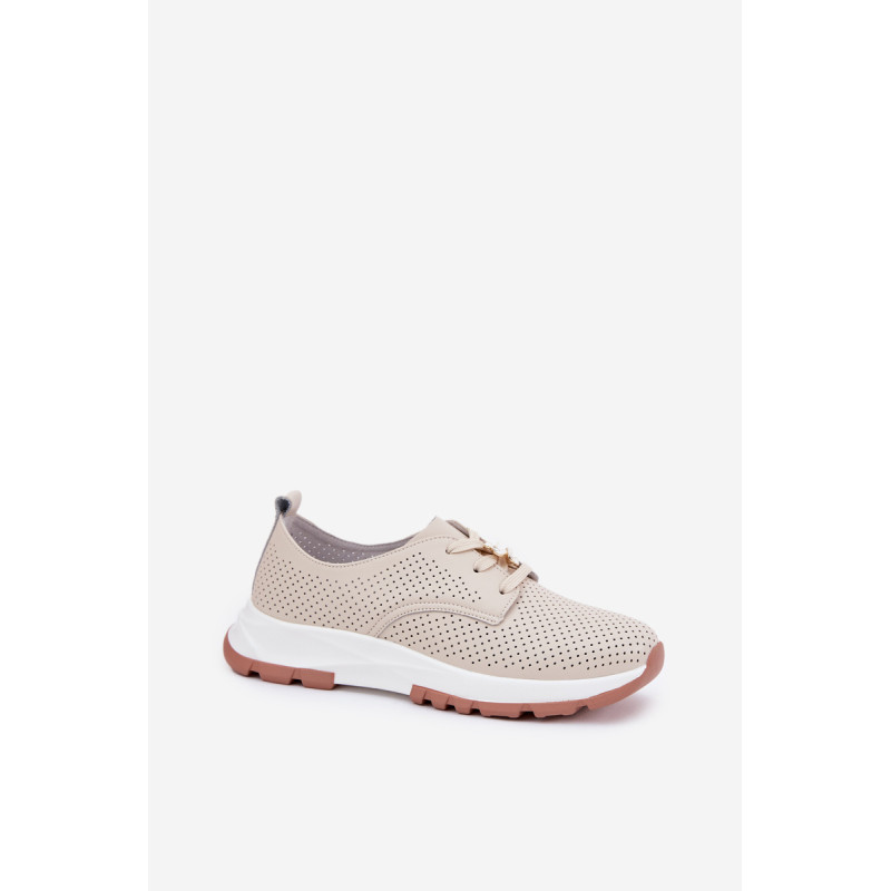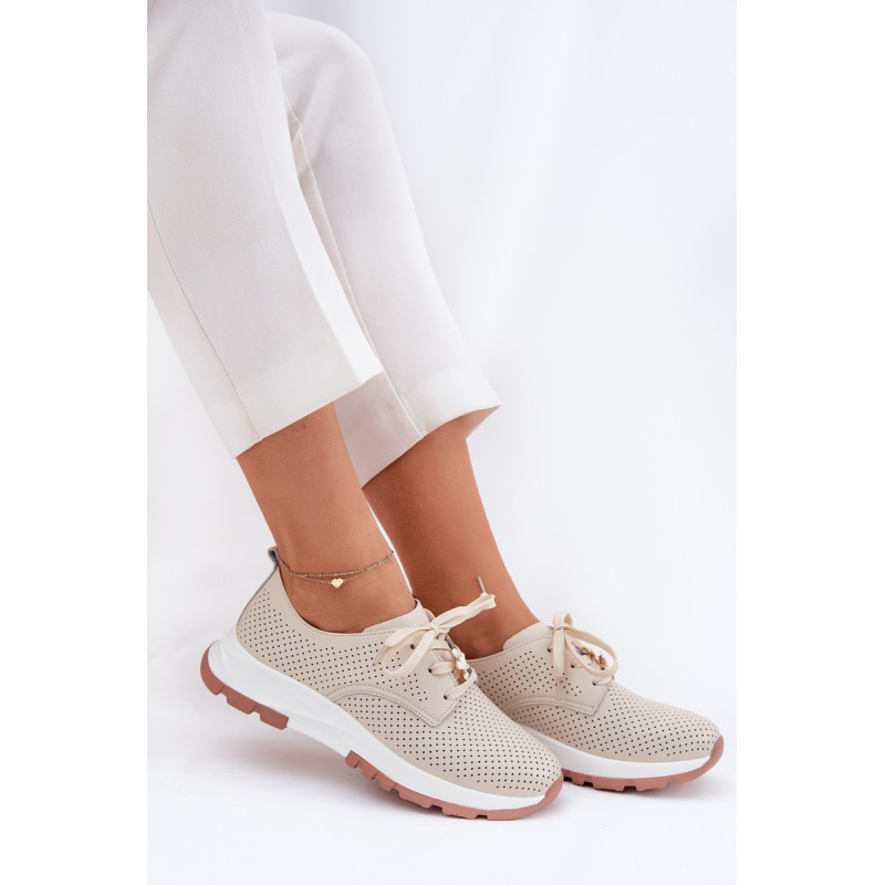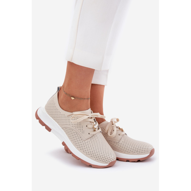 Moteriški sportiniai bateliai, pagaminti iš natūralios odos, yra komforto ir madingo išvaizdos derinys. Įrengti ant platformos, jie užtikrina lengvumą ir patogumą visą dieną. Šnervės, puošdamos gėlių formos segtuku, prideda žavingą akcentą, o apvalūs pirštai garantuoja visišką judėjimo laisvę. Odinė vidpadis rūpinasi pėdų komfortu, todėl šie bateliai yra puikus pasirinkimas kasdieniam dėvėjimui. Renkantis dydį, vadovaukitės dydžių lentele.