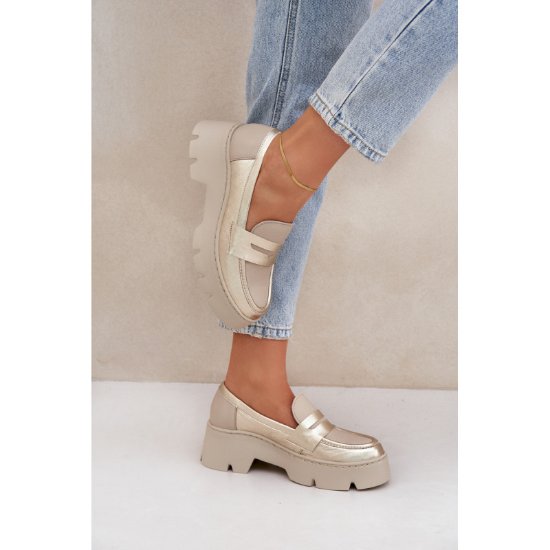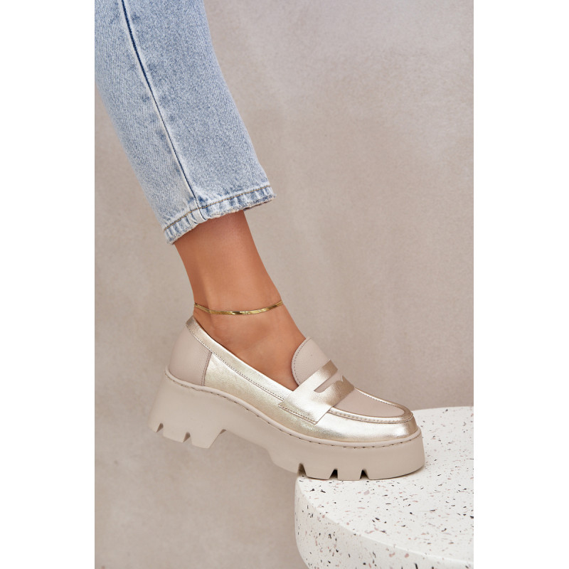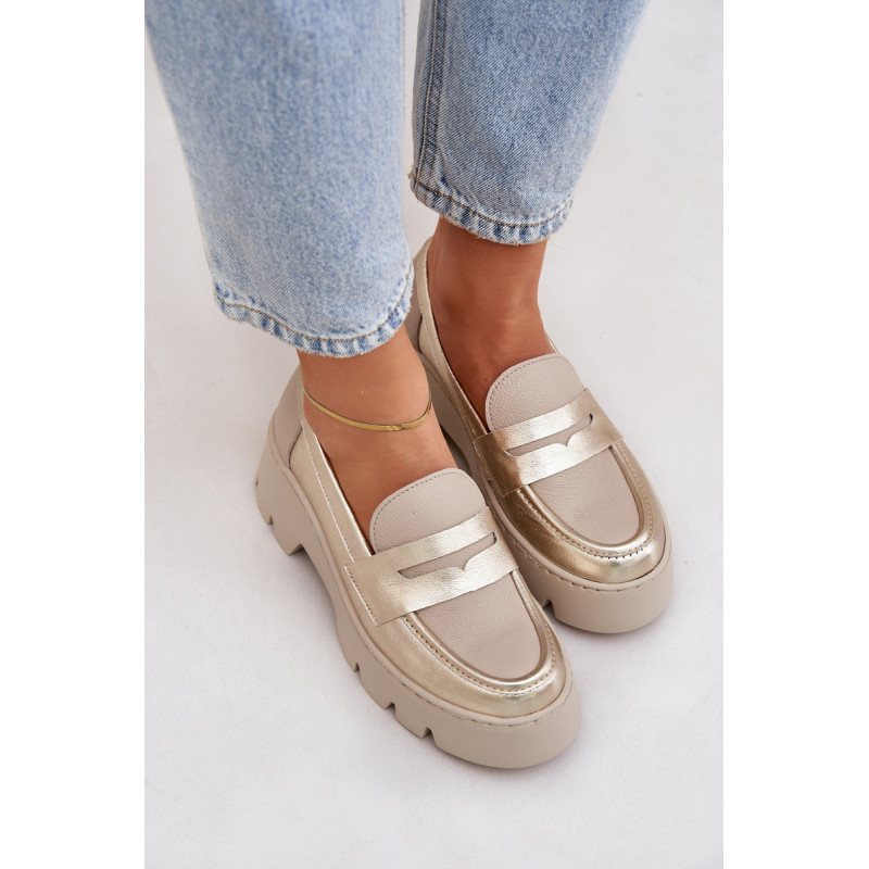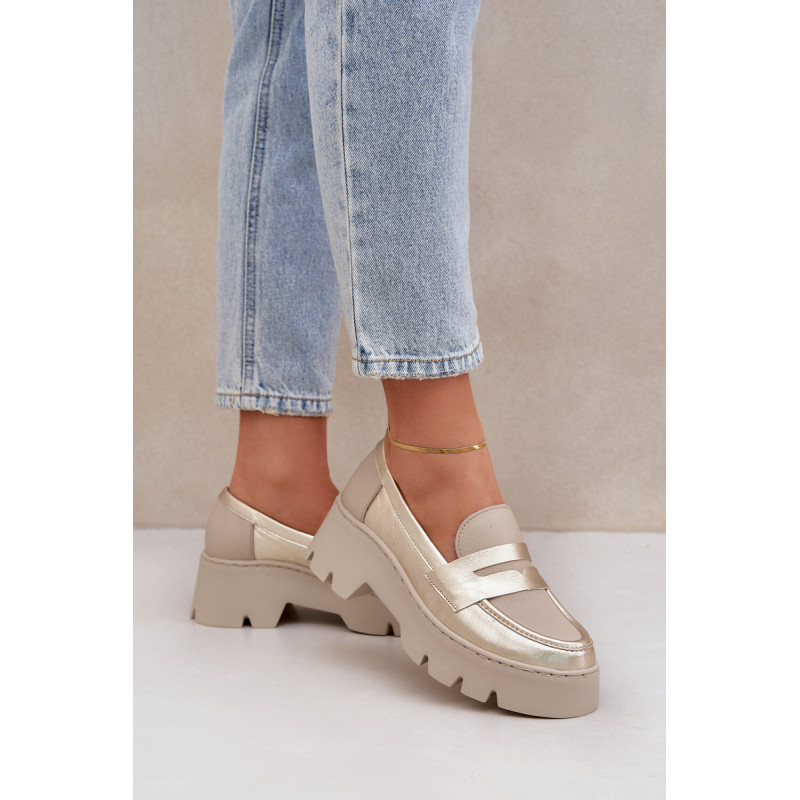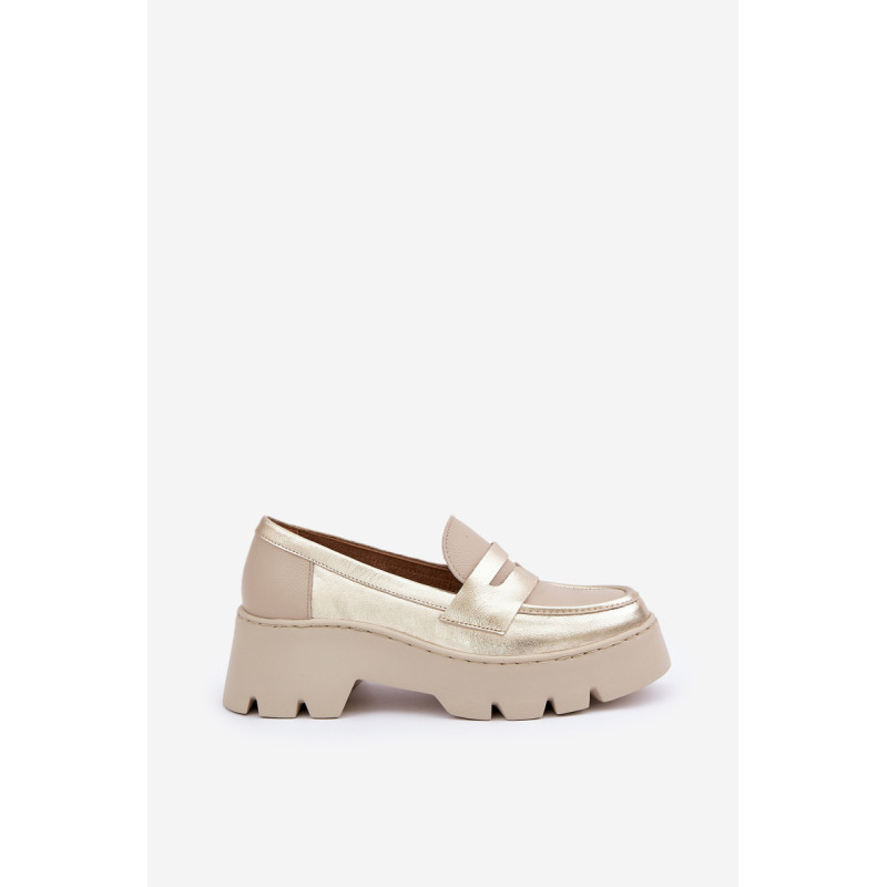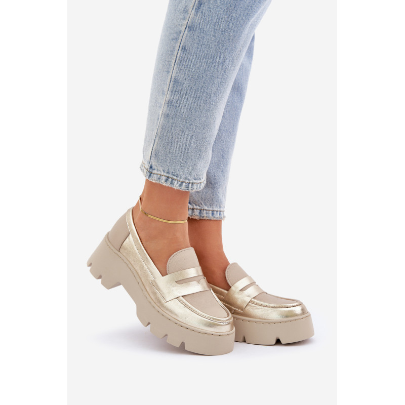 Moteriški mokasinai iš natūralios odos yra elegantiška ir stilinga pasirinkimo galimybė bet kuriai progai. Sumontuoti ant platformos ir masyvaus, plokščio kulno, jie užtikrina komfortą ir stabilumą visą dieną. Suapvalinti pirštai suteikia jiems subtilų charakterį, o dekoratyvinė juostelė su išpjova priekyje suteikia modernų akcentą. Šie mokasinai derina eleganciją su komfortu, todėl yra puikus pasirinkimas įvairioms aprangoms. Renkantis dydį, vadovaukitės dydžių lentele.