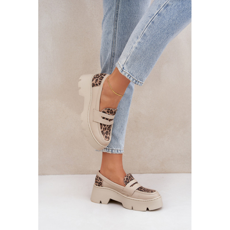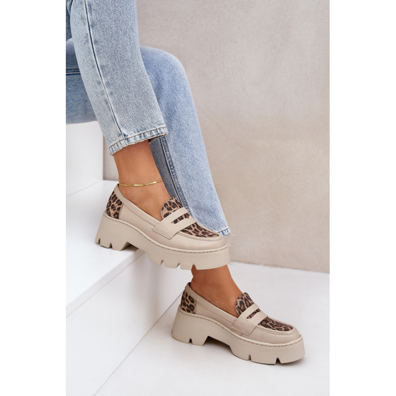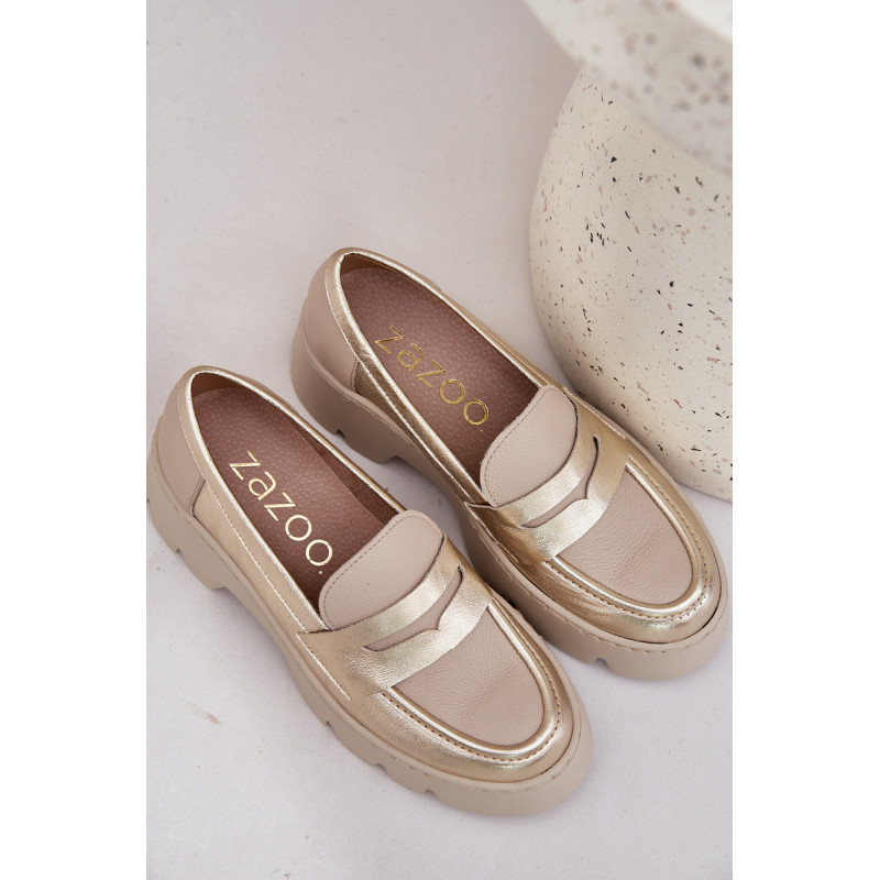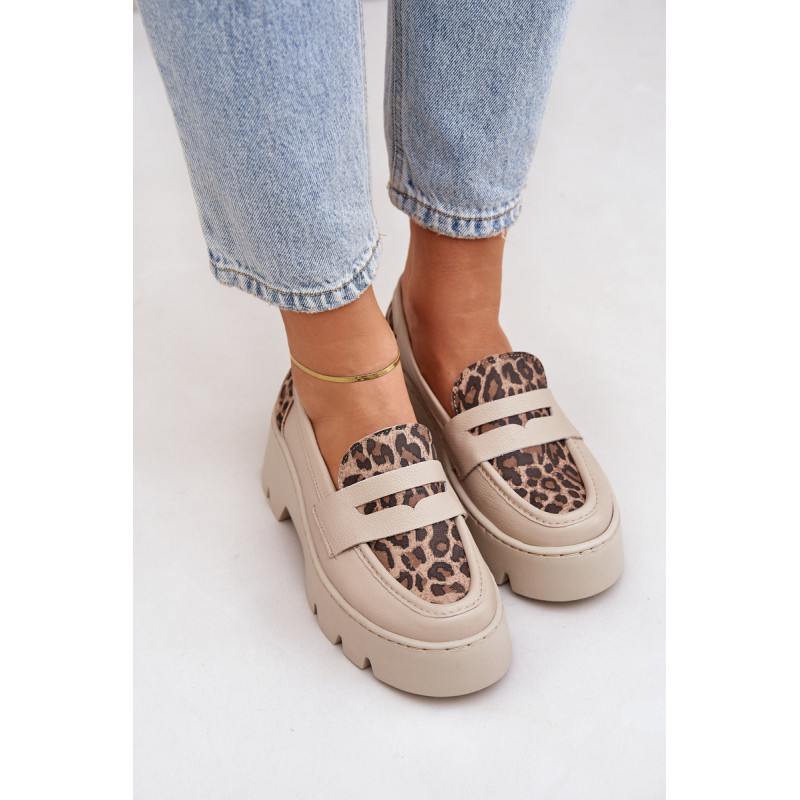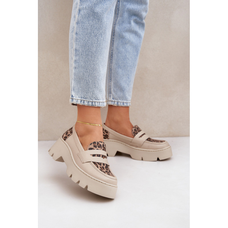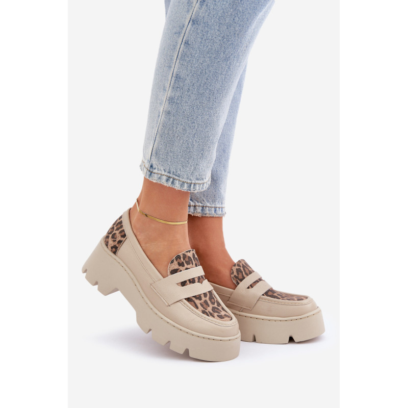 Moteriški mokasinai iš natūralios odos yra elegantiška ir stilinga pasirinkimo galimybė bet kuriai progai. Sumontuoti ant platformos ir masyvaus, plokščio kulno, jie užtikrina komfortą ir stabilumą visą dieną. Suapvalinti pirštai suteikia jiems subtilų charakterį, o dekoratyvinė juostelė su išpjova priekyje suteikia modernų akcentą. Šie mokasinai derina eleganciją su komfortu, todėl yra puikus pasirinkimas įvairioms aprangoms. Renkantis dydį, vadovaukitės dydžių lentele.