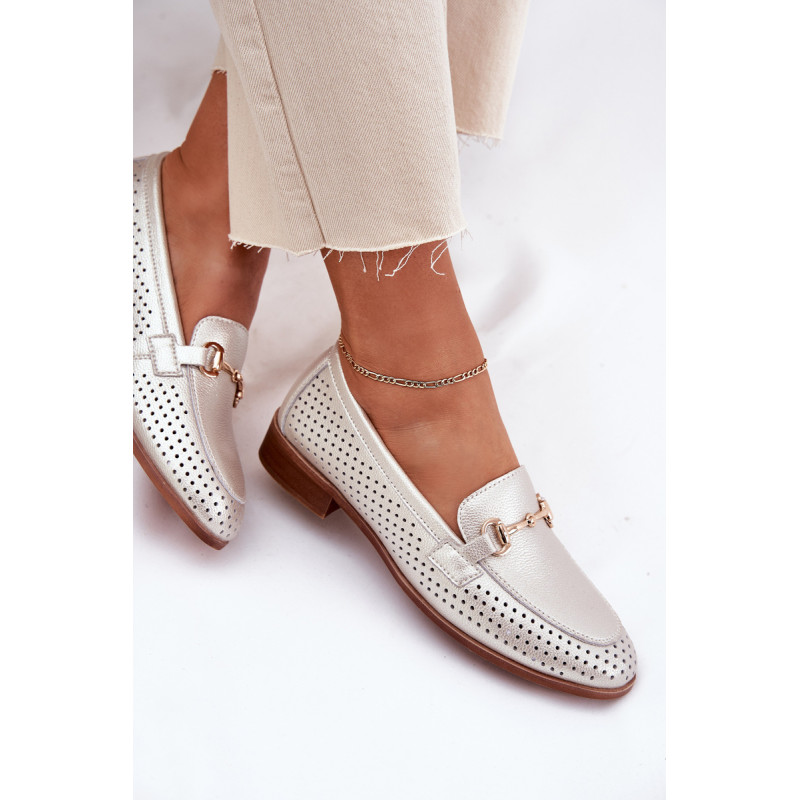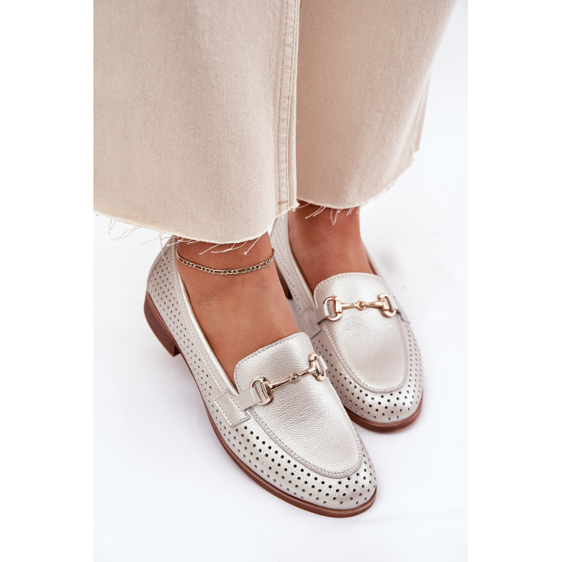 Moteriški mokasinai, pagaminti iš natūralios odos. Ant plokščio kulno. Pirštai suapvalinti. Minkštas įdėklas užtikrina patogumą kiekviename žingsnyje. Papildomas dekoratyvinis elementas priekyje suteikia jiems unikalų žavesį. Nesvarbu, ar einate susitikti su draugais, ar į labiau oficialų renginį, šie mokasinai bus puikus jūsų įvaizdžio papildymas, pridėdami subtilios elegancijos gaidelį. Renkantis dydį, vadovaukitės dydžių lentele.