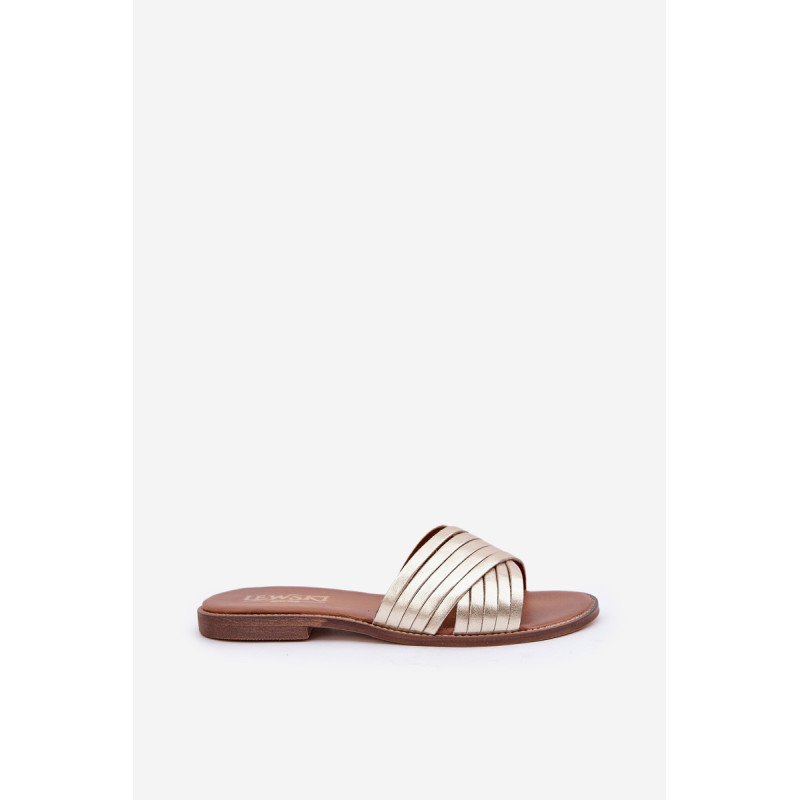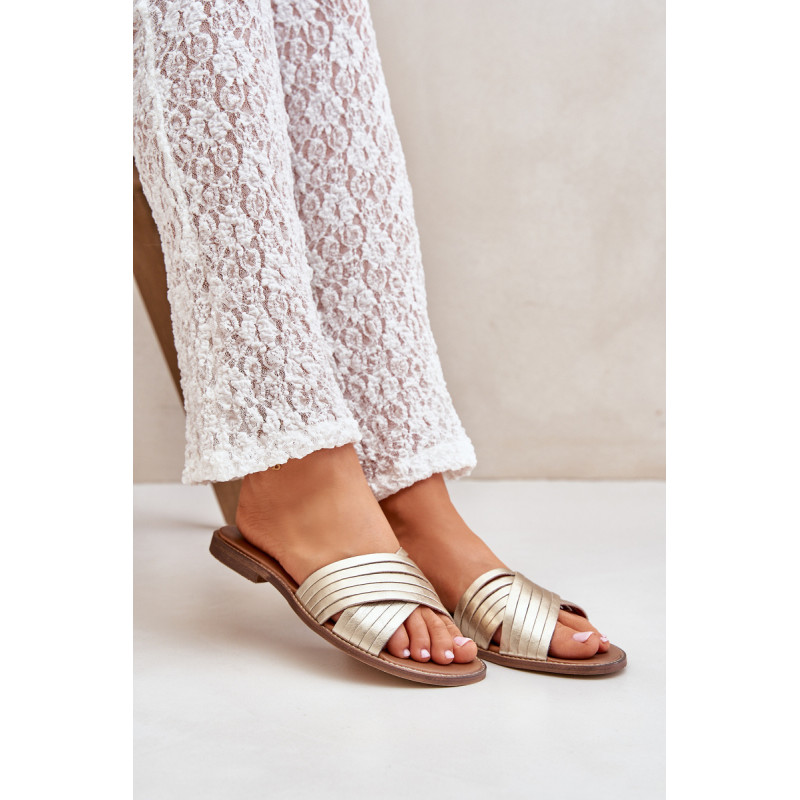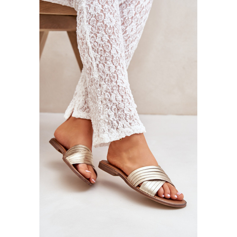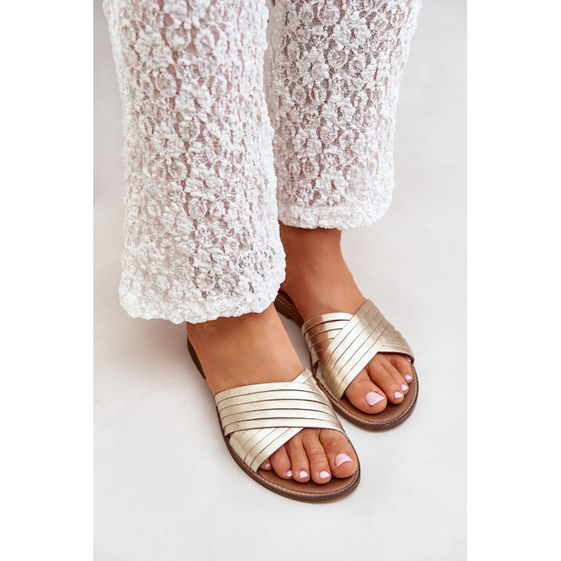 Elegantiškos šlepetės iš natūralios odos, puikiai derančios prie daugelio stilių. Priekyje yra dvi kryžminės juostos. Įrengtos ant plokščio kulno. Oda vidpadis užtikrina patogumą dėvint. Jūs tikrai turėtumėte jas turėti! Renkantis dydį, vadovaukitės dydžių lentele.