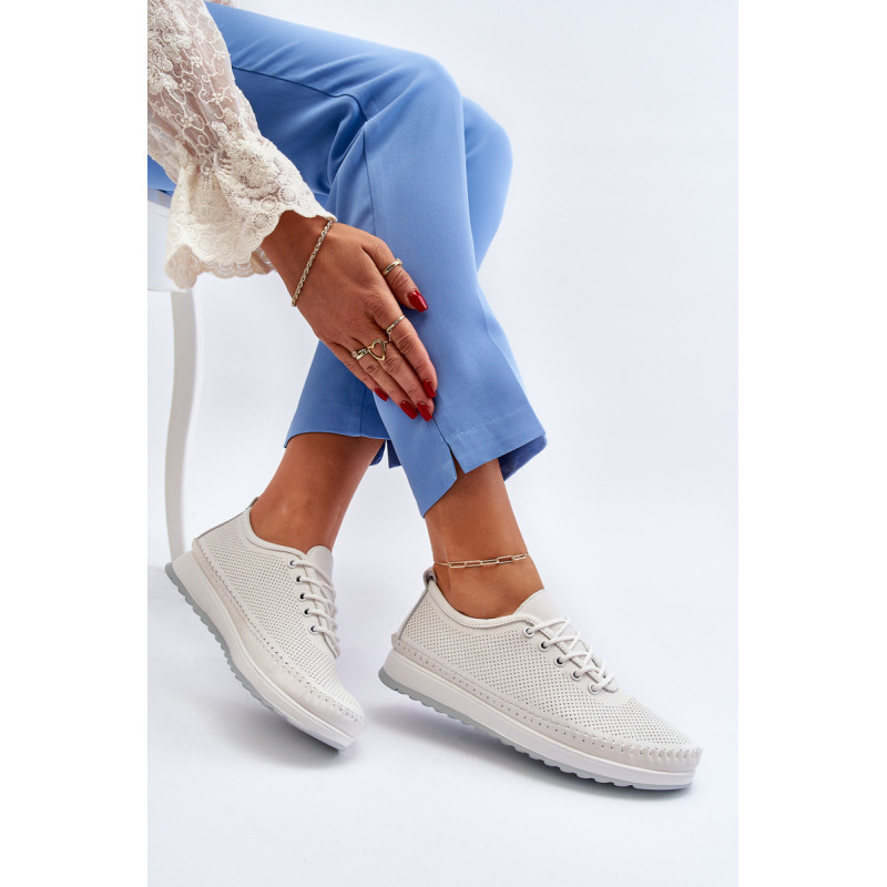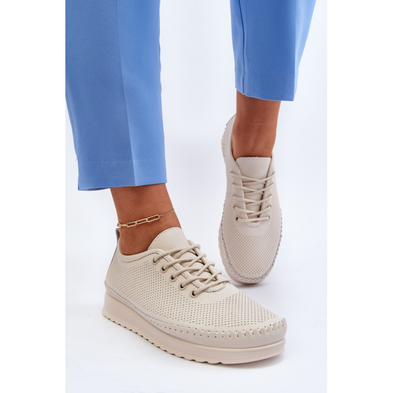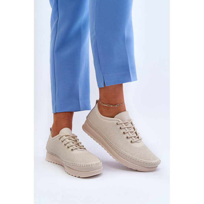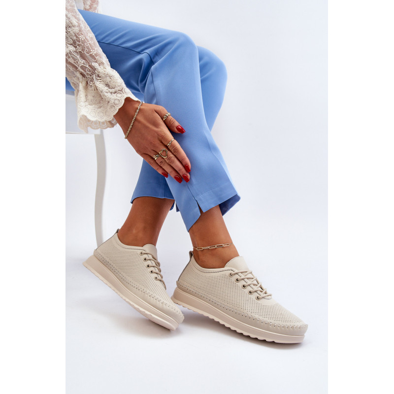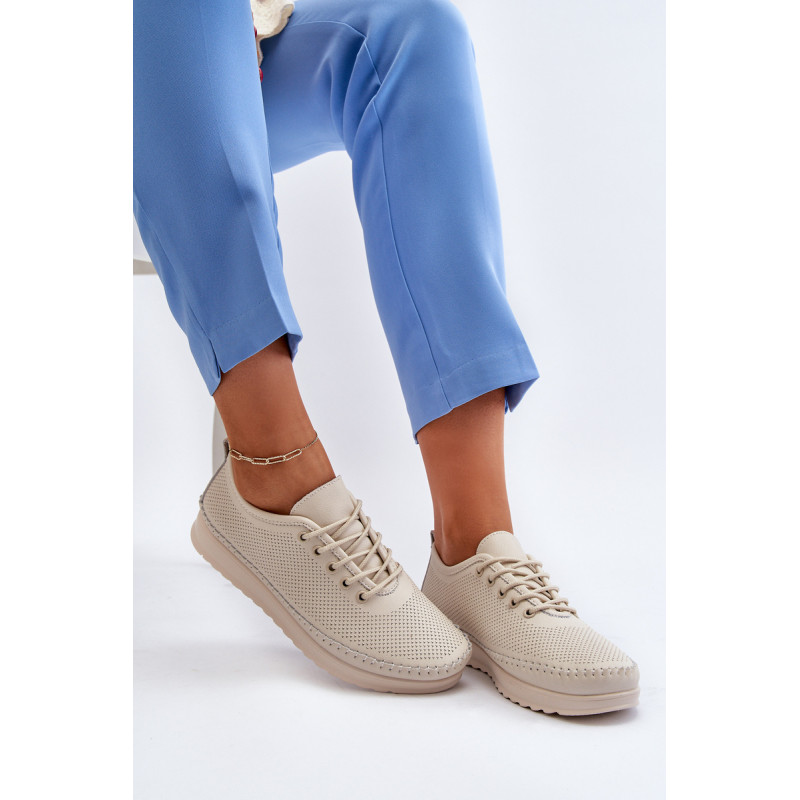 Moteriški sportiniai bateliai pagaminti iš natūralios odos, kuri garantuoja aukštą kokybę ir ilgaamžiškumą. Jų klasikinis dizainas su raišteliais ir užapvalintais pirštais suteikia jiems universalų vaizdą, kuris tinka daugeliui stilių. Švelni platforma suteikia lengvumo ir komforto naudojimo metu. Odinis vidpadis suteikia papildomo komforto. Šis modelis yra būtinas jūsų garderobo elementas! Rinkdamiesi dydį žiūrėkite dydžių lentelę.