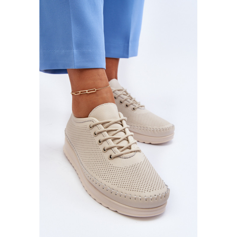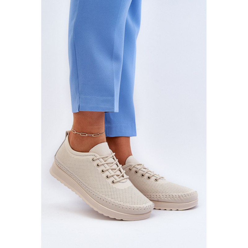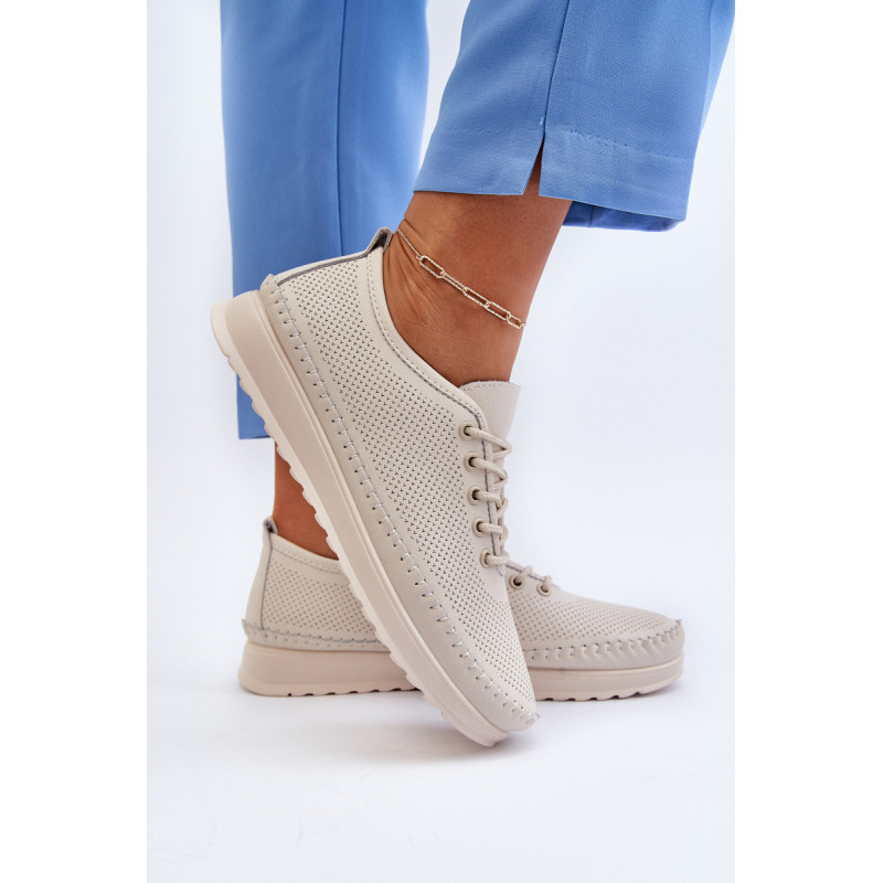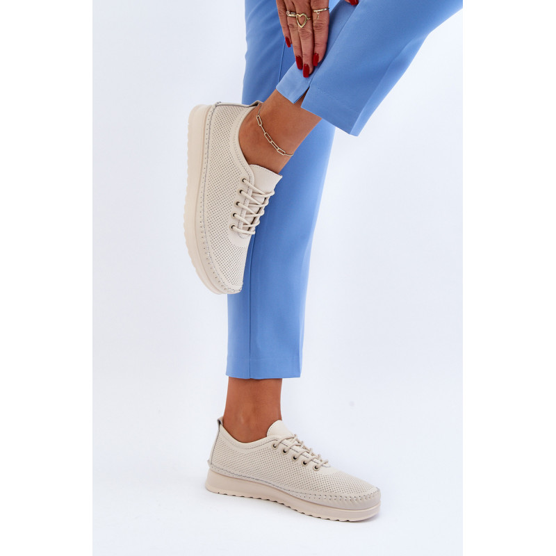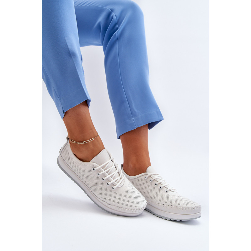 Moteriški sportiniai bateliai pagaminti iš natūralios odos, kuri garantuoja aukštą kokybę ir ilgaamžiškumą. Jų klasikinis dizainas su raišteliais ir užapvalintais pirštais suteikia jiems universalų vaizdą, kuris tinka daugeliui stilių. Švelni platforma suteikia lengvumo ir komforto naudojimo metu. Odinis vidpadis suteikia papildomo komforto. Šis modelis yra būtinas jūsų garderobo elementas! Rinkdamiesi dydį žiūrėkite dydžių lentelę.