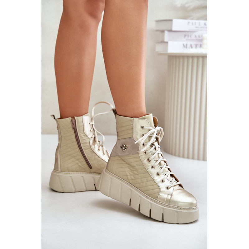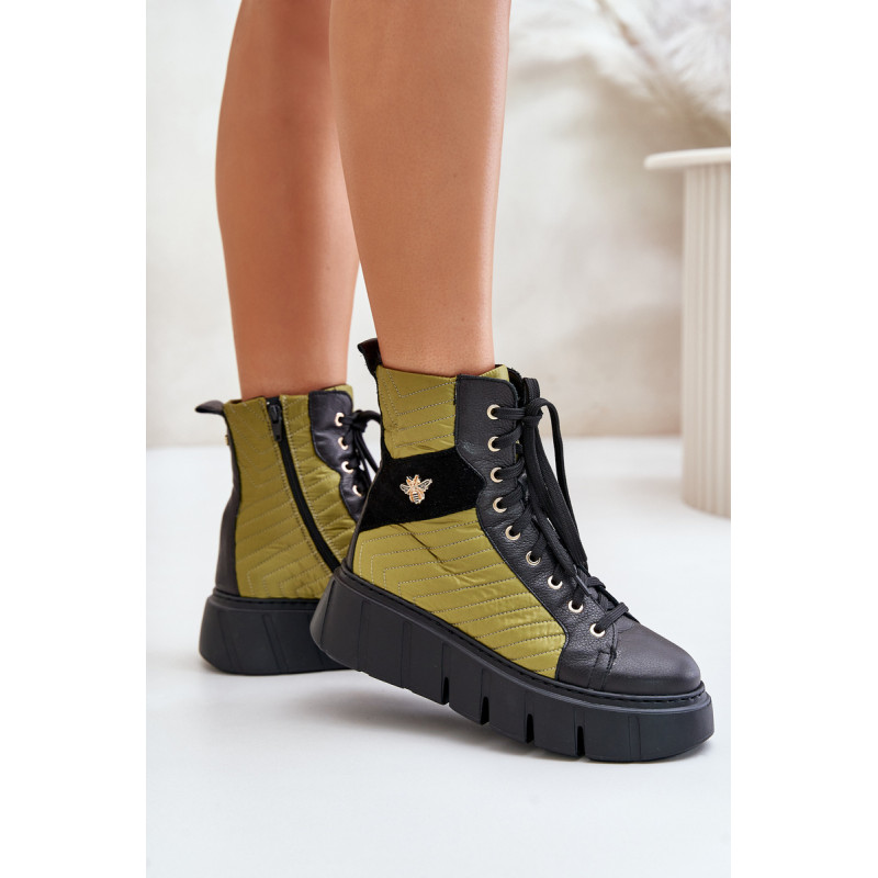 Maciejka batai, pagaminti iš aukštos kokybės natūralios odos ir tekstilės medžiagų derinio. Ant tvirtos platformos jie suderina stilių ir patogumą. Šis modelis turi ir užtrauktuką, ir suvarstymą, todėl puikiai priglunda ir lengvai užsideda. Batų vidus yra izoliuotas, todėl idealiai tinka vėsesnėms dienoms. Rinkdamiesi dydį, žiūrėkite dydžių lentelę.