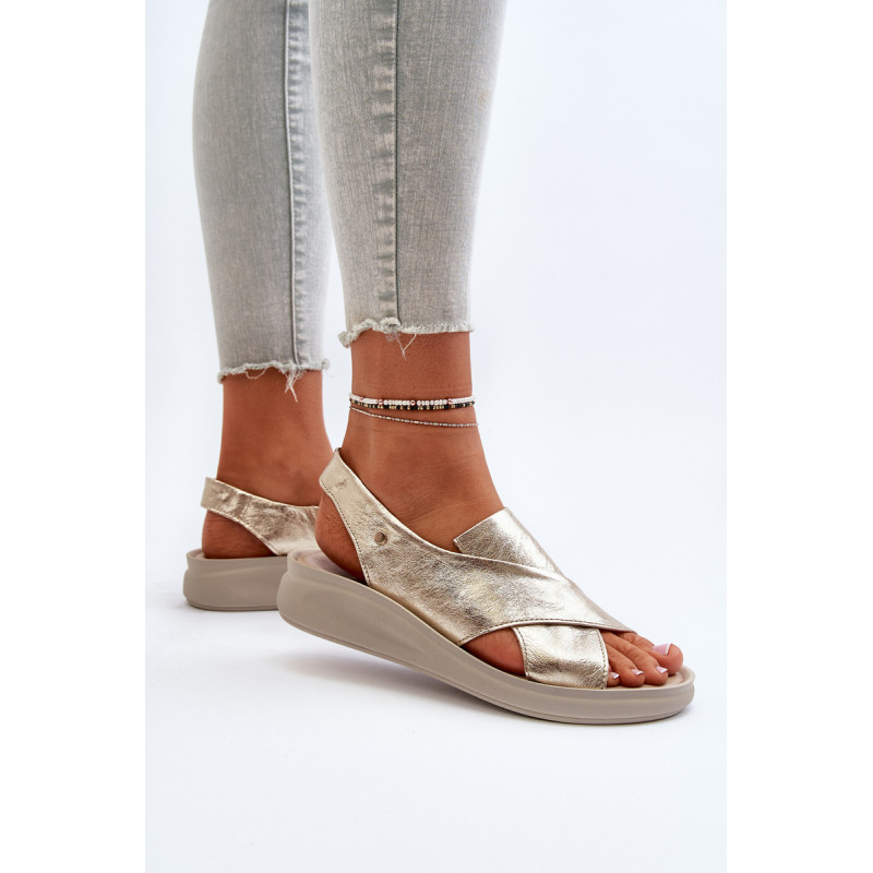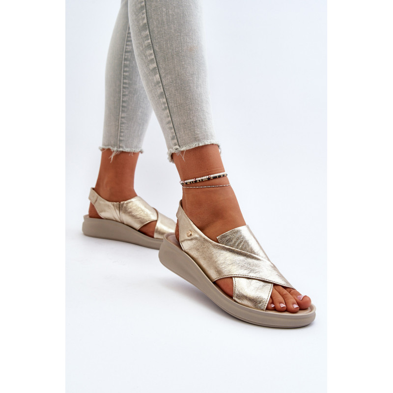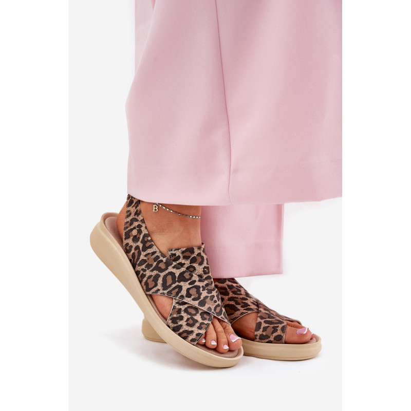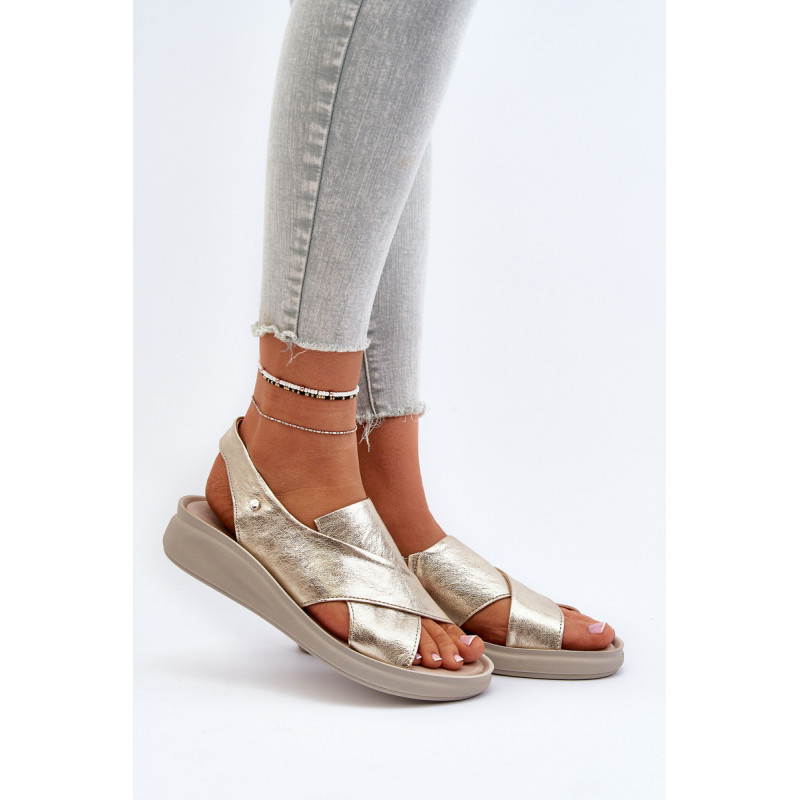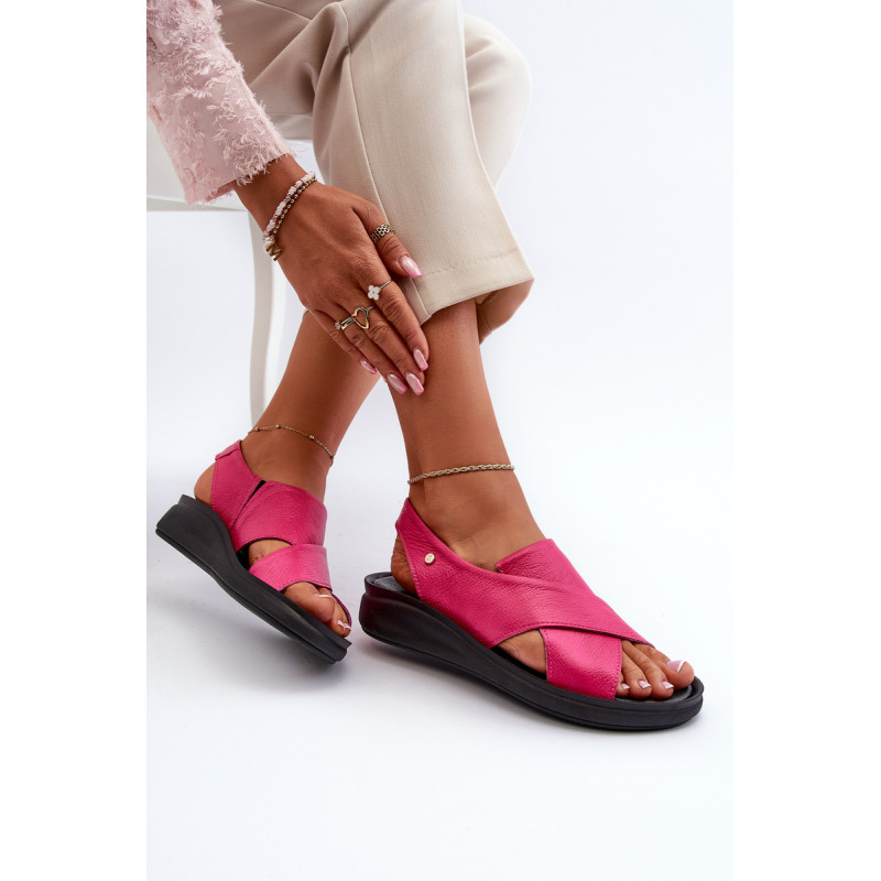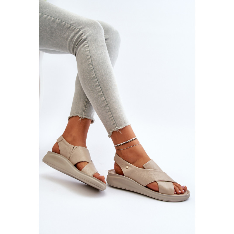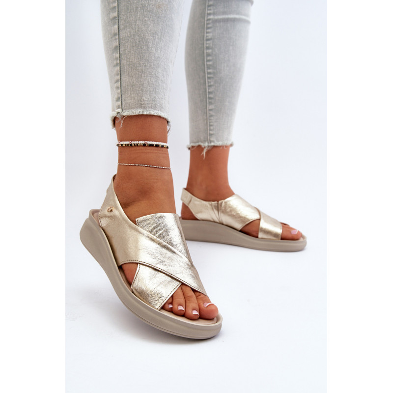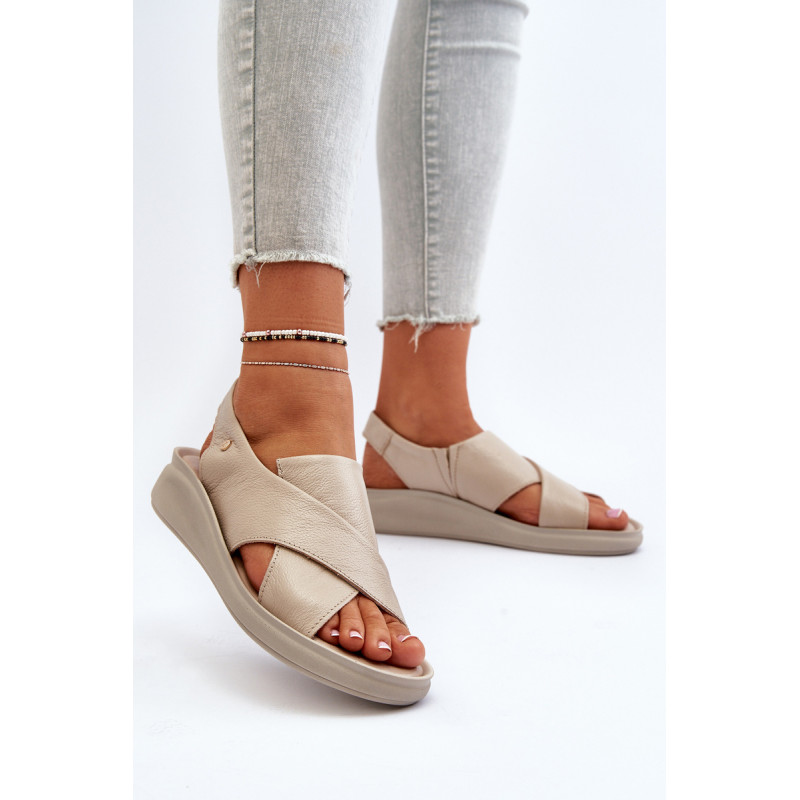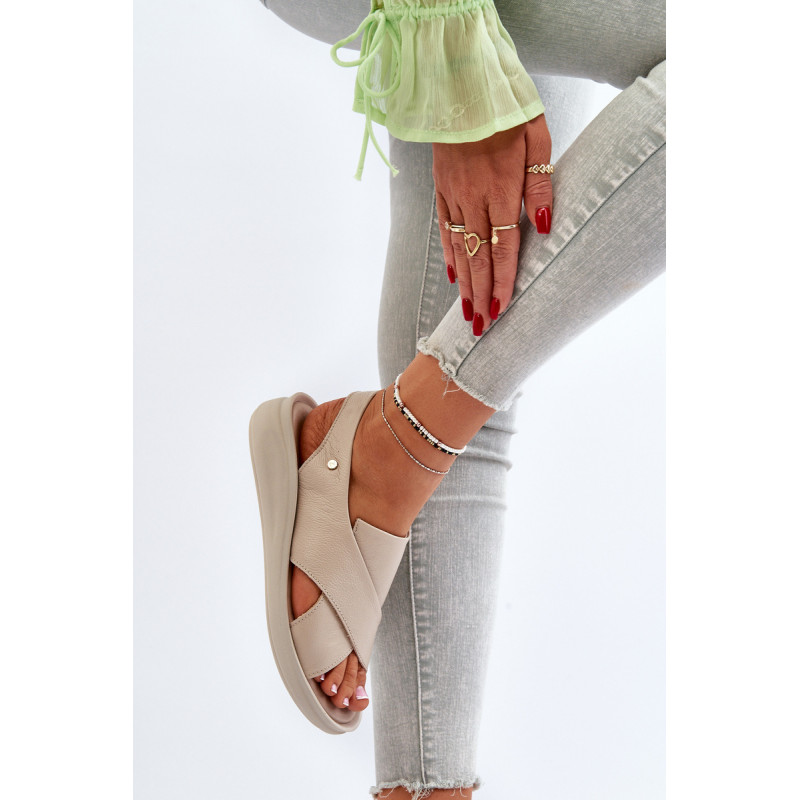 Šie moteriški sandalai yra patogumo ir stiliaus derinys, kuris jums tikrai patiks! Pagaminti iš natūralios odos, užtikrina ilgaamžiškumą ir patogumą dėvint. Slip-on modelis su papildoma elastine juostele. Dekoratyvinė emblema viršutinės dalies šone suteikia jiems unikalų charakterį, pridedant subtilų, elegantišką akcentą. Sandalai pastatyti ant platformos ir lengvo pleišto, kas suteikia ne tik stilingą išvaizdą, bet ir užtikrina stabilumą bei komfortą einant. Šis modelis yra itin praktiškas ir madingas vasaros garderobo papildymas, idealiai tinkantis tiek kasdieniams pasivaikščiojimams, tiek iškilmingesnėms progoms. Rinkdamiesi dydį, žiūrėkite dydžių lentelę.