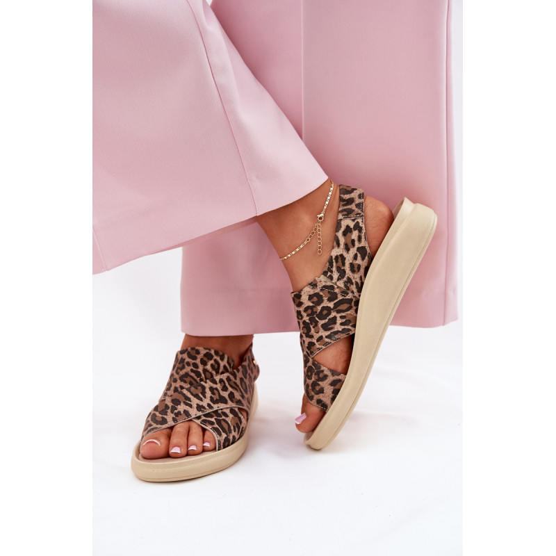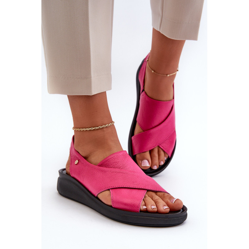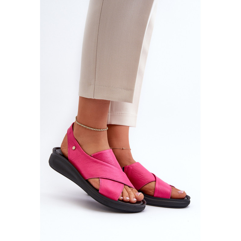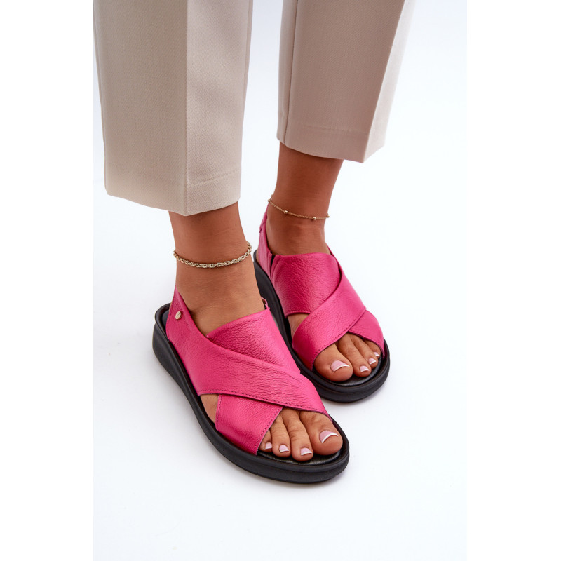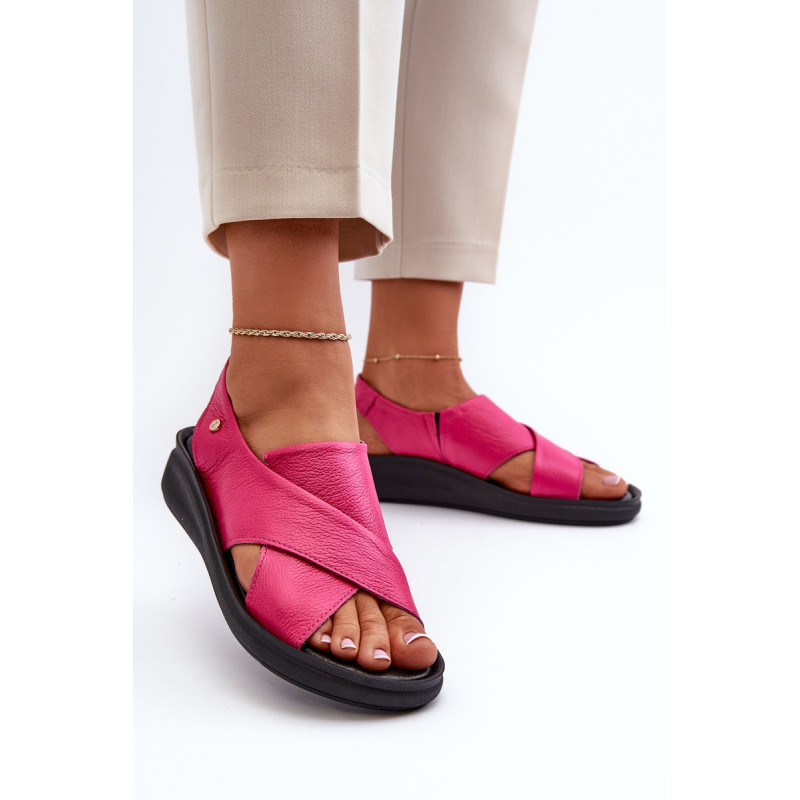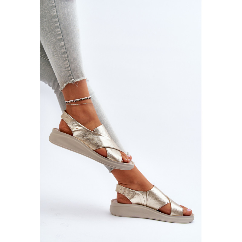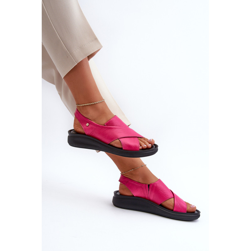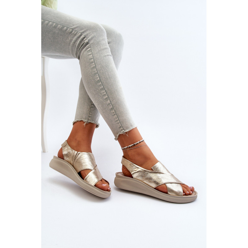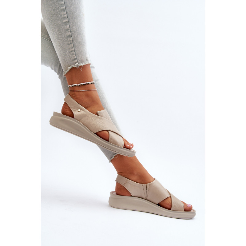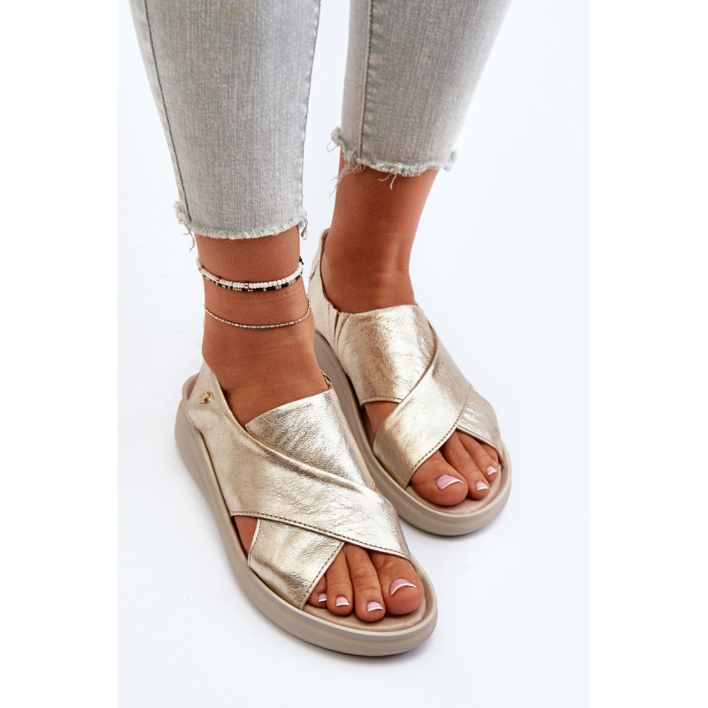 Šie moteriški sandalai yra patogumo ir stiliaus derinys, kuris jums tikrai patiks! Pagaminti iš natūralios odos, užtikrina ilgaamžiškumą ir patogumą dėvint. Slip-on modelis su papildoma elastine juostele. Dekoratyvinė emblema viršutinės dalies šone suteikia jiems unikalų charakterį, pridedant subtilų, elegantišką akcentą. Sandalai pastatyti ant platformos ir lengvo pleišto, kas suteikia ne tik stilingą išvaizdą, bet ir užtikrina stabilumą bei komfortą einant. Šis modelis yra itin praktiškas ir madingas vasaros garderobo papildymas, idealiai tinkantis tiek kasdieniams pasivaikščiojimams, tiek iškilmingesnėms progoms. Rinkdamiesi dydį, žiūrėkite dydžių lentelę.