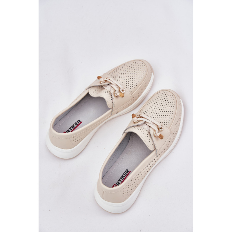 Moteriški pusbačiai, pagaminti iš natūralios odos, yra elegancijos ir patogumo derinys. Įrengti ant platformos, jie suteikia stabilumą ir komfortą visą dieną. Modelis turi elastines juostas, imituojančias raištelius, su dekoratyvinėmis sagtimis, kurios suteikia originalų charakterį. Apvalūs pirštai užtikrina komfortą, o minkštas padas papildomai rūpinasi pėdų komfortu. Lengvi ir patogūs, šie pusbačiai bus puikus pasirinkimas kasdieniams stiliams, derinant funkcionalumą su madinga išvaizda. Renkantis dydį, vadovaukitės dydžių lentele.