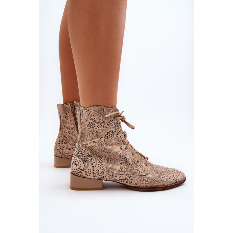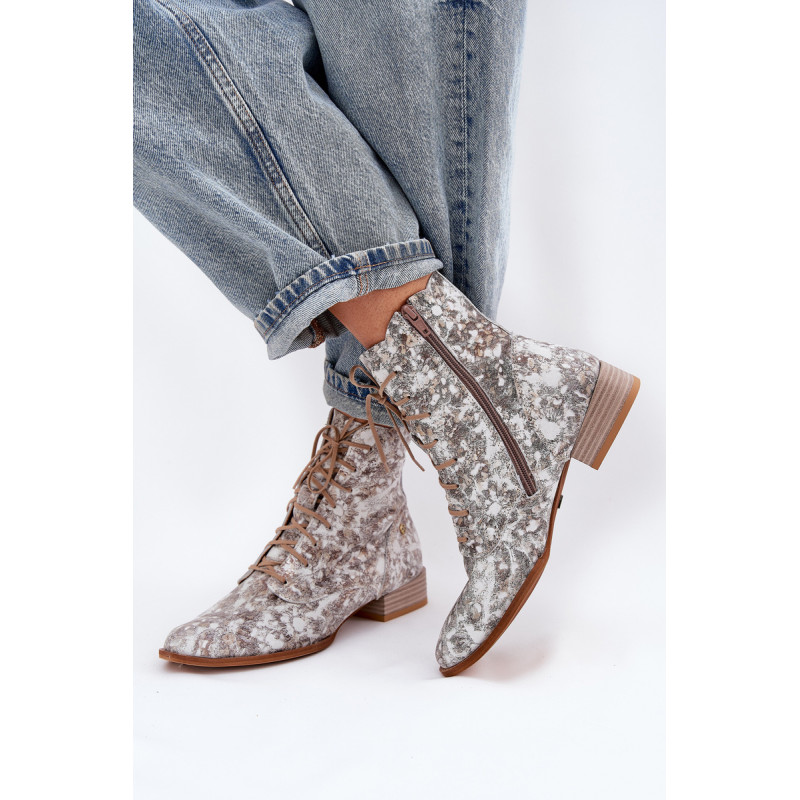 Moteriški Maciejka batai yra puikus pasirinkimas kiekvienai moteriai, vertinančiai kokybę ir patogumą. Pagaminta iš natūralios odos. Užsegamas užtrauktuku, kuris leidžia lengvai ir greitai apsiauti batus. Plokščias kulnas garantuoja stabilumą kiekviename žingsnyje. Raštuota viršutinė dalis, siekianti už kulkšnies. Šis įdomus stilius tikrai papildys daugybę skirtingų pavasarinių stilizacijų! Rinkdamiesi dydį, žiūrėkite dydžių lentelę.