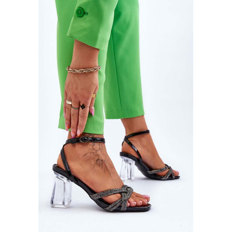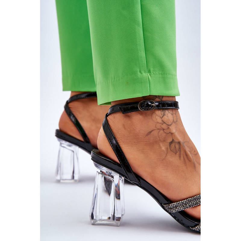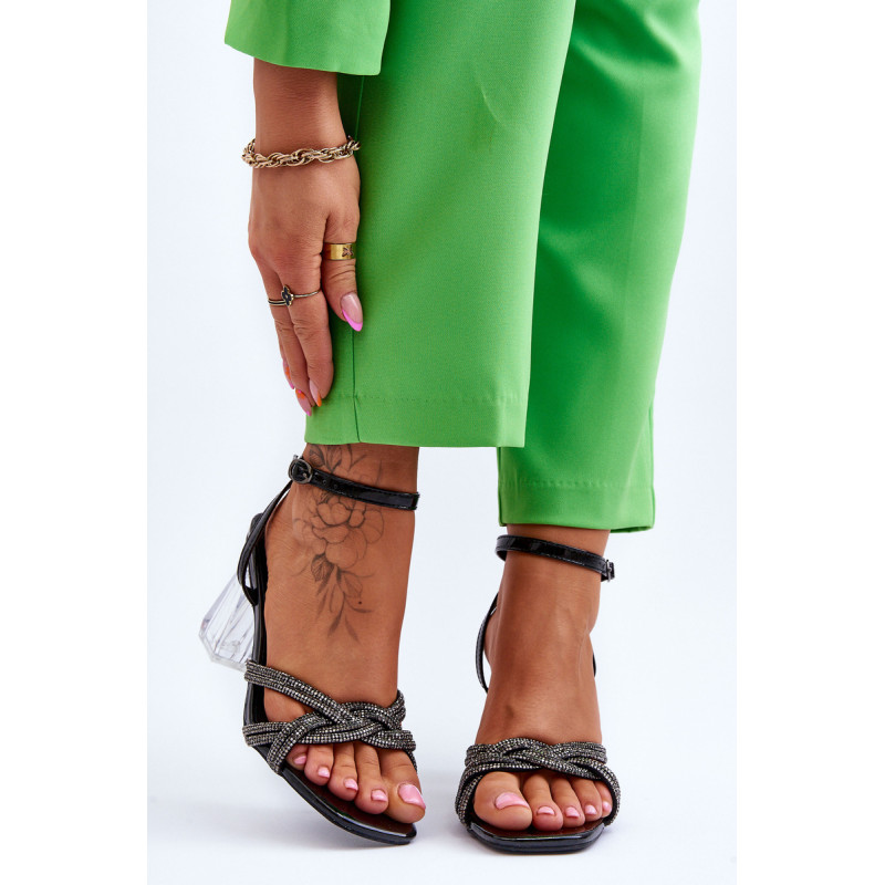 Elegantiški basutės ant kulno stulpelio formos. Batai turi dekoracijas ant dirželių cirkonio pavidalu. Užsegamas aplink kulkšnį reguliuojamu dirželiu su sagtimi. Minkštas vidpadis užtikrina patogų naudojimą. Jis buvo pagamintas iš natūralios odos. Atviras pirštas, kvadratinis. Rinkdamiesi dydį, žiūrėkite dydžių lentelę.