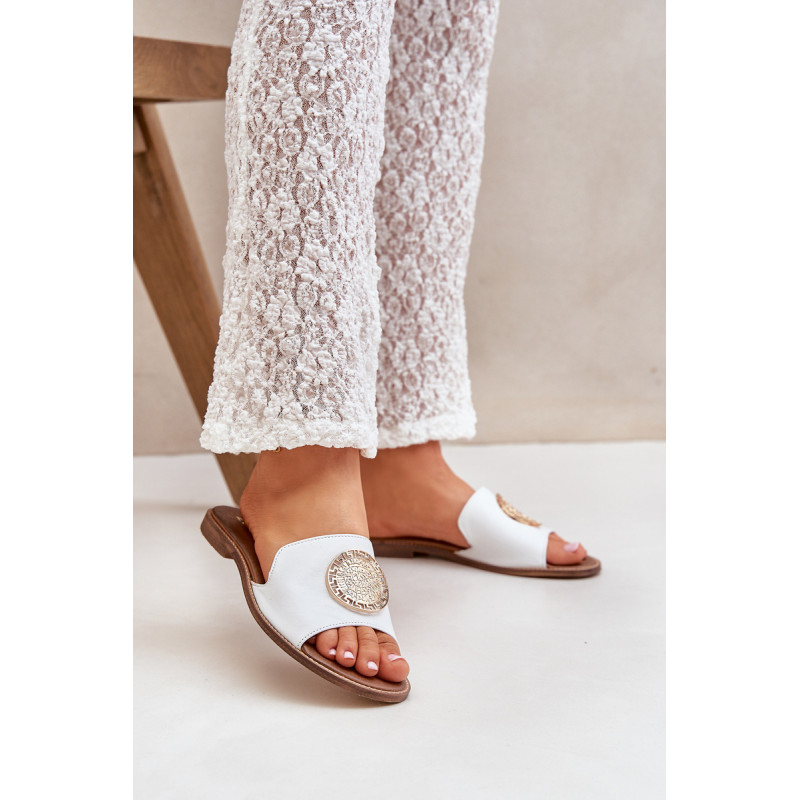 Moteriški šlepetės, pagamintos iš aukštos kokybės natūralios odos, yra elegancijos ir komforto derinys. Montuojamos ant plokščio kulno, jos užtikrina visą dieną trunkantį komfortą. Subtili dekoracija ant viršaus suteikia joms unikalų žavesį ir klasę, todėl jos puikiai tinka tiek kasdieniam, tiek elegantiškesniam stiliui. Idealiai tinka šiltoms dienoms, jos yra nepakeičiama vasarinių suknelių, kelnių ar sijonų detalė. Renkantis dydį, vadovaukitės dydžių lentele.