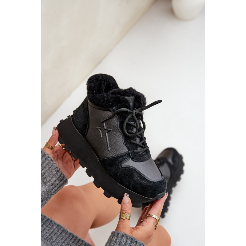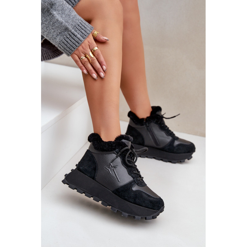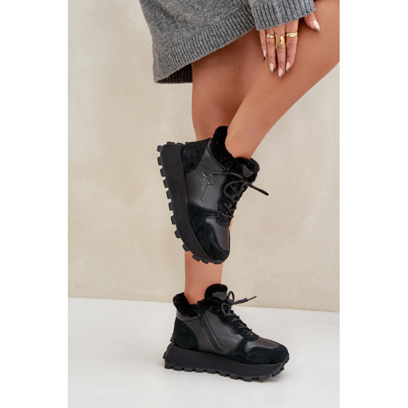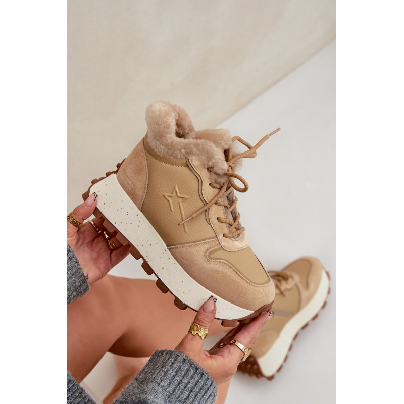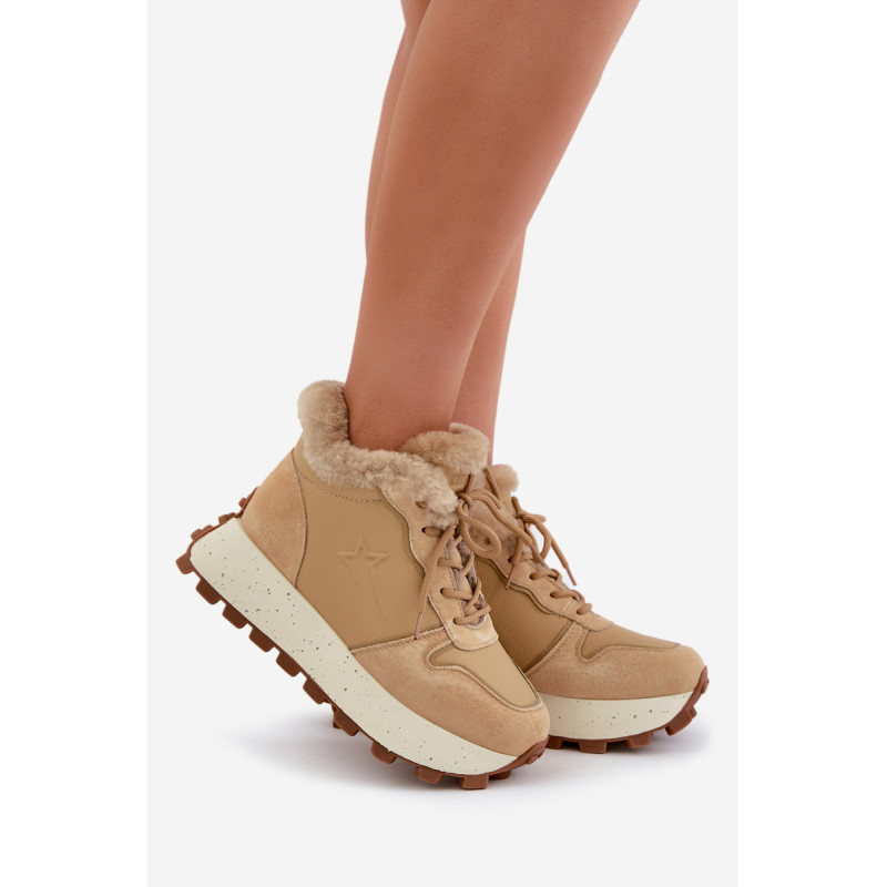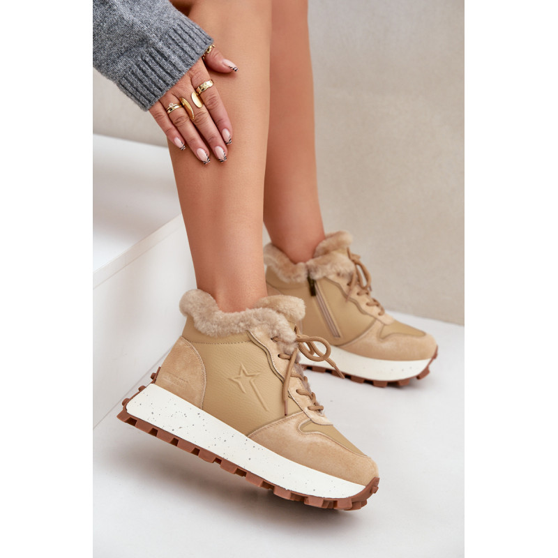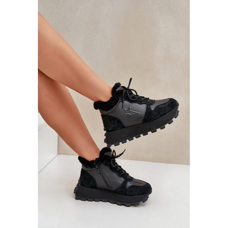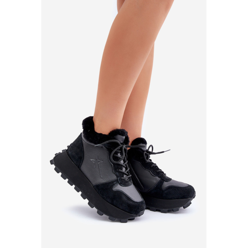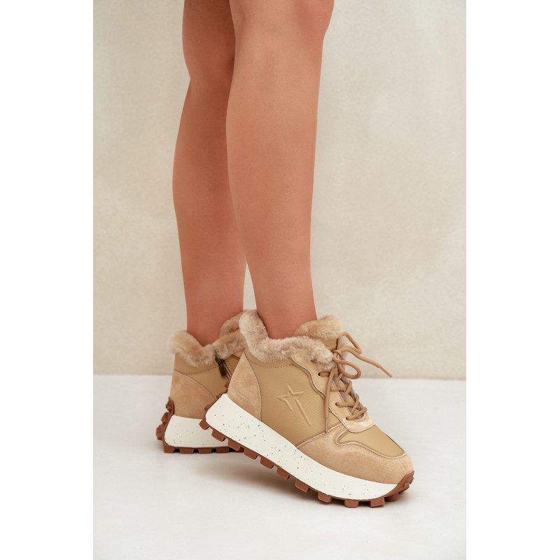 Moteriški sportbačiai, pagaminti iš aukštos kokybės natūralios odos, yra puikus pasirinkimas vėsesnėms dienoms. Modelis yra ant madingos platformos, kuri ne tik suteikia stilingą išvaizdą, bet ir komfortą dėvint. Šildomi minkštu kailiu, jie garantuoja šilumą žiemą pasivaikščiojant. Užsegami užtrauktuku ir raišteliais, leidžiančiais idealiai pritaikyti prie pėdos. Šilti, patogūs ir praktiški – puikiai tinka kasdienei stilizacijai. Renkantis dydį, vadovaukitės dydžių lentele.
