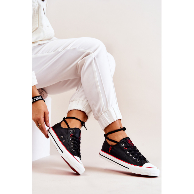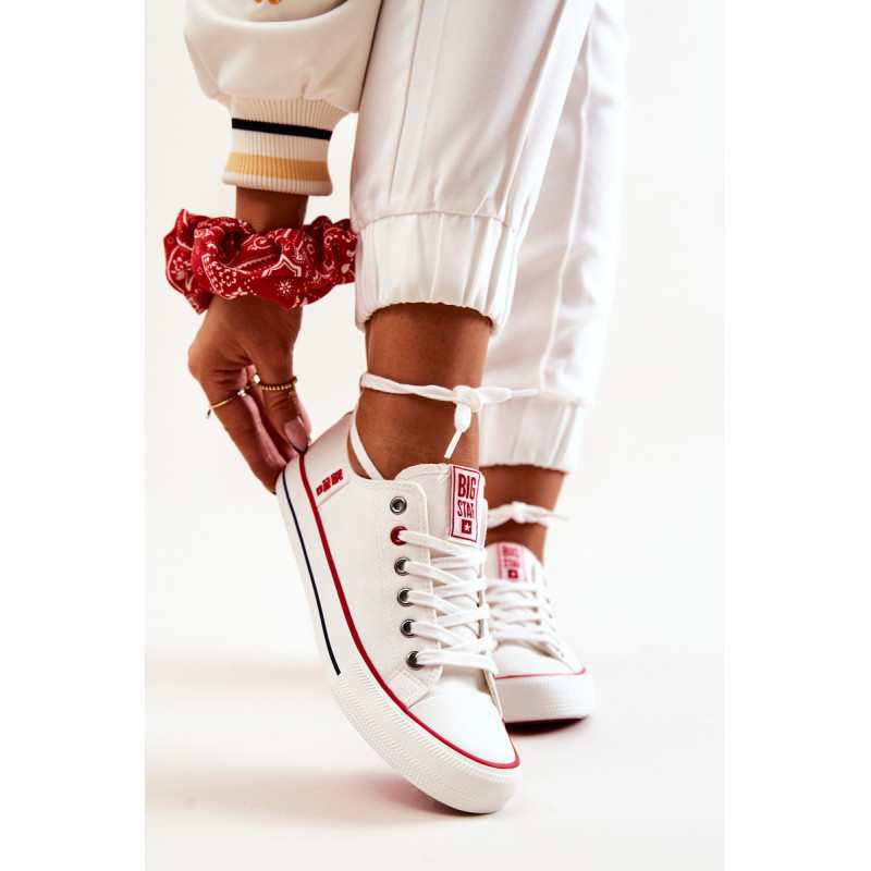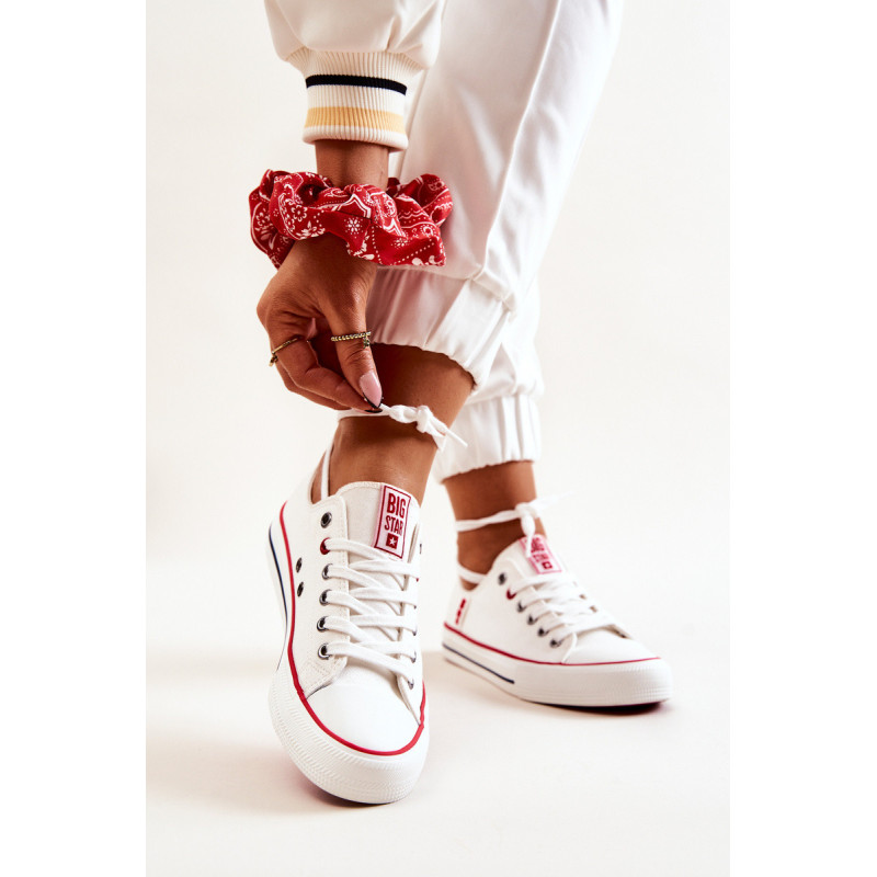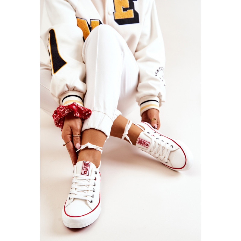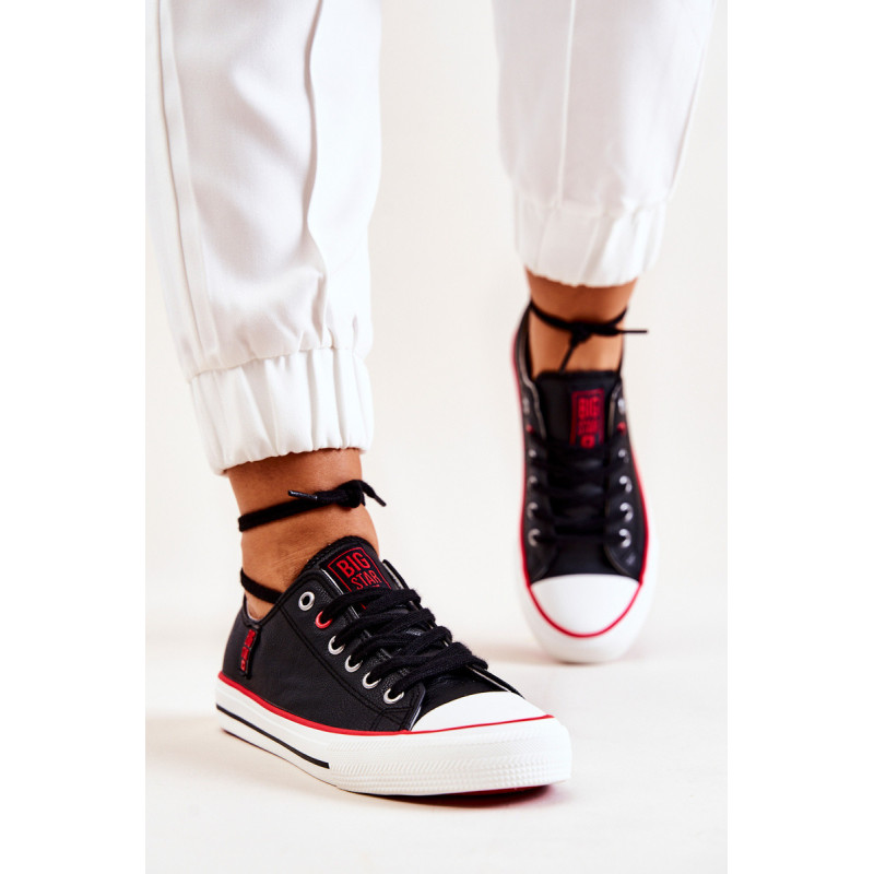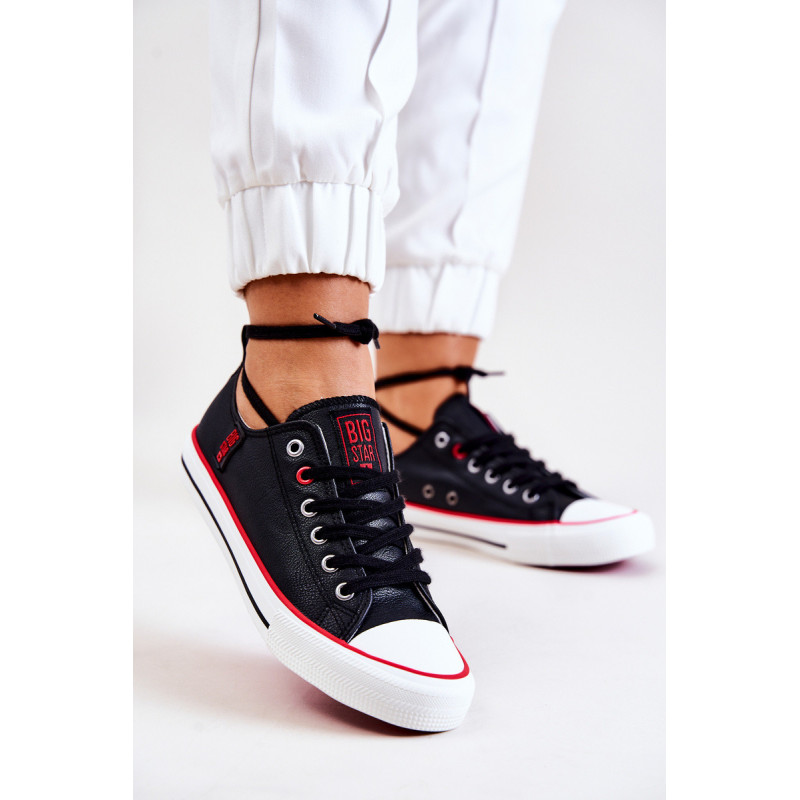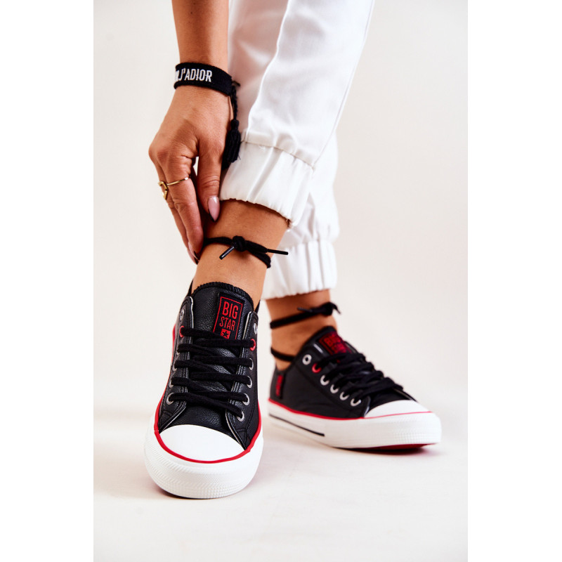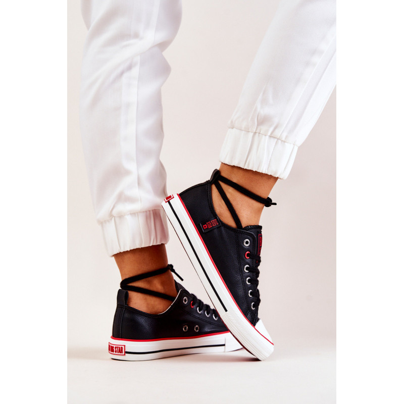 Lenkų prekės ženklo BIG STAR moteriški treniruokliai. Klasikinis modelis iš eko odos tiks prie daugelio aprangų. Batai suvarstomi, kad atitiktų pėdos dydį. Medžiaginis vidpadis ir neslystantis padas užtikrina komfortą naudojimo metu. Būtinai peržiūrėkite visą mūsų BIG STAR batų kolekciją. Rinkdamiesi dydį, vadovaukitės dydžių lentele.