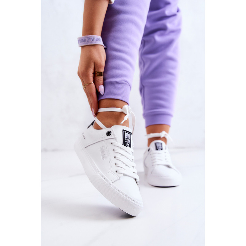 Sportbačiai iš ekologiškos odos. Batviršio šone įspaustas Big Star logotipas. Sutvirtintas kulnas. Padas pagamintas iš guminės medžiagos, papildomai neslidus. Dėl plokščiais raištelių surišto modelio batai puikiai tiks. Medžiaginis skirtukas su prekės ženklo logotipu ant liežuvio. Šio modelio batai puikiai tiks į mokyklą, darbą ar savaitgalio išvyką su draugais. Renkantis dydį, naudokite dydžių lentelę.