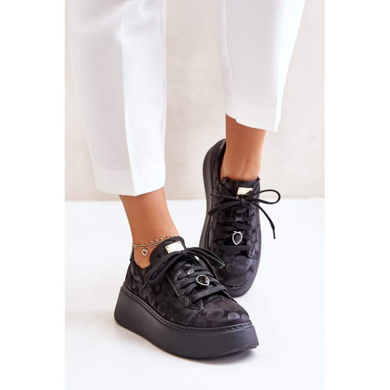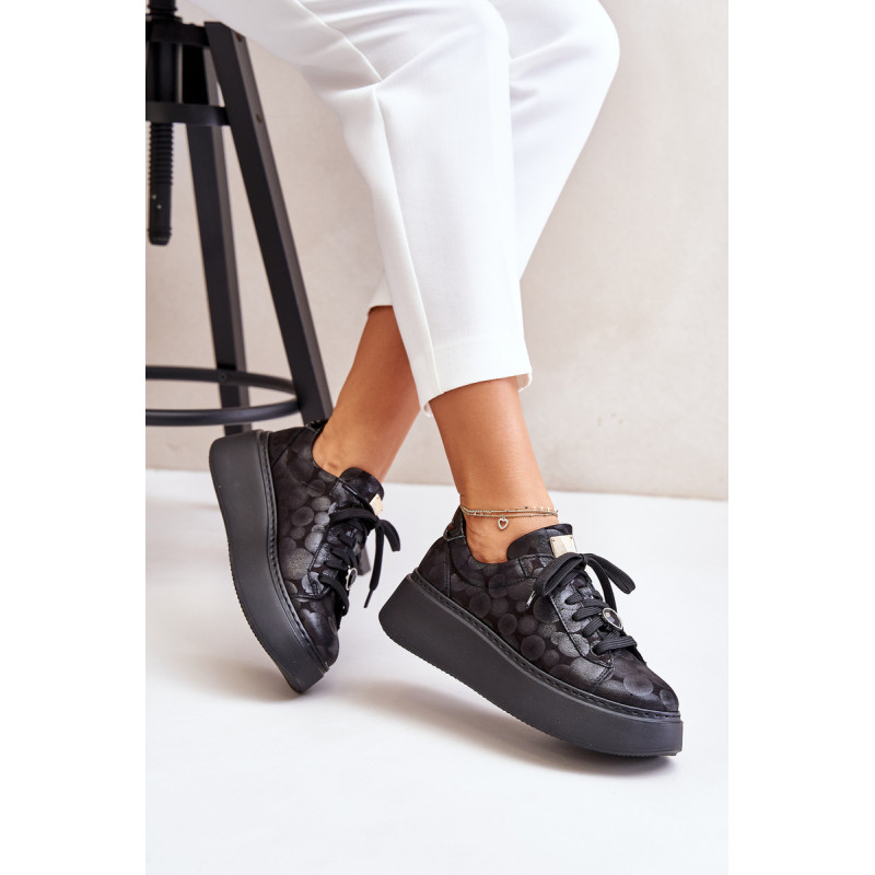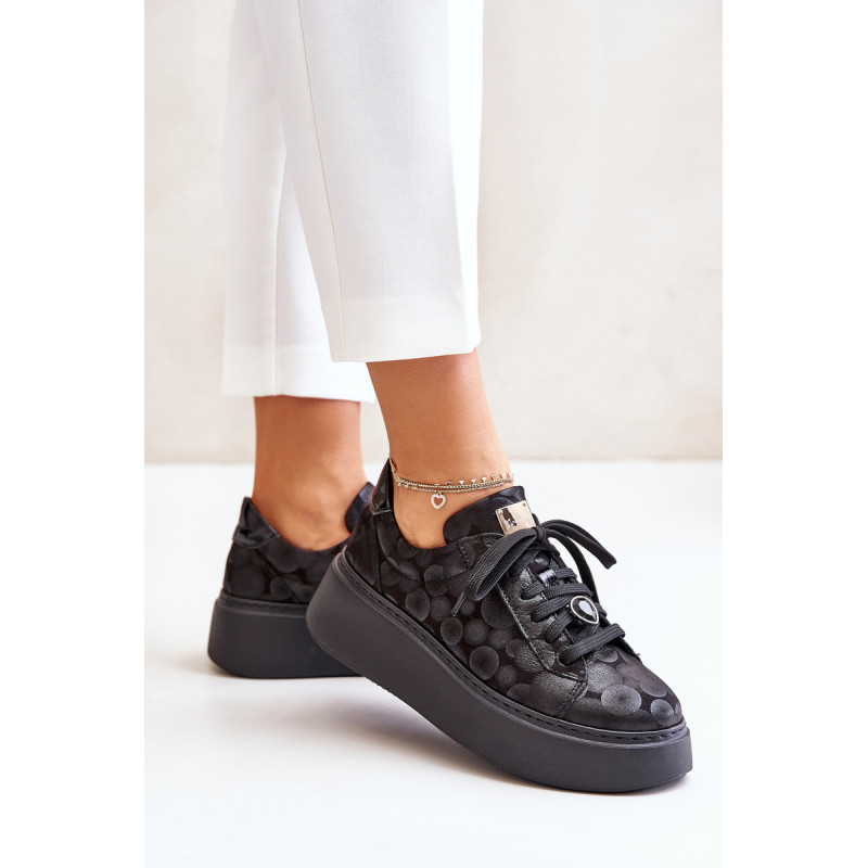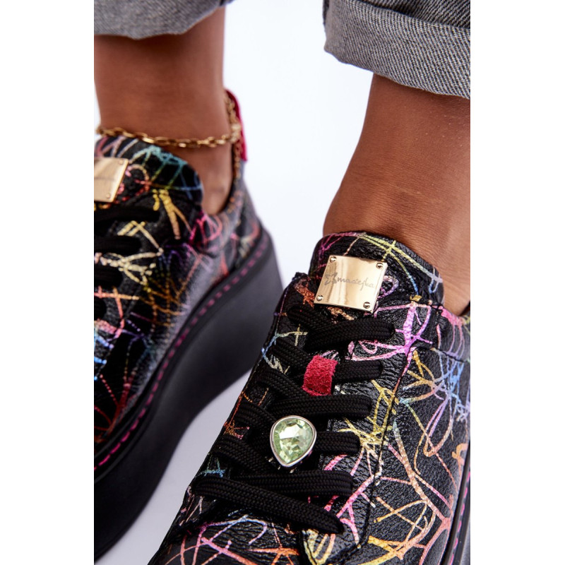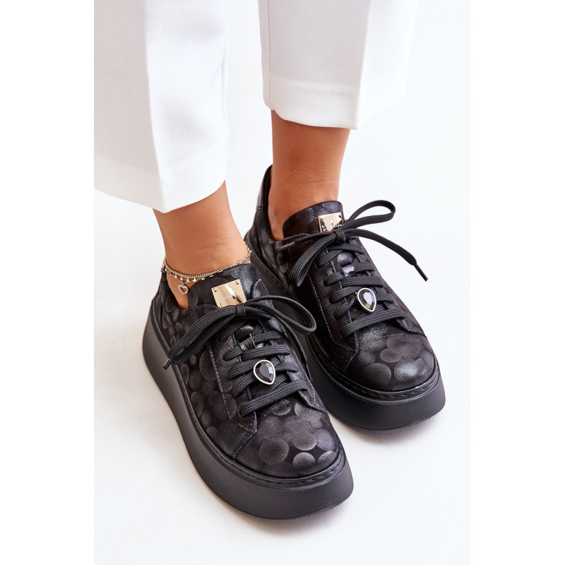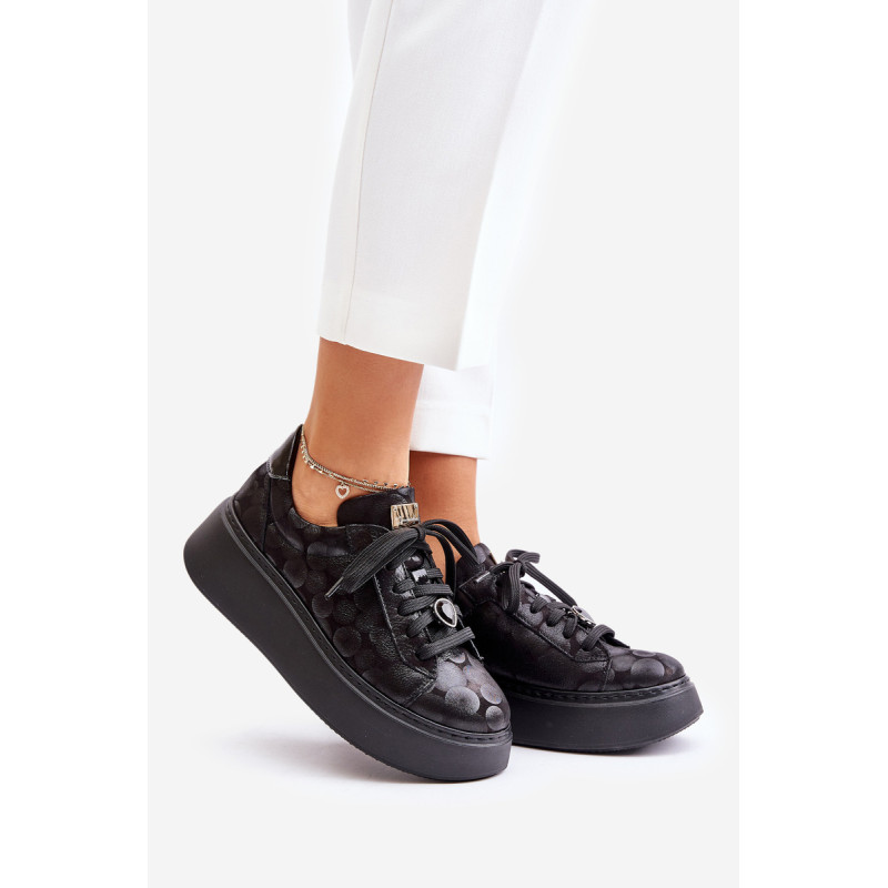 Sportiniai batai iš prekės ženklo Maciejka. Pagaminta iš natūralios odos, atkreipiant dėmesį į detales. Įrengtas ant didžiulės platformos. Klasikinis suvarstomas modelis su standintu pirštų dangteliu. Suapvalinti kojų pirštai. Minkštas vidpadis patogumui dėvint. Prie raištelių prisegama nedidelė, juvelyrinė puošmena. Renkantis dydį, žiūrėkite dydžių lentelę.