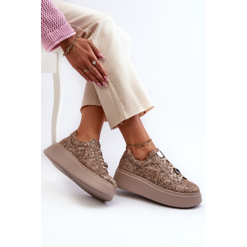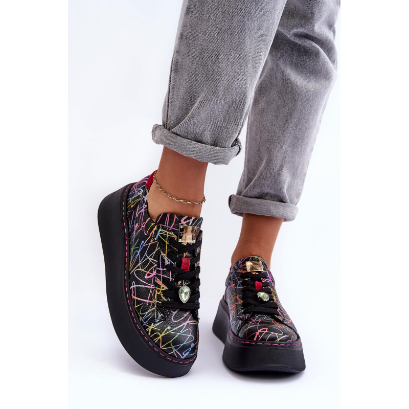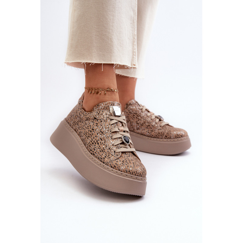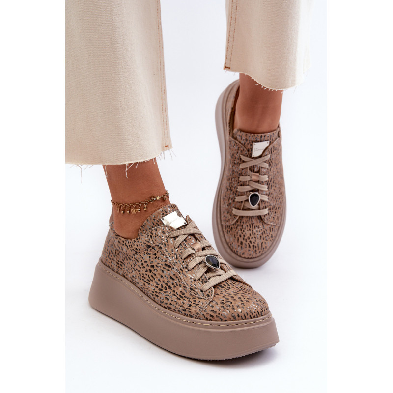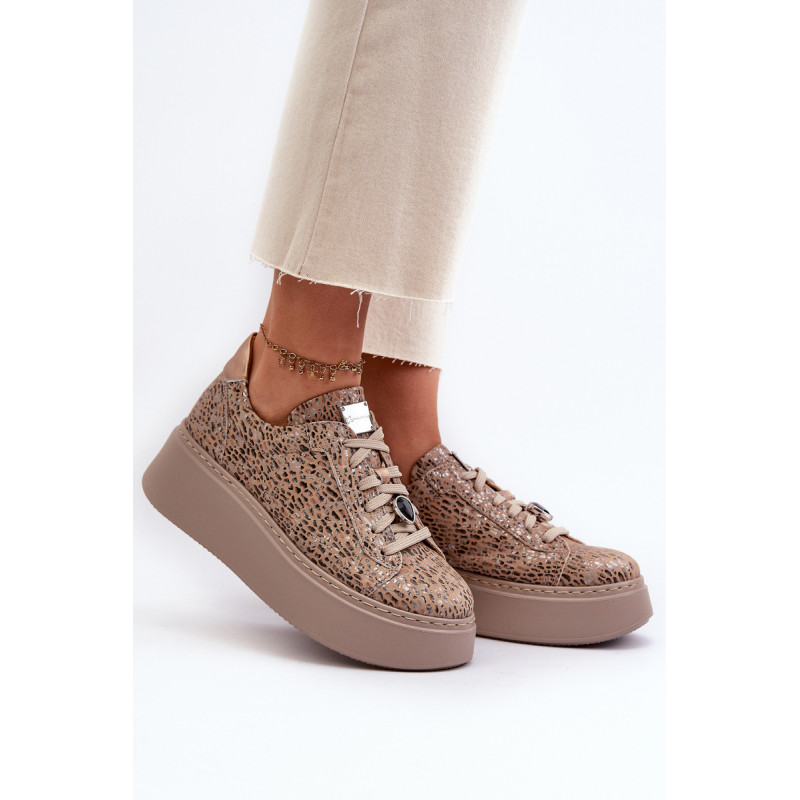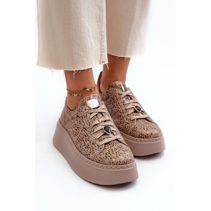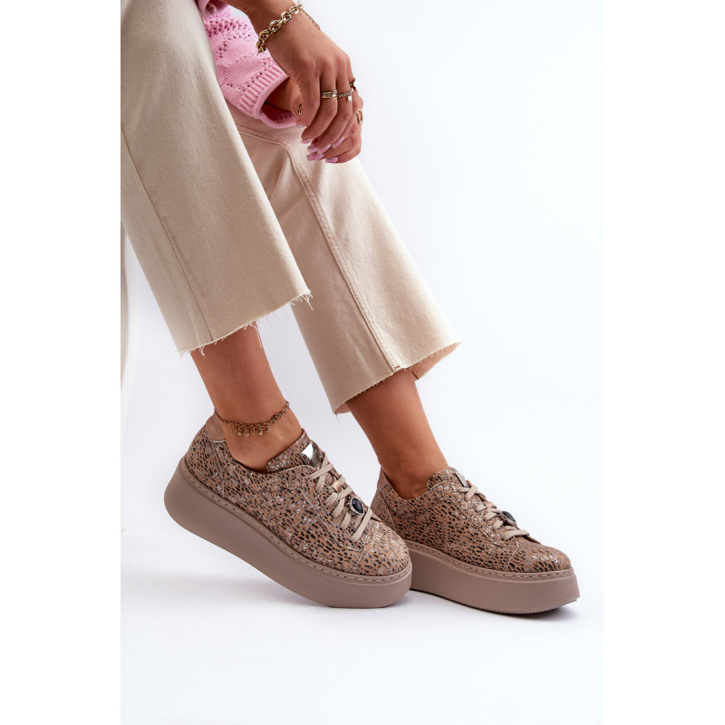 Sportiniai batai iš prekės ženklo Maciejka. Pagaminta iš natūralios odos, atkreipiant dėmesį į detales. Įrengtas ant didžiulės platformos. Klasikinis suvarstomas modelis su standintu pirštų dangteliu. Suapvalinti kojų pirštai. Minkštas vidpadis patogumui dėvint. Prie raištelių prisegama nedidelė, juvelyrinė puošmena. Renkantis dydį, žiūrėkite dydžių lentelę.