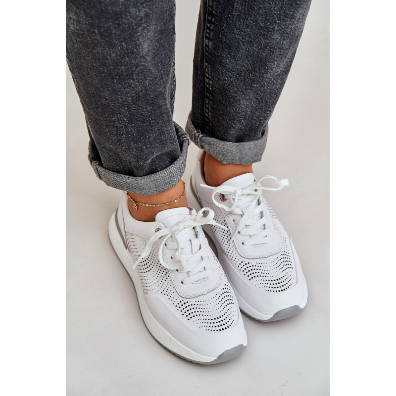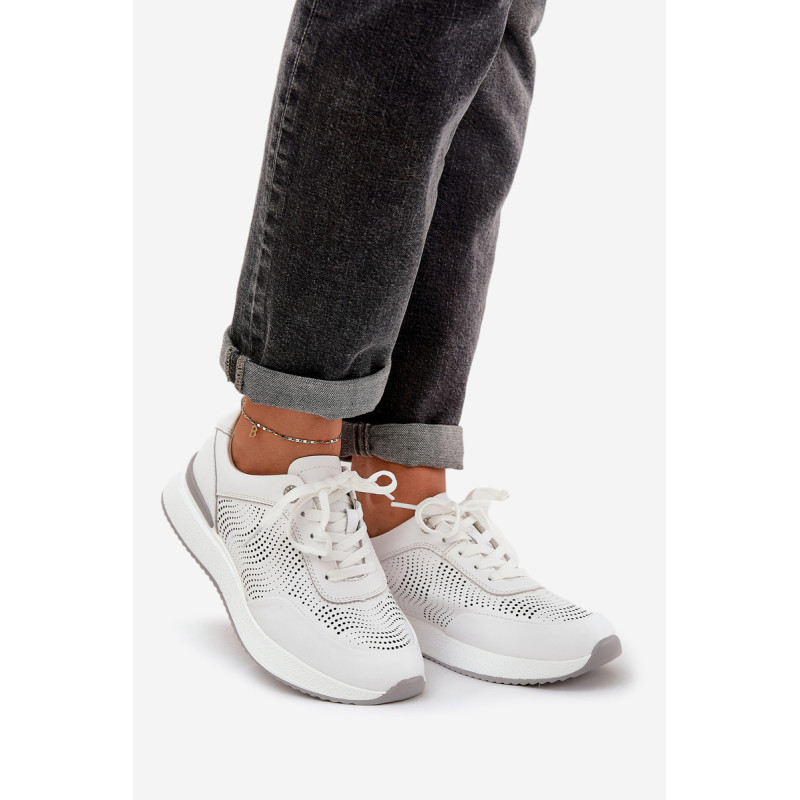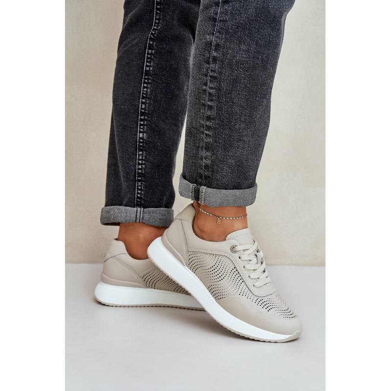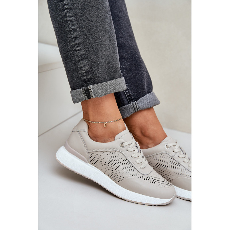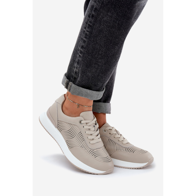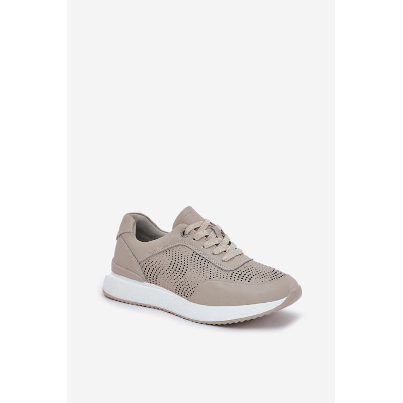 Moteriški sportiniai batai, pagaminti iš natūralios odos, yra ideali pasiūlymas, derinantis stilių ir patogumą. Įrengti ant platformos, jie užtikrina lengvumą ir stabilumą. Šniūrelės leidžia puikiai pritaikyti batą prie pėdos, o odinis Comfort Shoes įdėklas garantuoja komfortą visą dieną. Lengvi ir patogūs, šie batai bus puikus pasirinkimas kasdieniam dėvėjimui. Renkantis dydį, vadovaukitės dydžių lentele.