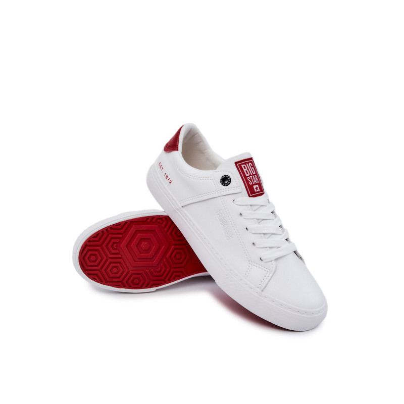 Sportbačiai iš ekologiškos odos. Batviršio šone įspaustas Big Star logotipas. Sutvirtintas kulnas. Padas pagamintas iš guminės medžiagos, papildomai neslidus. Dėl plokščiais raištelių surišto modelio batai puikiai tiks. Medžiaginis skirtukas su prekės ženklo logotipu ant liežuvio. Šio modelio batai puikiai tiks į mokyklą, darbą ar savaitgalio išvyką su draugais. Būtinai apžiūrėkite ir kitus Big Star sportbačius! Renkantis dydį, naudokite dydžių lentelę.