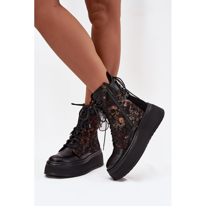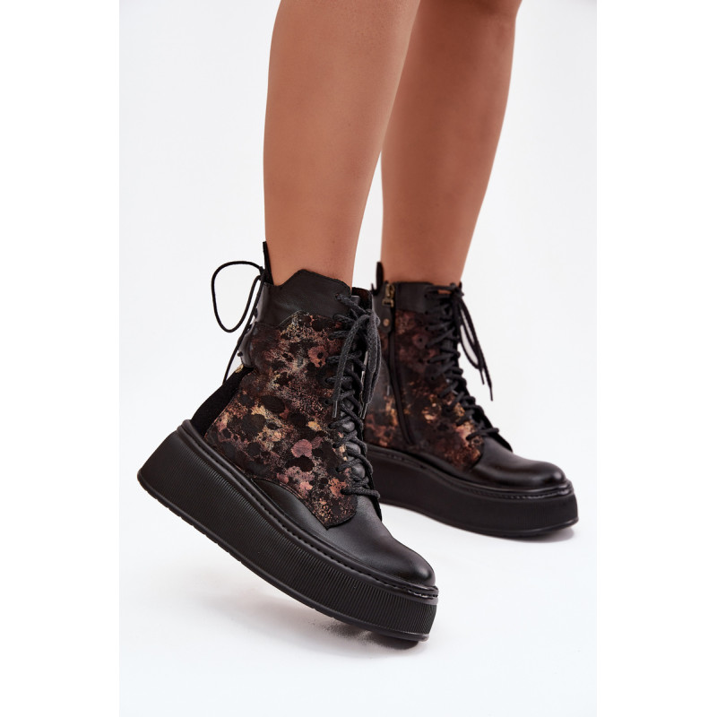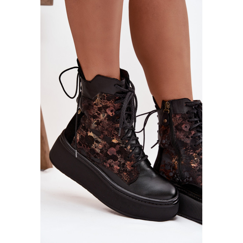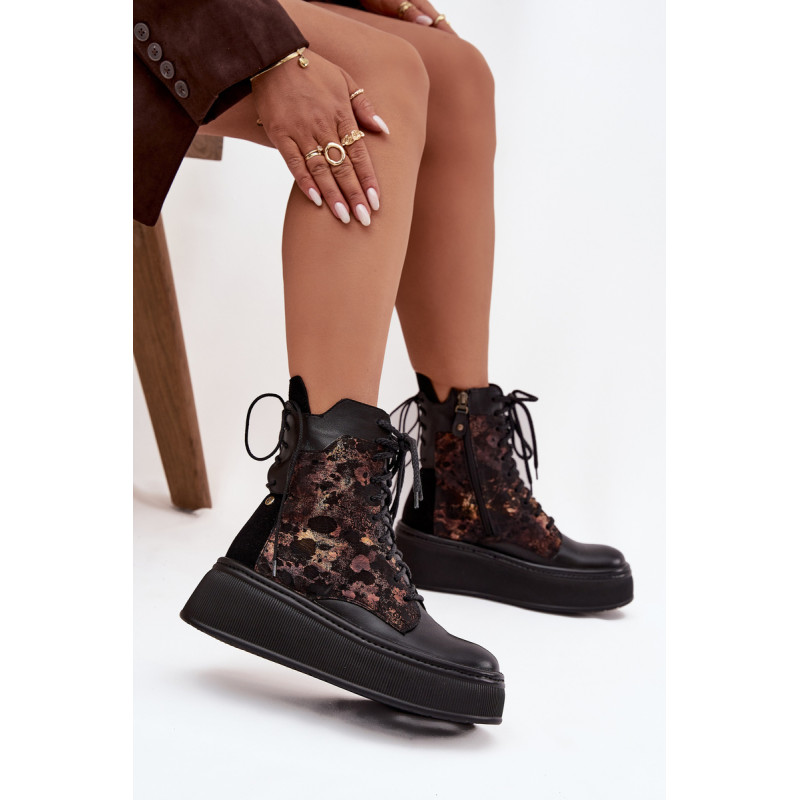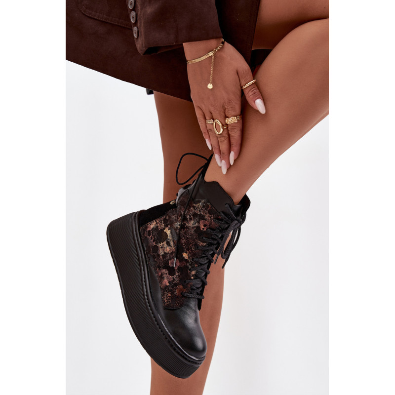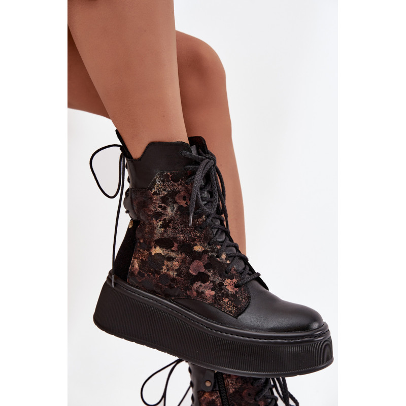 Moteriški batai iš Maciejka prekės ženklo yra stilingas pasiūlymas moterims, kurios vertina originalų išvaizdą ir patogumą. Pagaminti iš aukštos kokybės natūralios odos, atrodo elegantiškai ir yra ilgaamžiai, todėl tarnaus keliems sezonams. Modelis įrengtas ant tvirtos platformos, užtikrinančios stabilumą ir komfortą dėvint. Batai turi tiek patogų raištelį, tiek užtrauktuką, todėl juos lengva užsidėti ir jie puikiai priglunda prie pėdos. Papildomas pranašumas – dekoratyvinis raištelis užpakalinėje dalyje, kuris suteikia visumai originalumo ir charakterio. Šie batai puikiai tinka kasdieniams stiliams ir suteikia išraiškingą, madingą akcentą. Rinkdamiesi dydį, vadovaukitės dydžių lentele. Renkantis dydį, vadovaukitės dydžių lentele.
